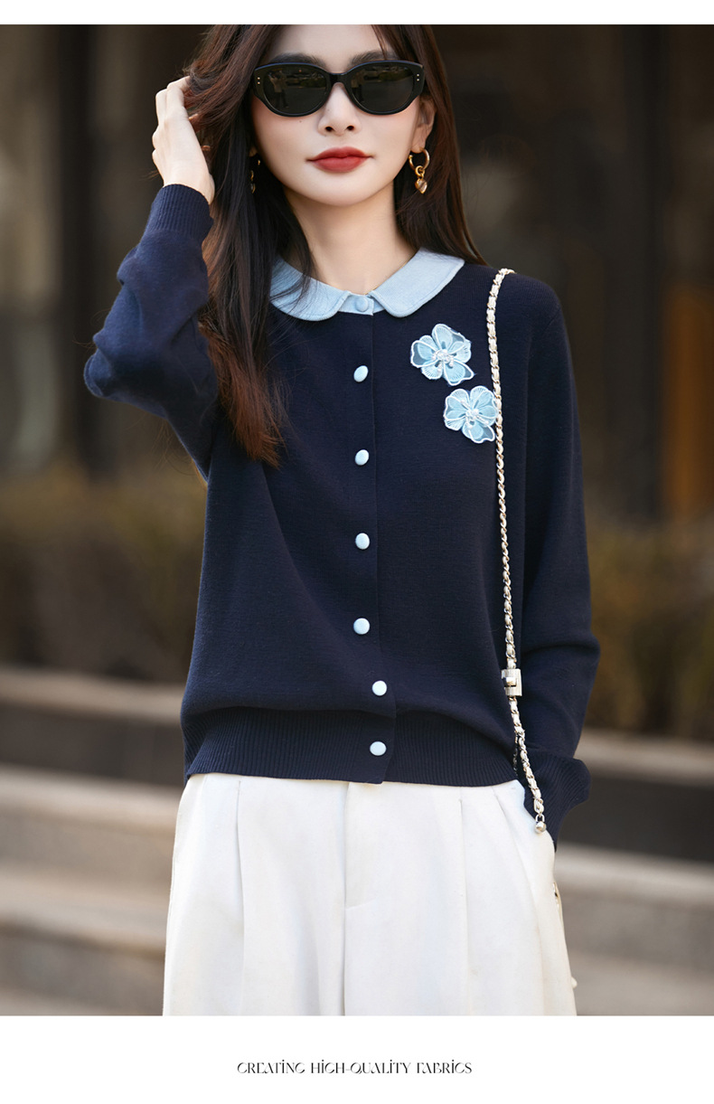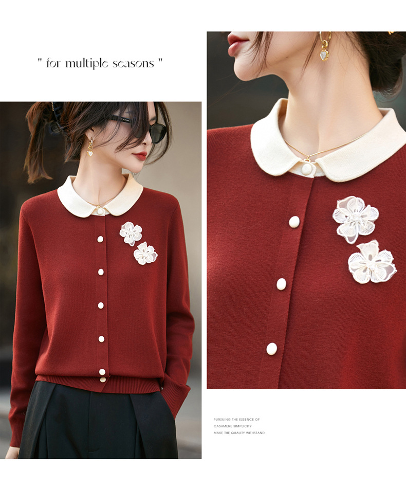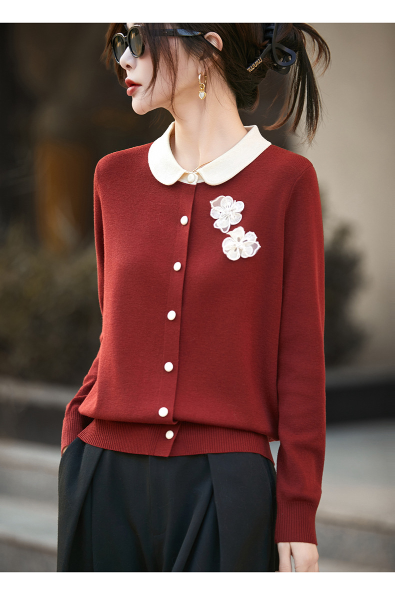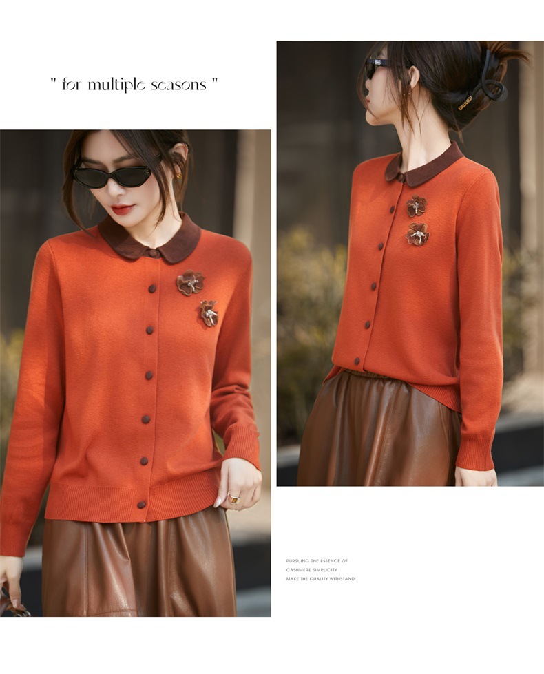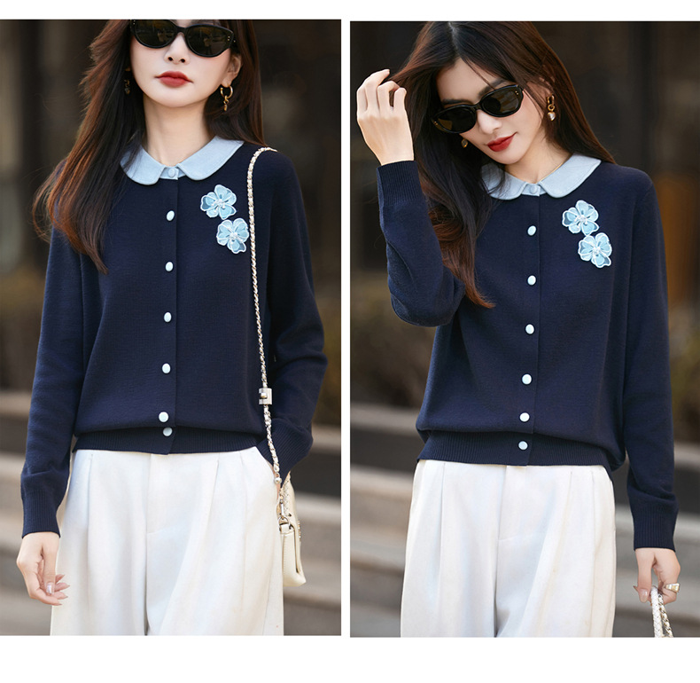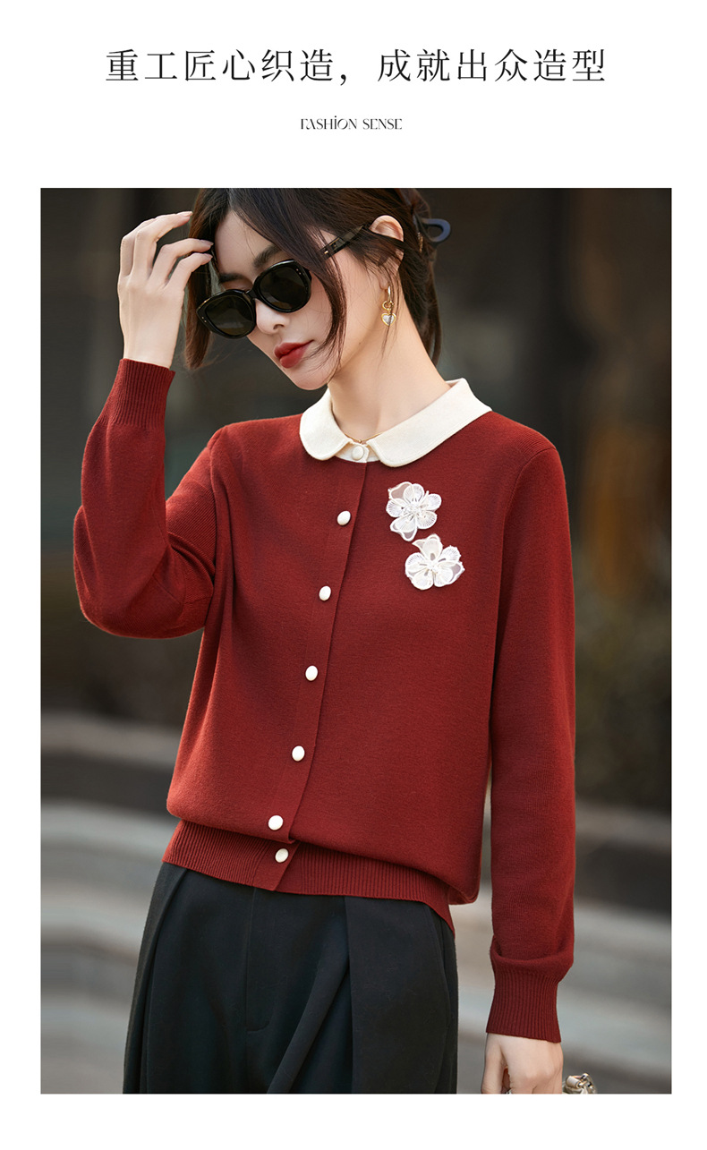 「自」全新升级【铂金会员183/天猫239/差价56】(14035)洛诗琳新款撞色娃娃领羊毛上衣2025冬季气质百搭通勤开衫14035