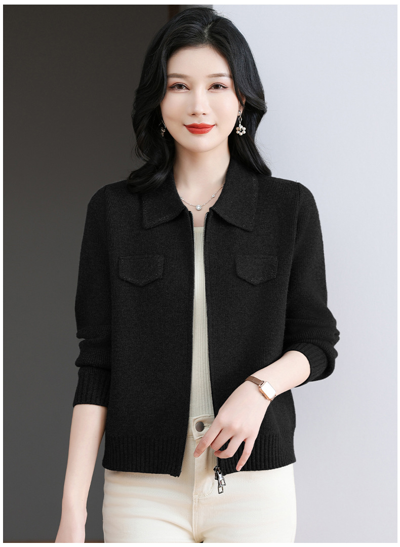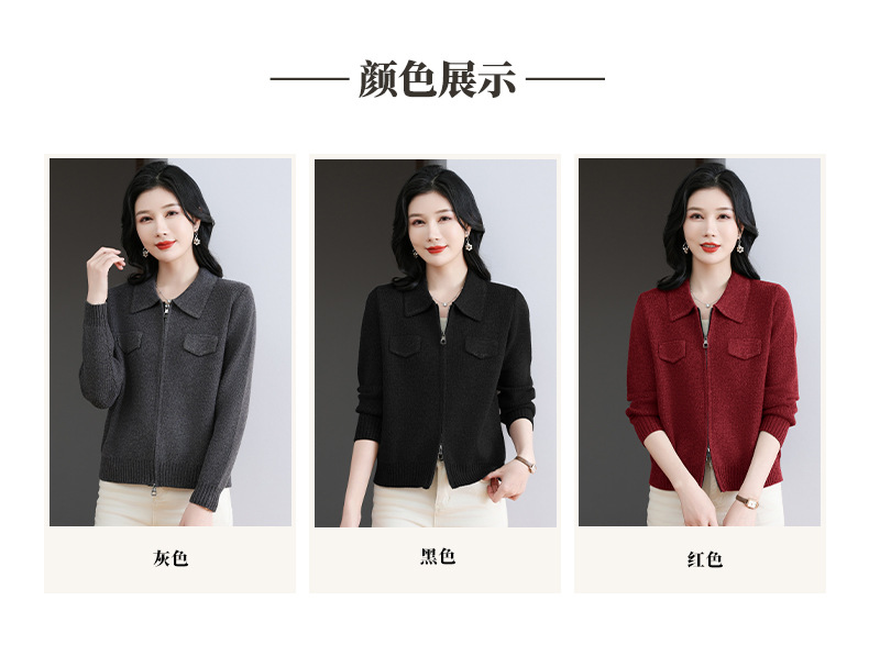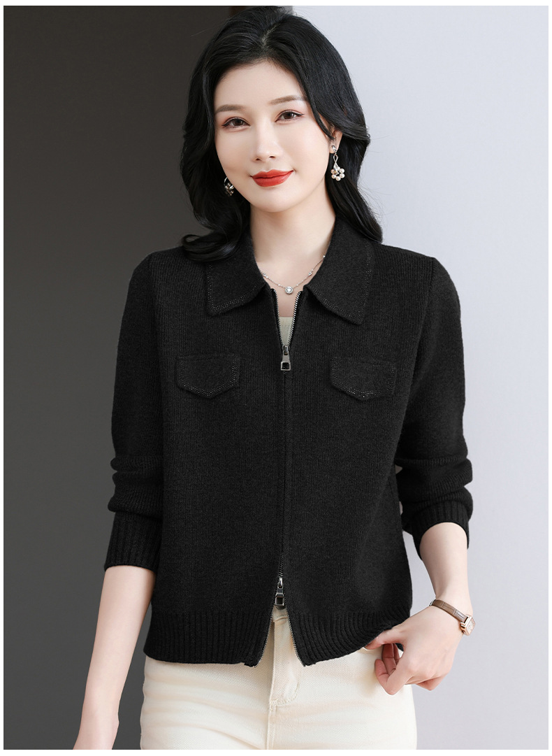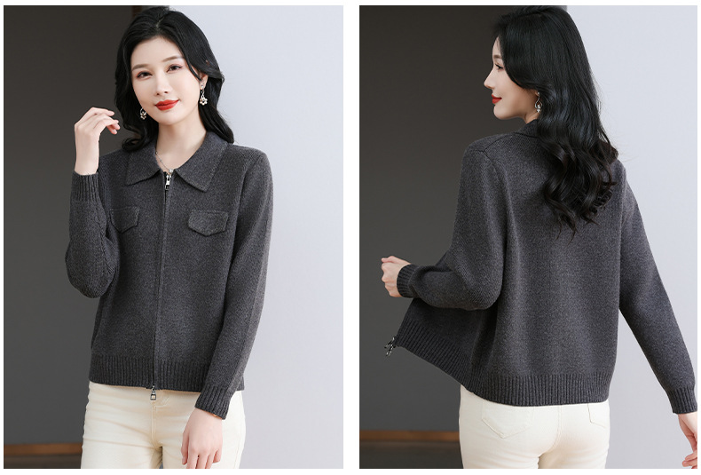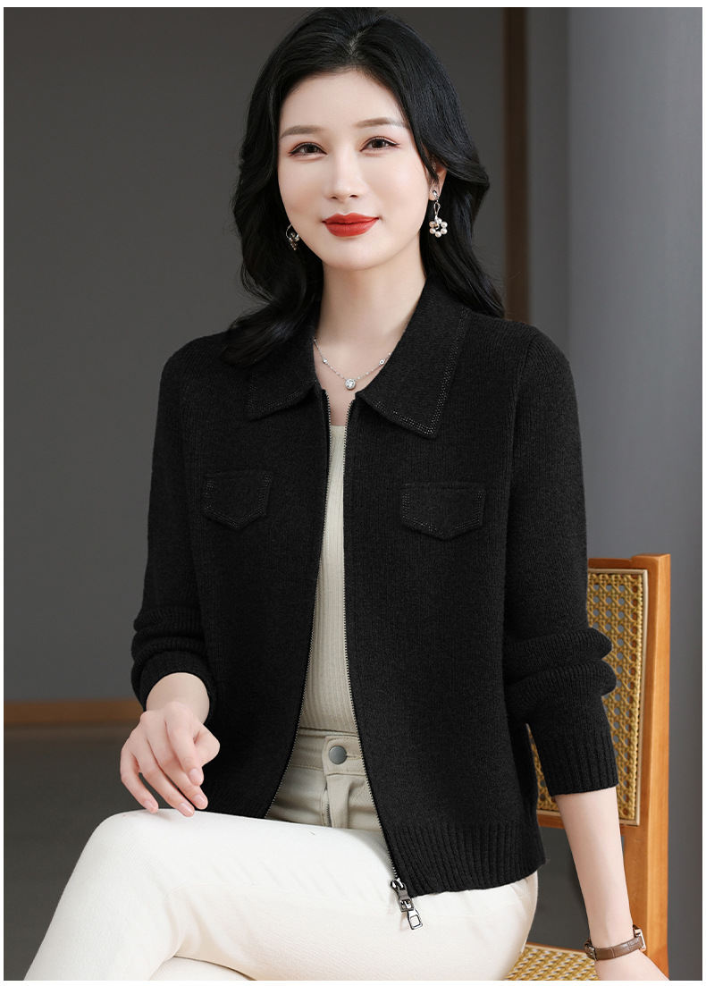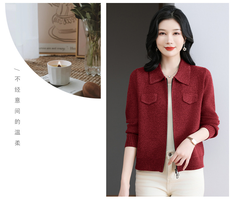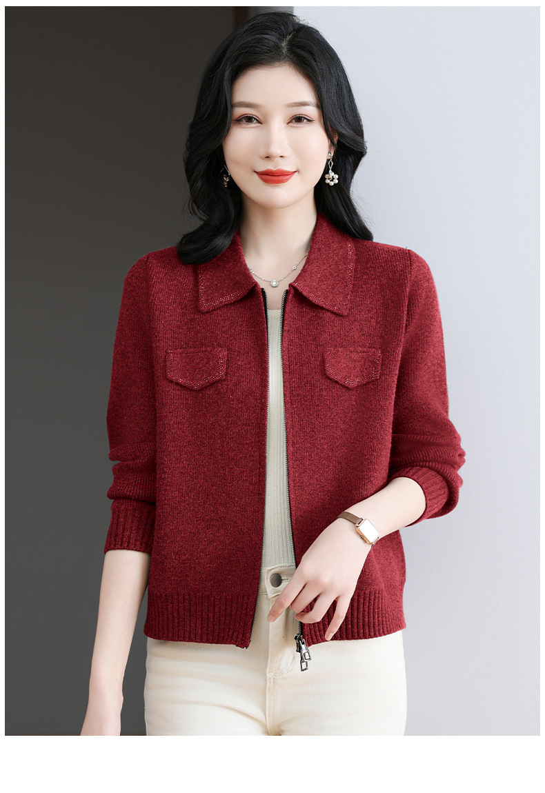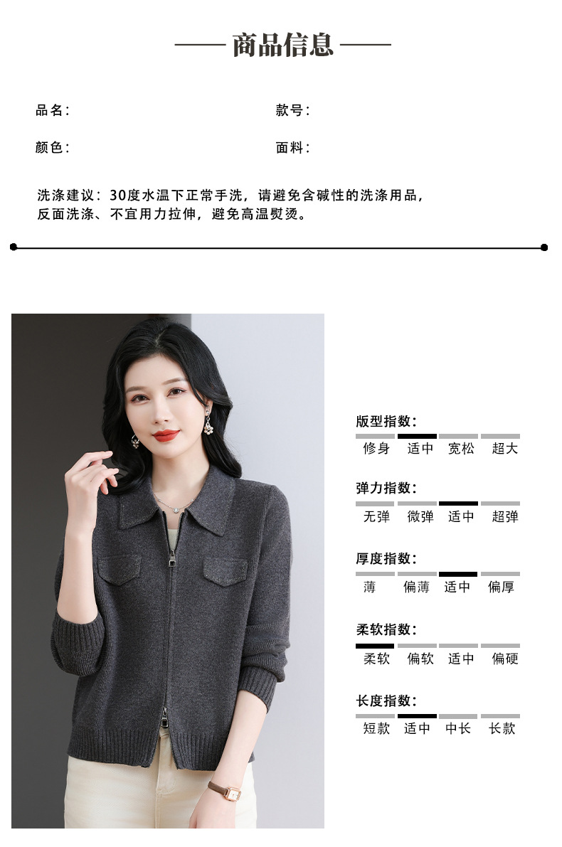 CC-BSM-719春秋小个子针织外套女士2025新款翻领短款洋气毛衣开衫拉链上衣