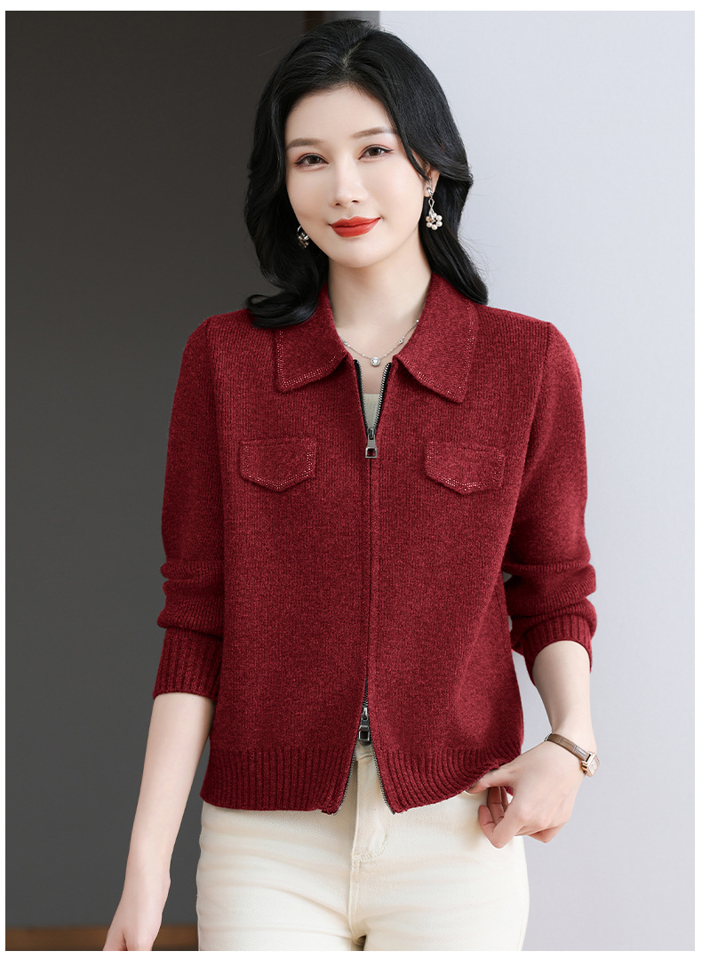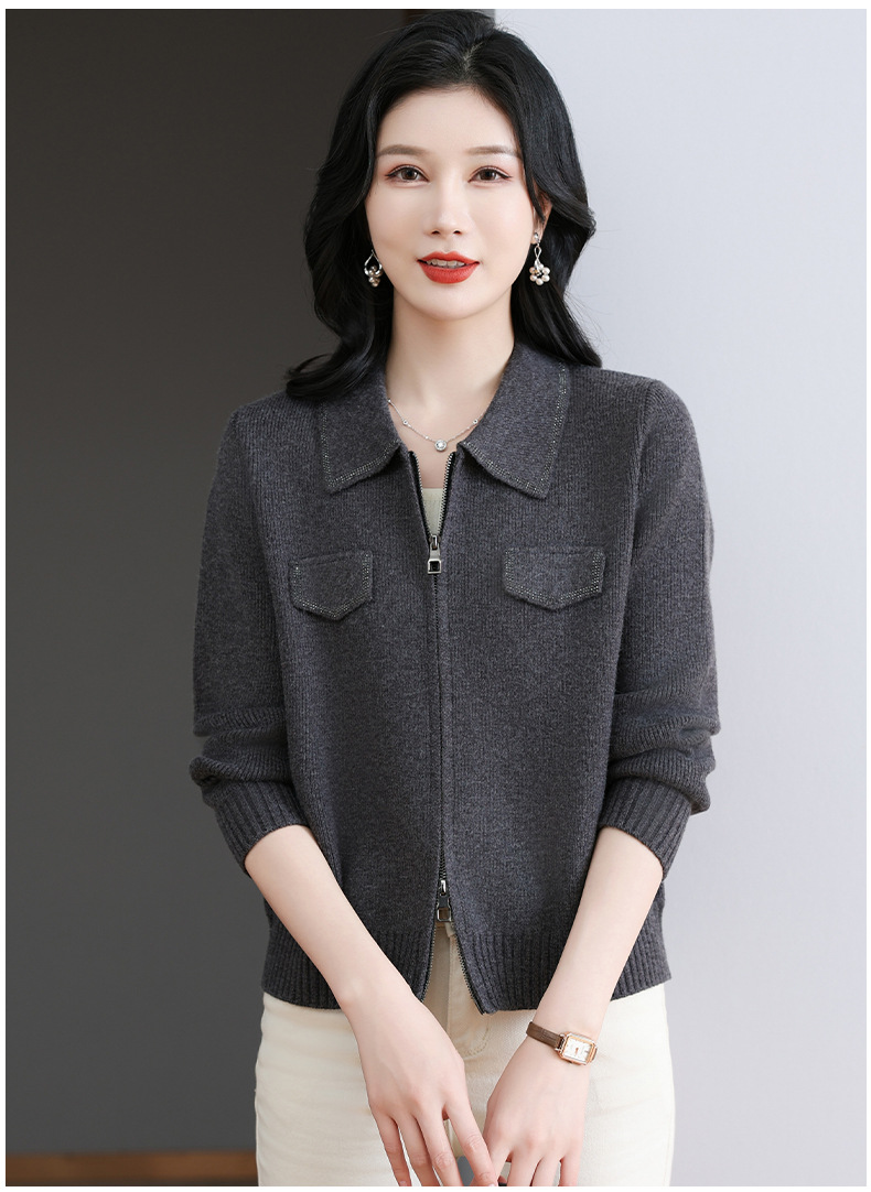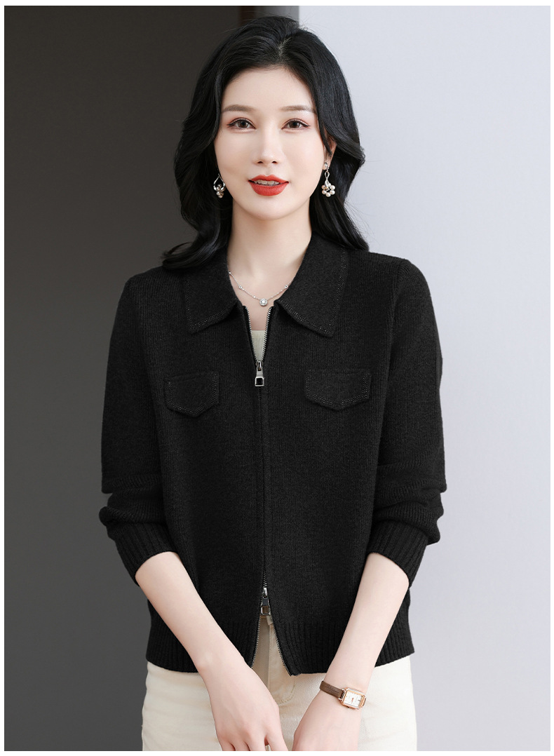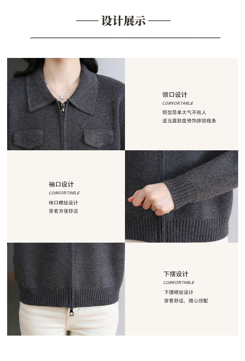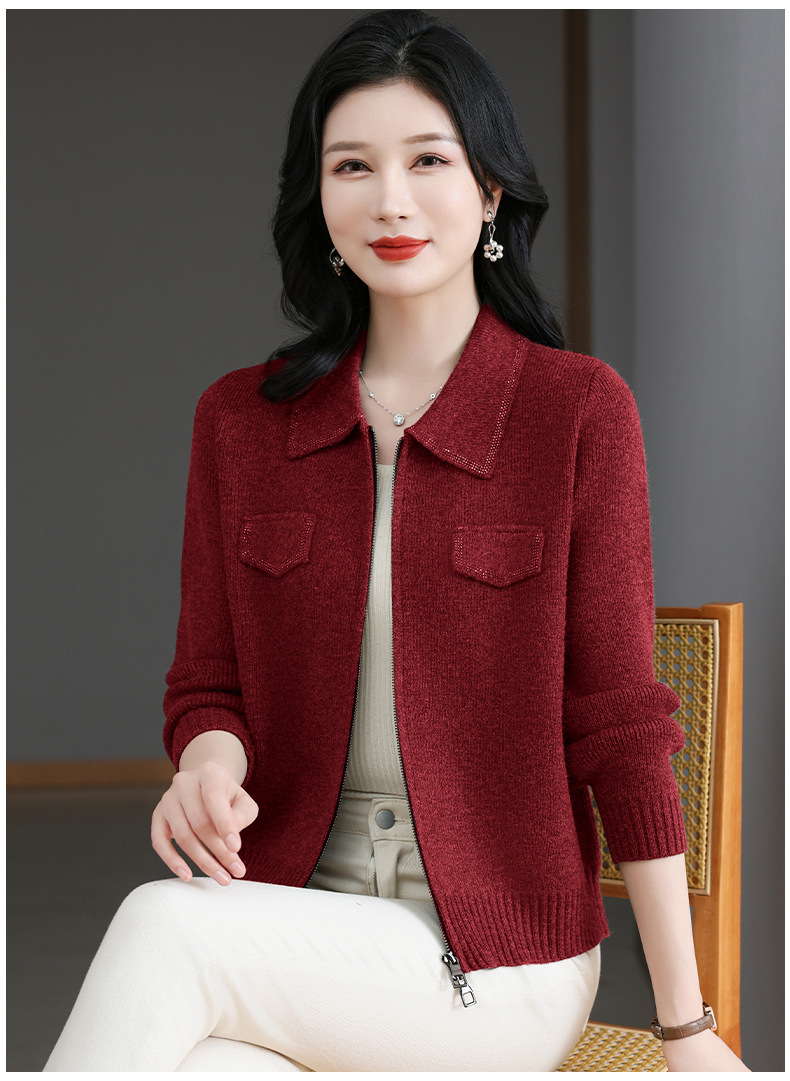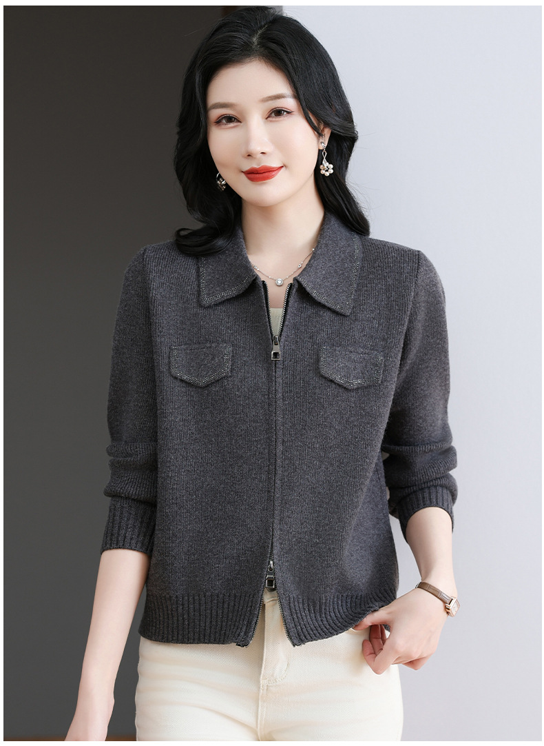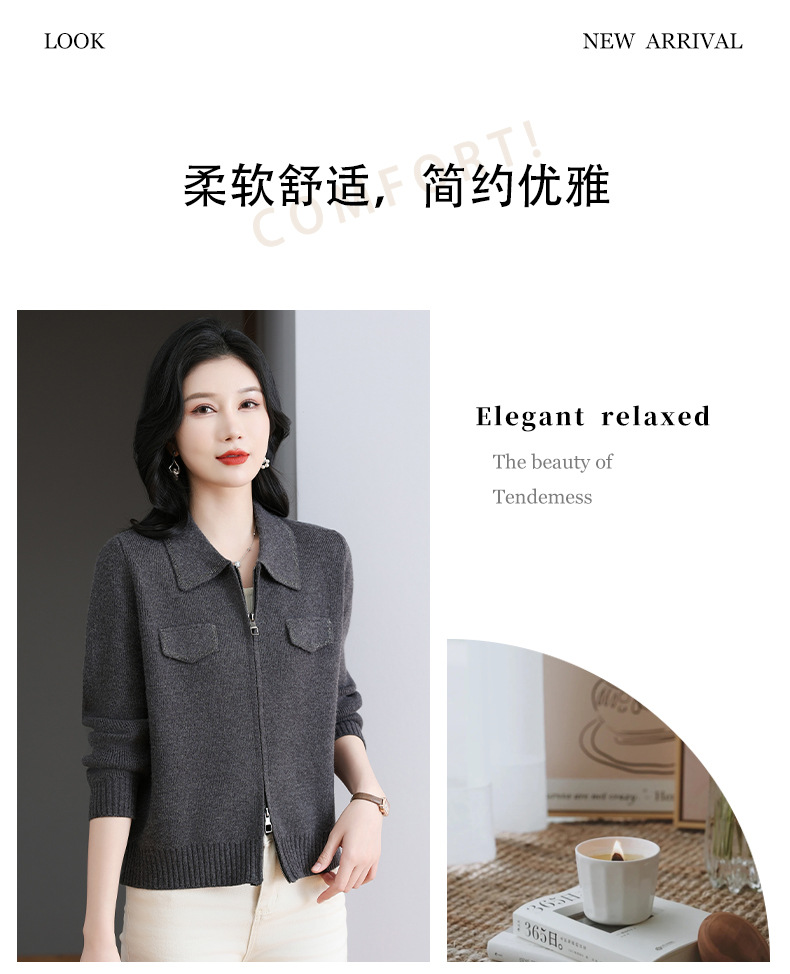 CC-BSM-719春秋小个子针织外套女士2025新款翻领短款洋气毛衣开衫拉链上衣