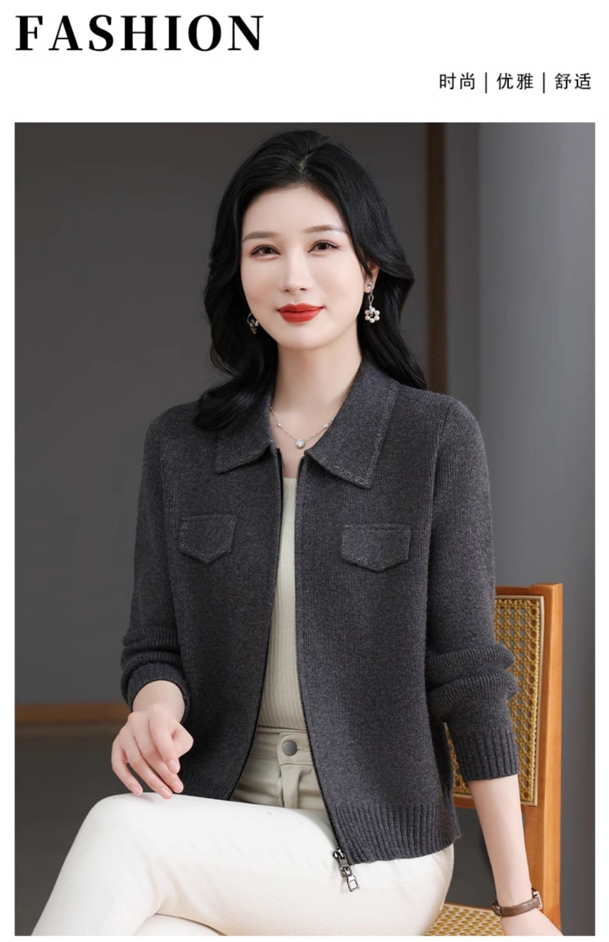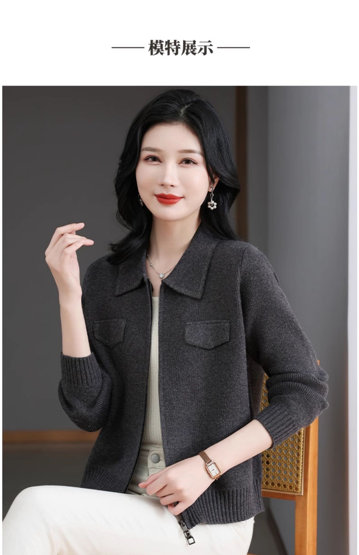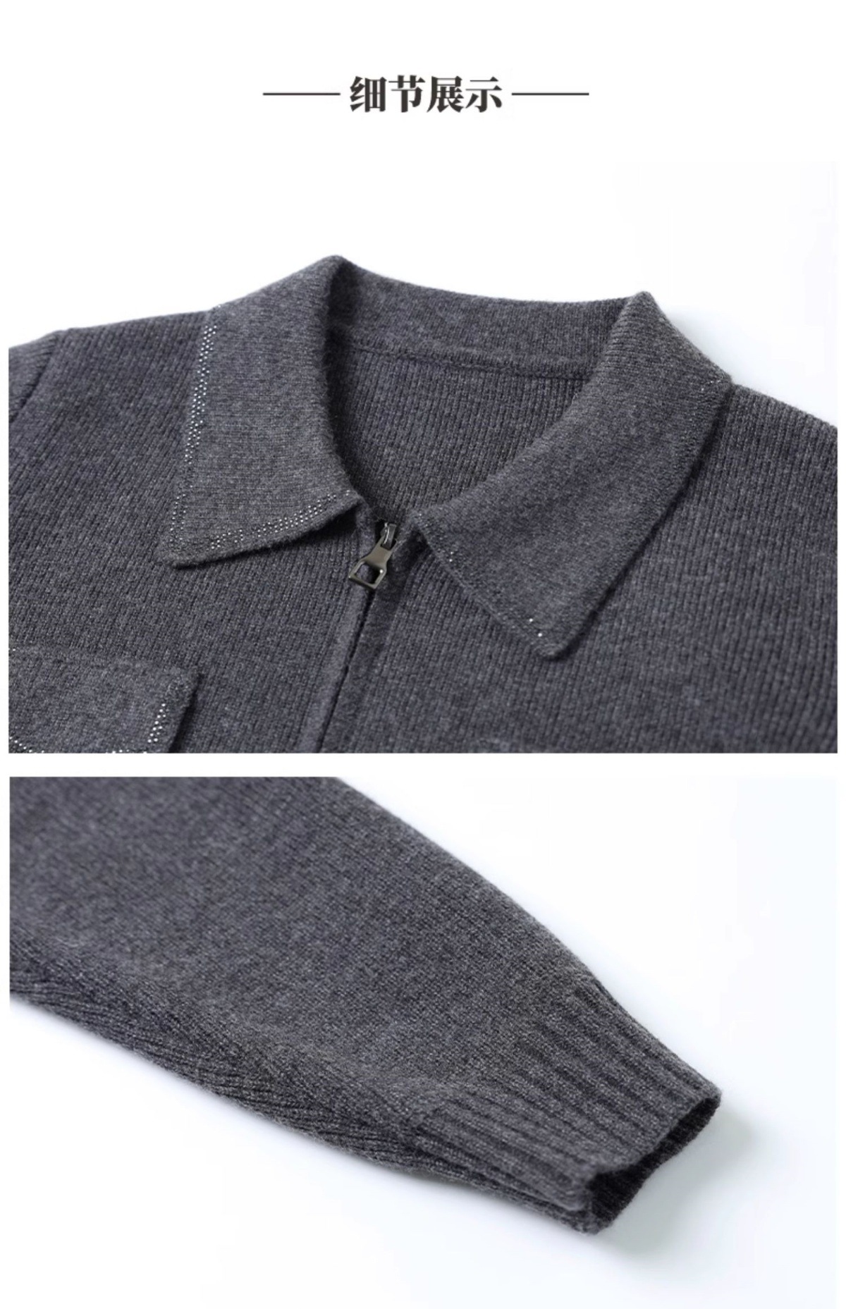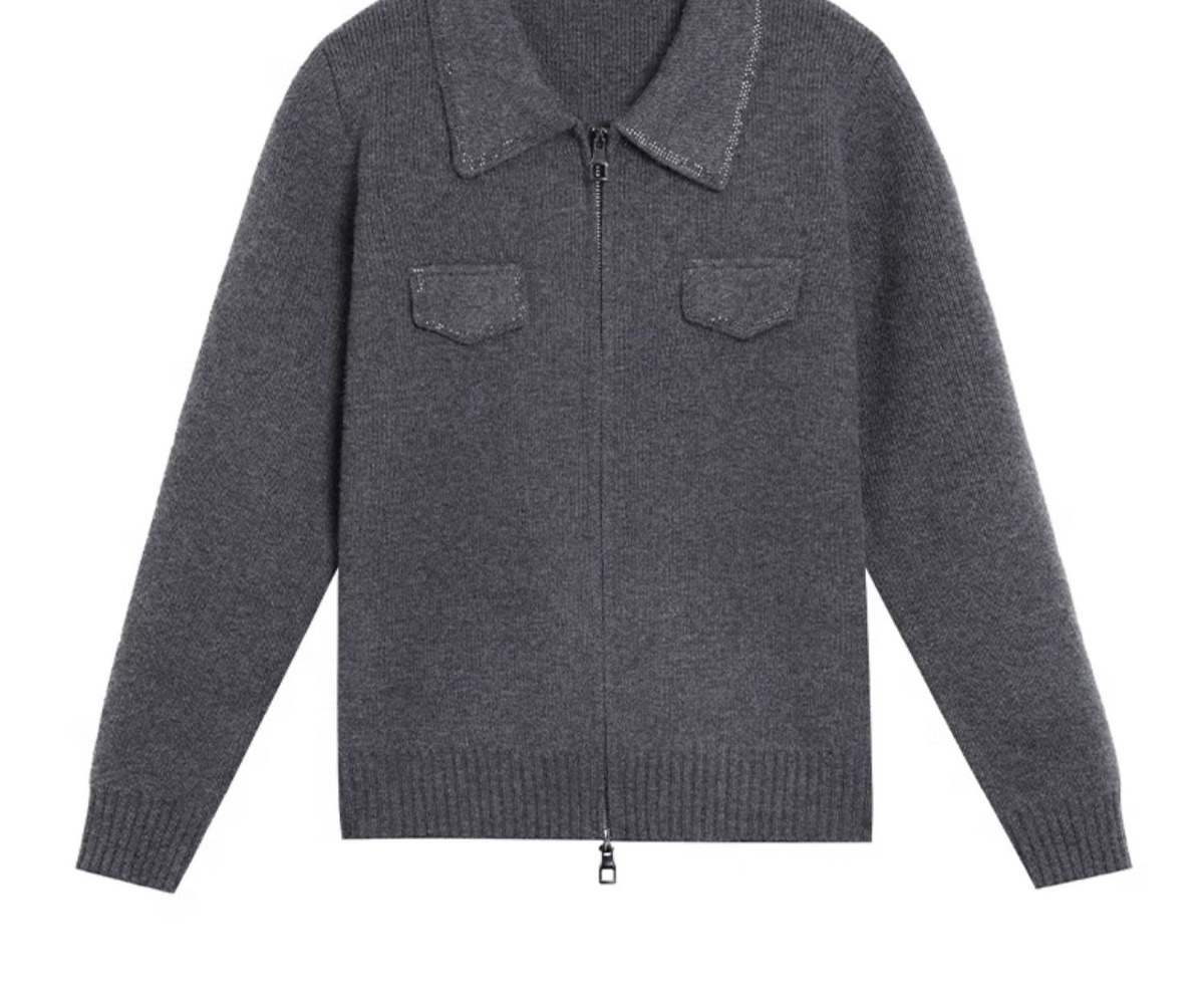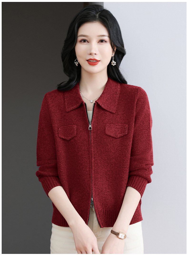 CC-BSM-719春秋小个子针织外套女士2025新款翻领短款洋气毛衣开衫拉链上衣