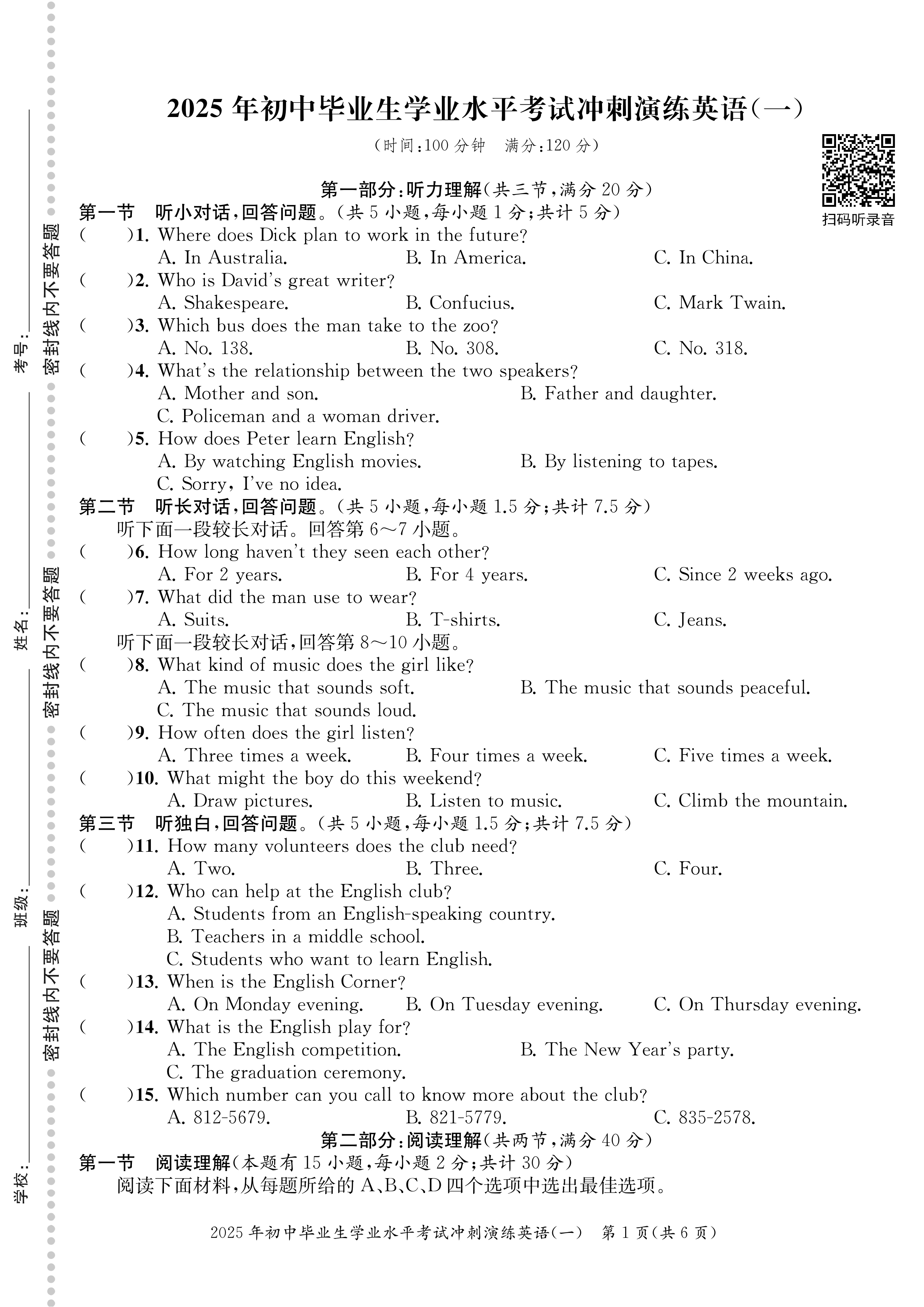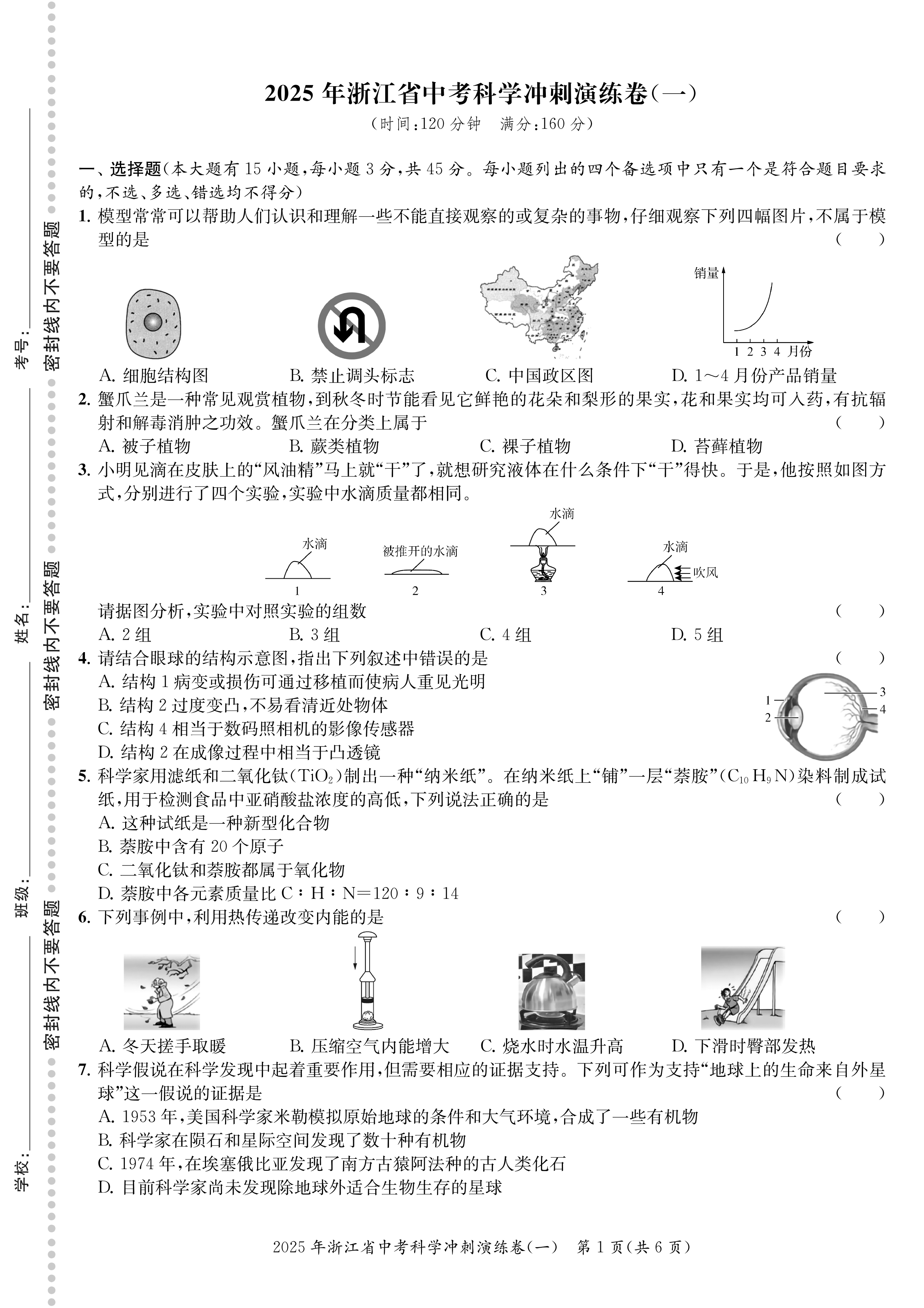 2025 浙江省初中毕业生学业考试冲刺演练(语 数 英 科 社)电子答案