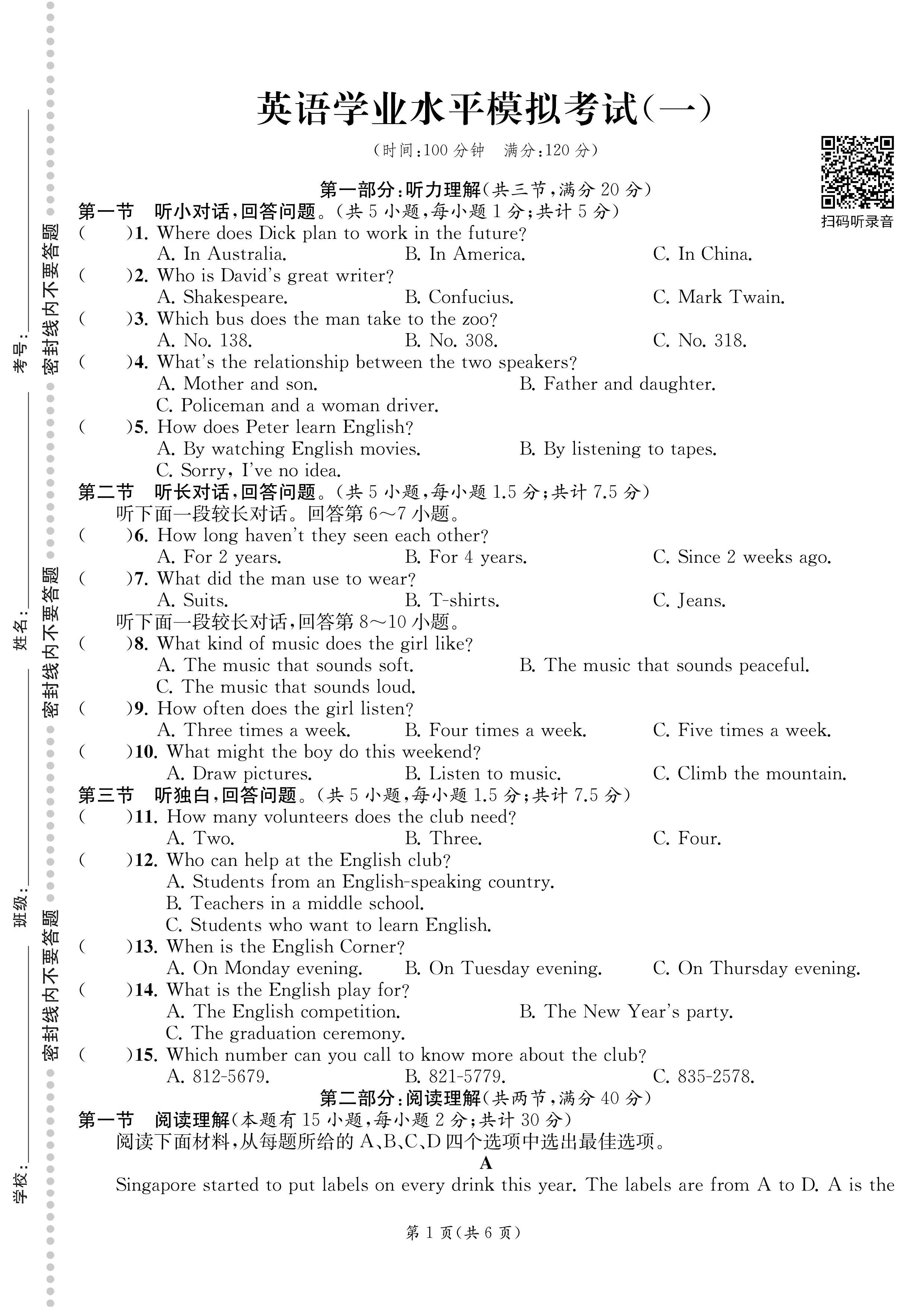 2026 浙江省初中毕业生学业考试冲刺演练(语 数 英 科 社)电子答案