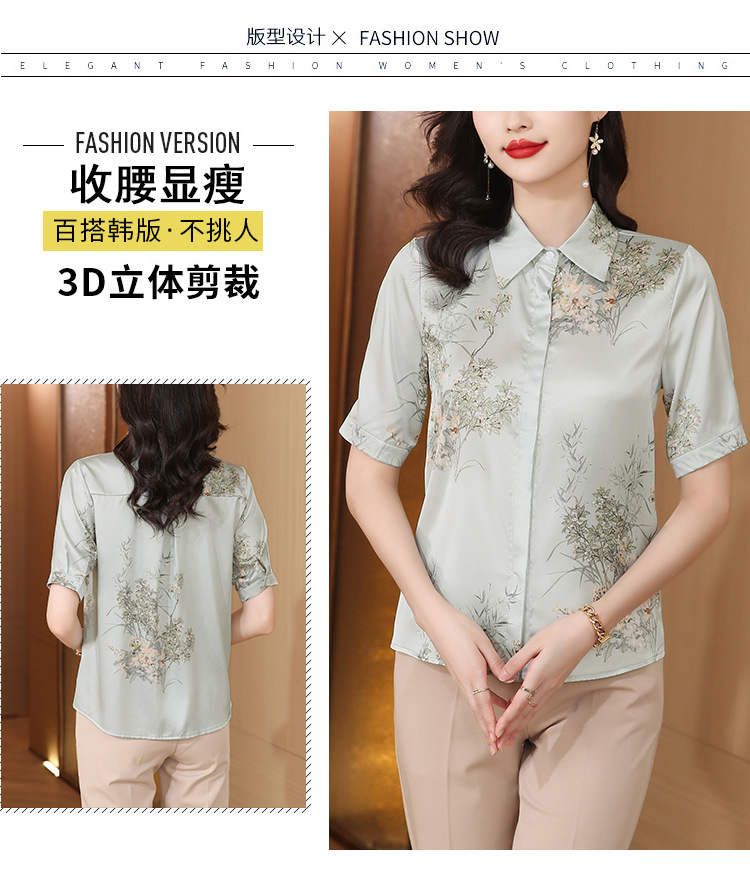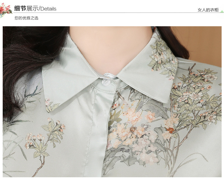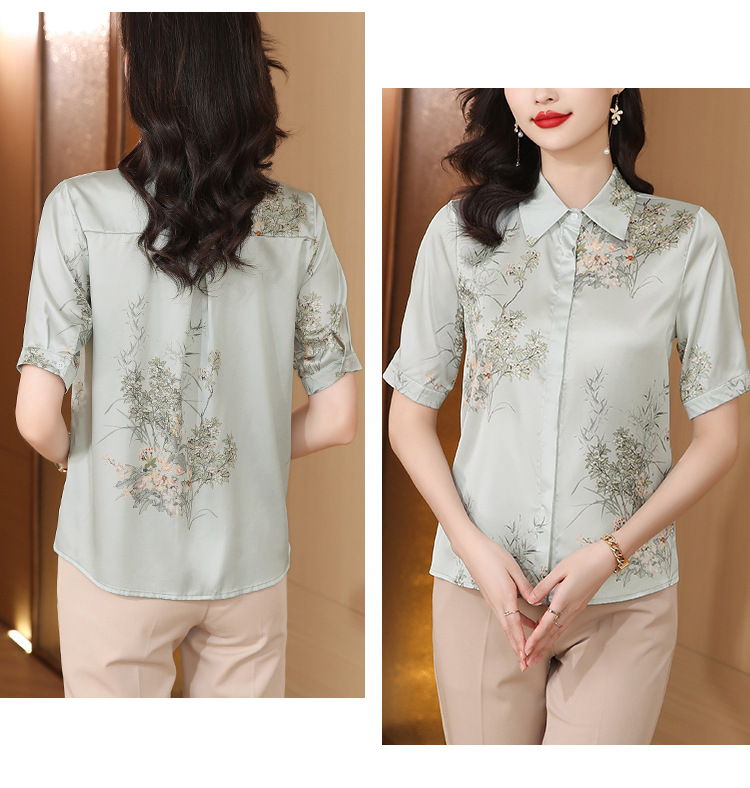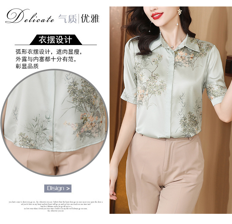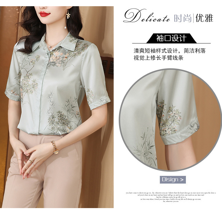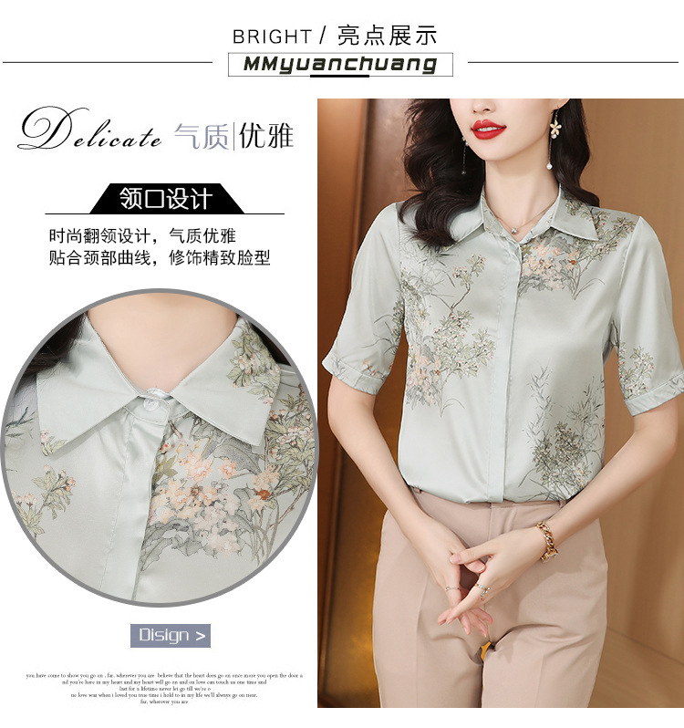 XY34780高品质舒适透气减龄中年女真丝上衣女桑蚕丝衬衫新款中国风小衫夏