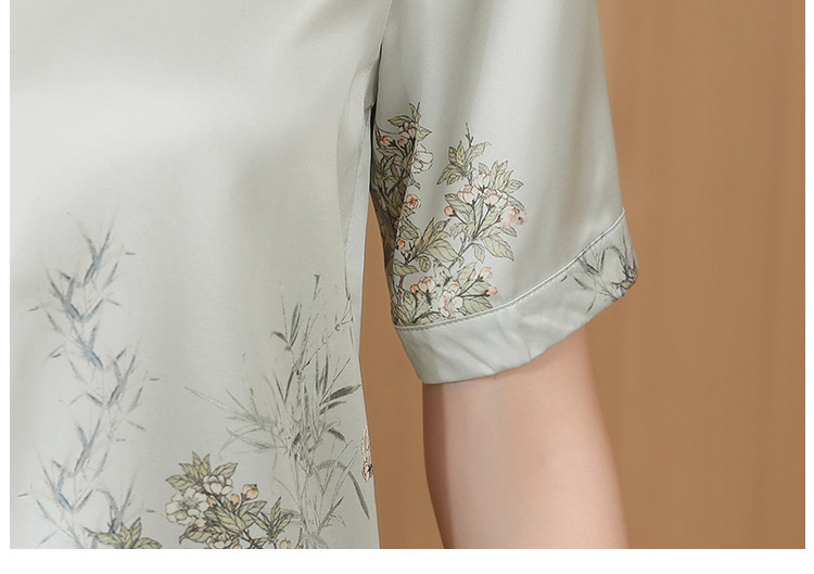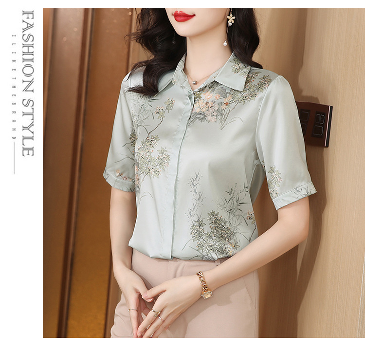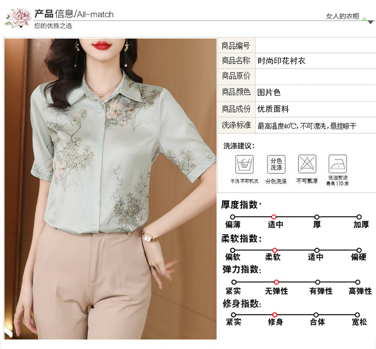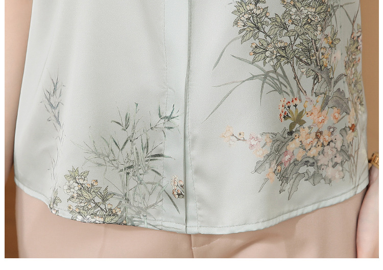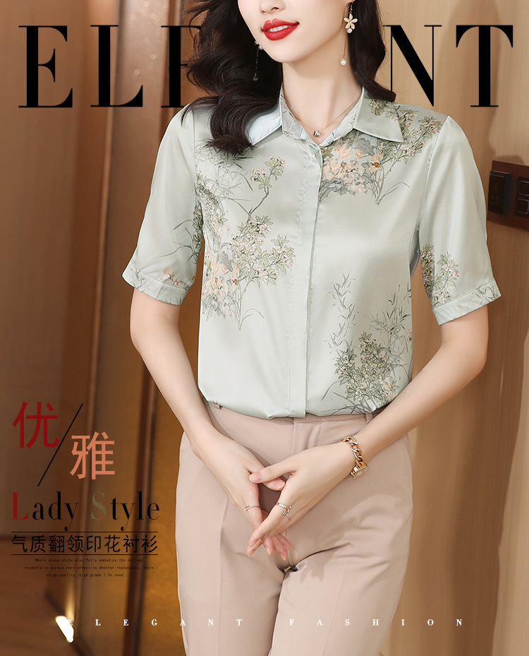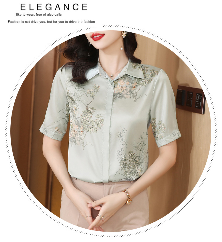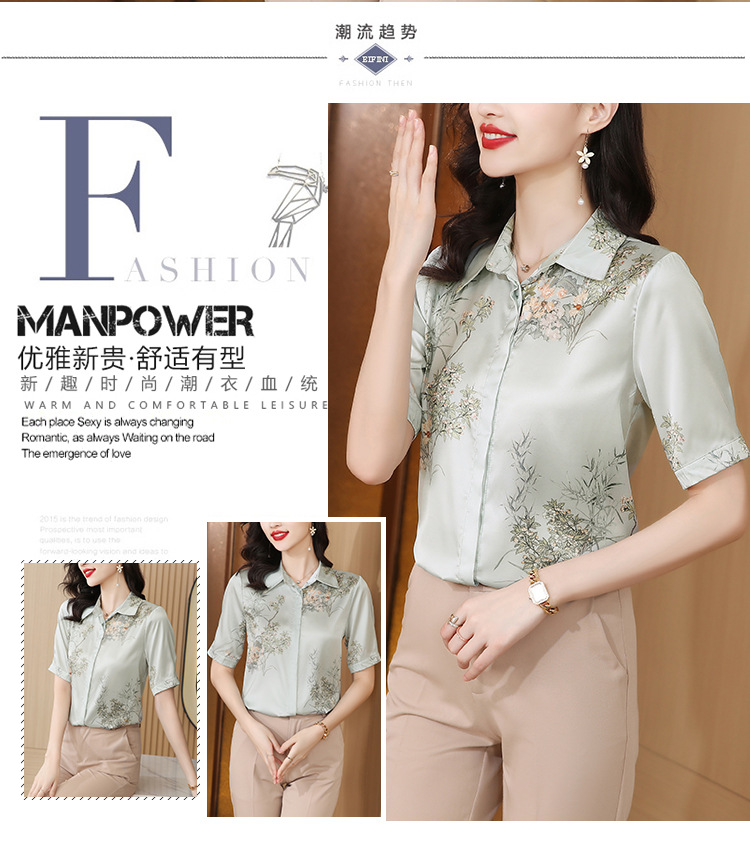 XY34780高品质舒适透气减龄中年女真丝上衣女桑蚕丝衬衫新款中国风小衫夏