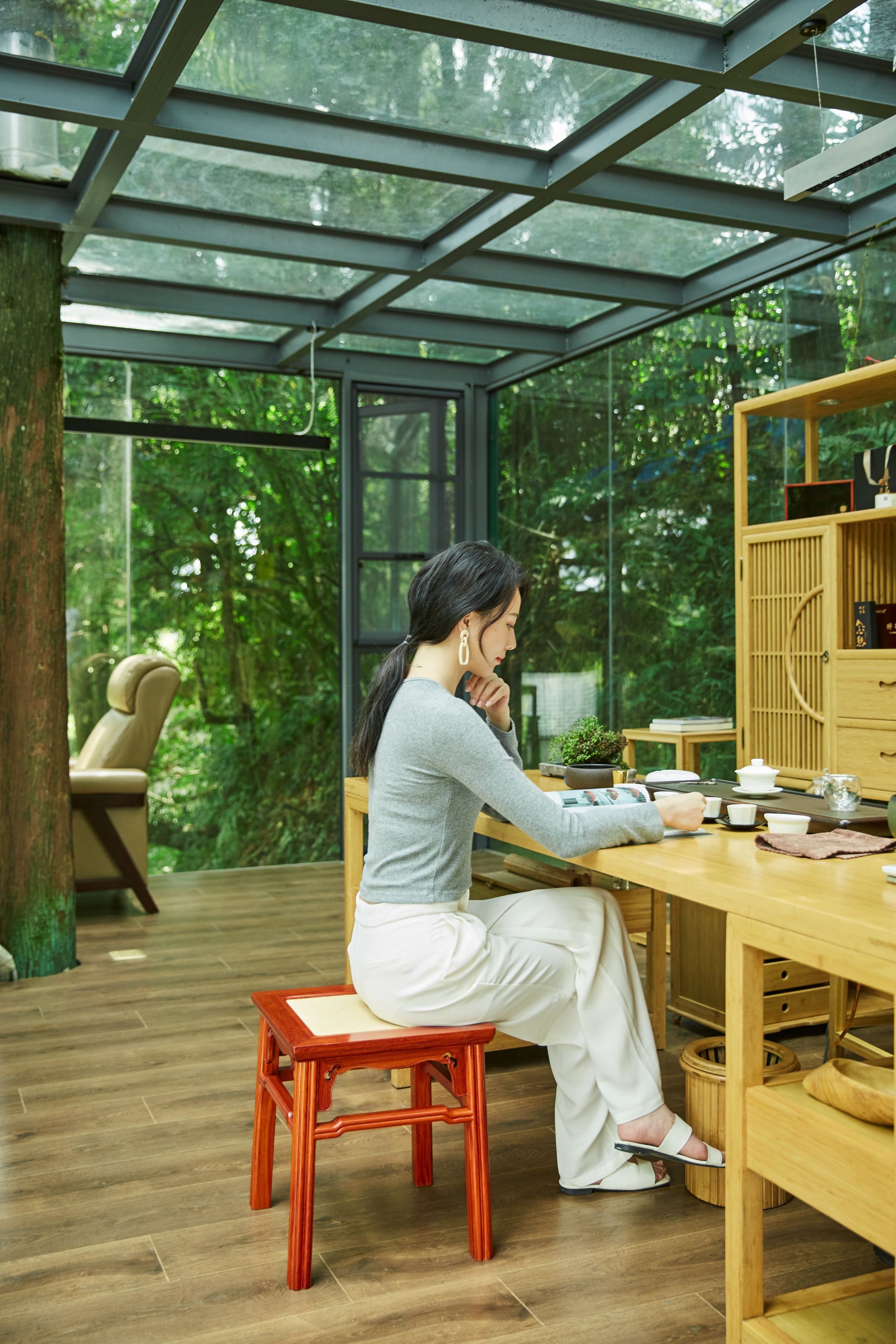 此凳因锼镂和线棱的应用,文秀的格调中显出犀利流畅的意趣,可搭配一般的茶桌,休闲桌或置于庭院之中闲坐,对弈,别有一番生活韵味。