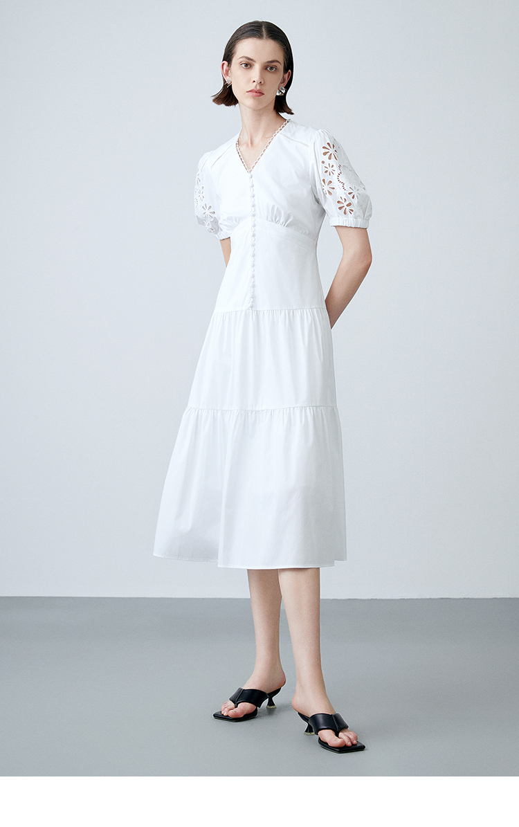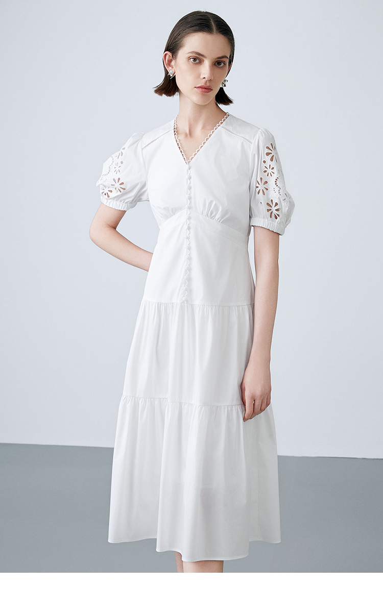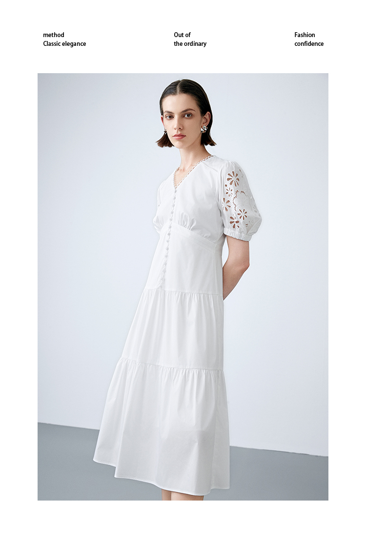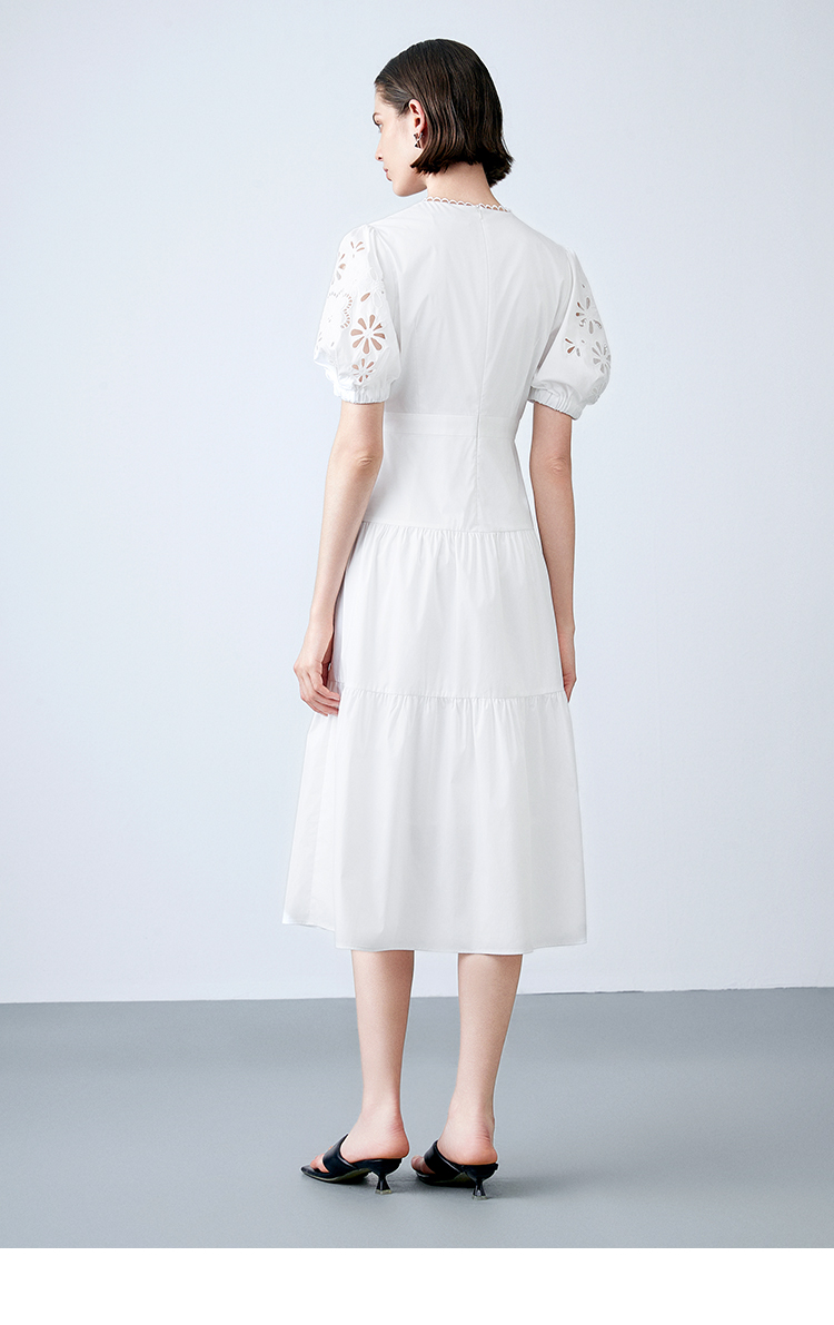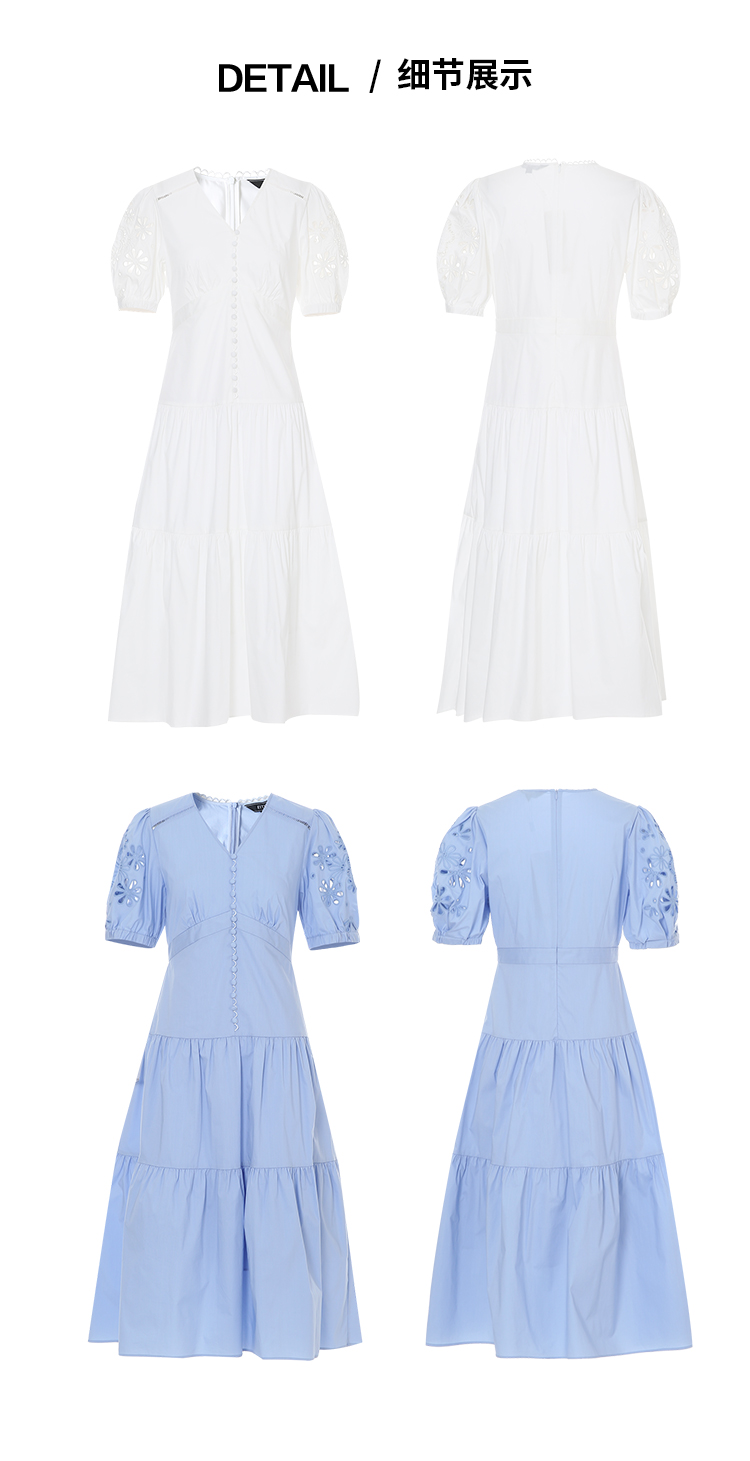 EITIE爱特爱夏季新款洋气修身显瘦镂空白色连衣裙7707428