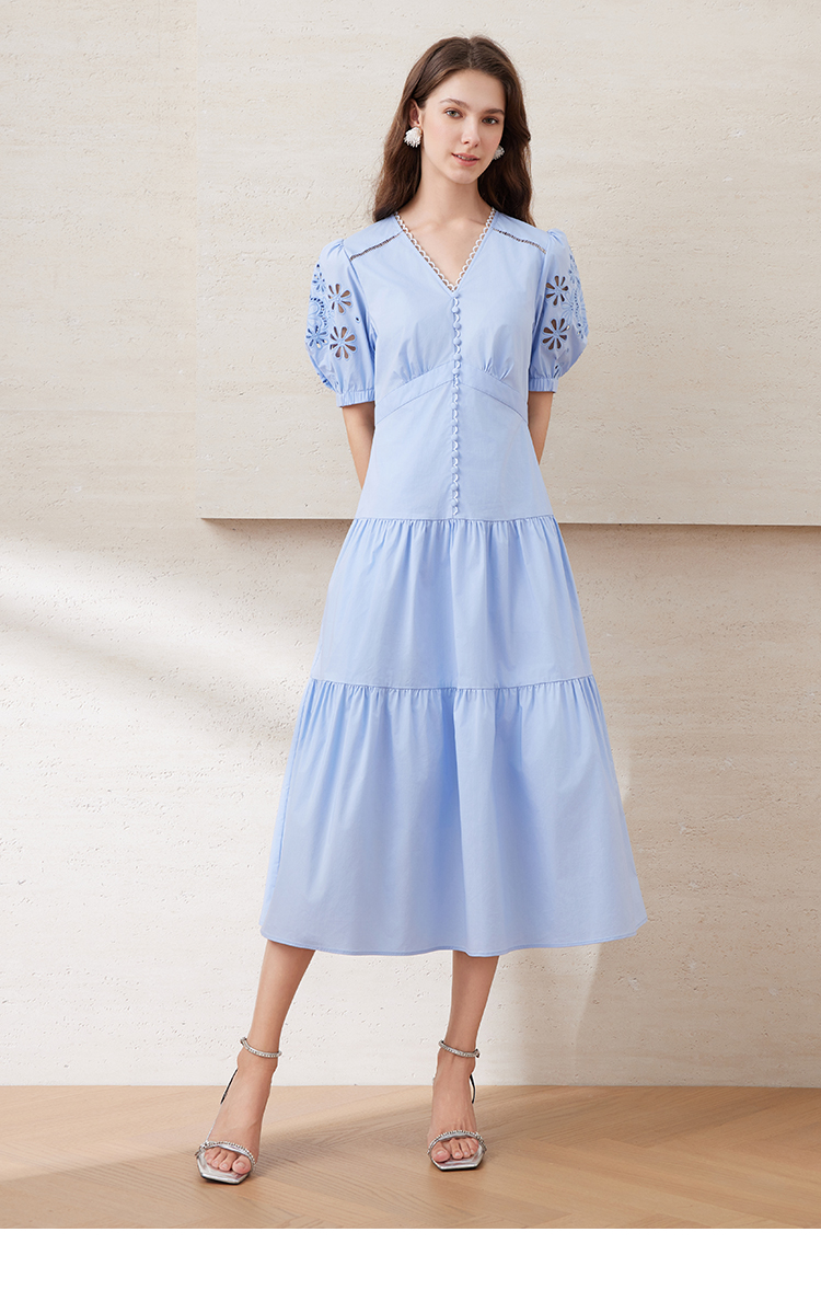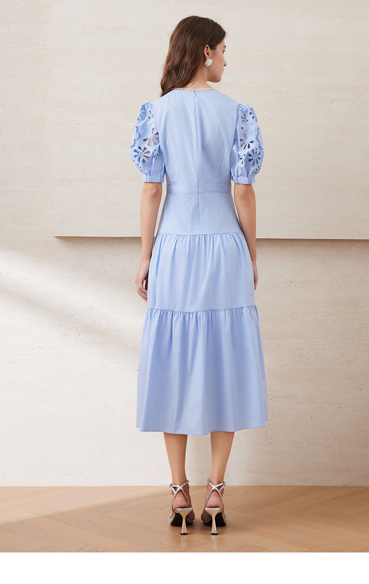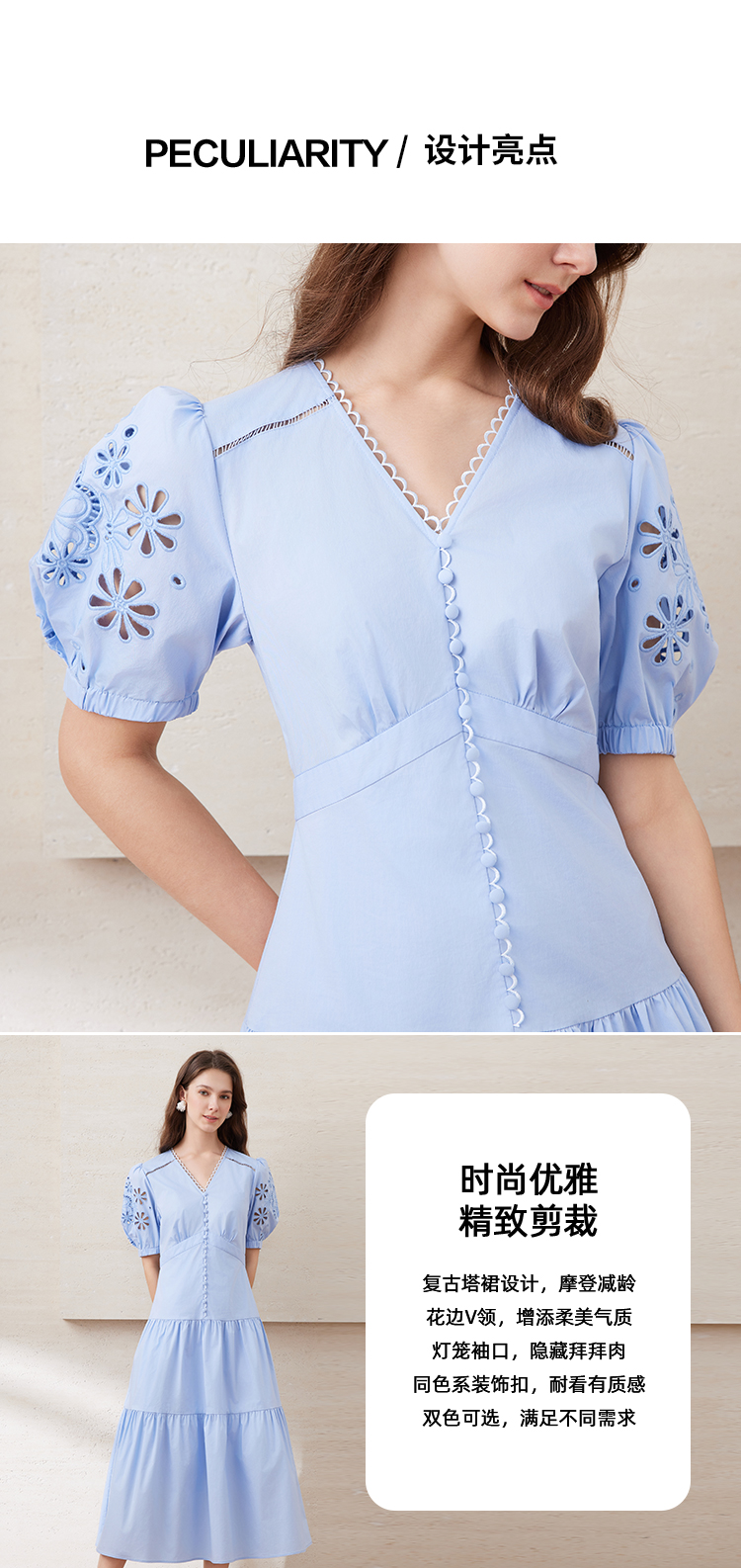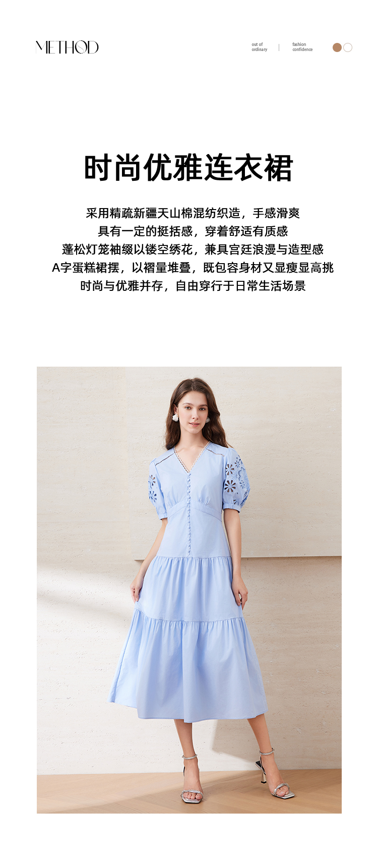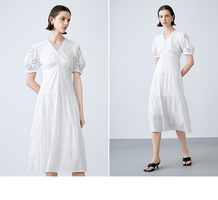 EITIE爱特爱夏季新款洋气修身显瘦镂空白色连衣裙7707428