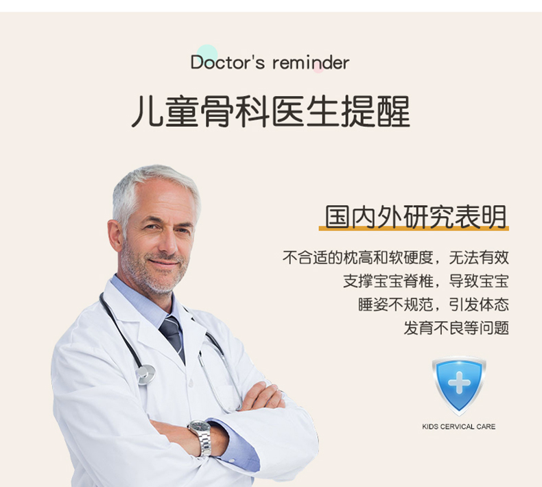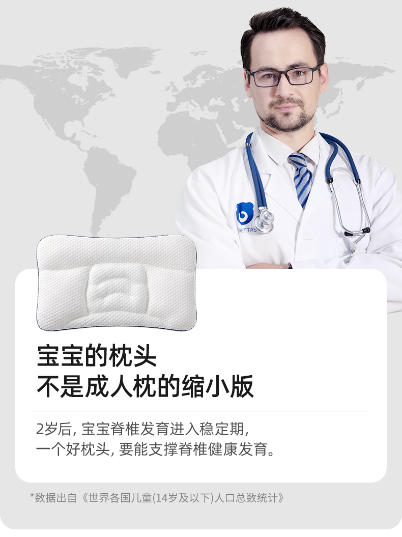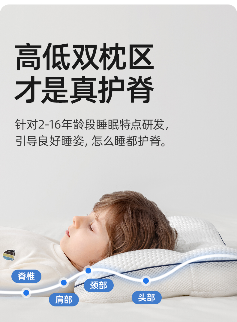 贝肽斯儿童枕头1-3岁以上宝宝6岁小学生专用护颈婴儿护脊四季通用