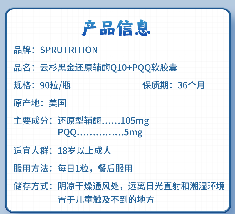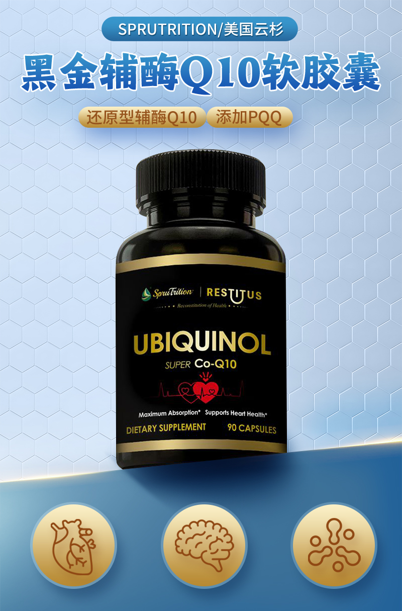 黑金还原辅酶Q10+PQQ线粒体胶囊90粒/瓶SPRUTRITION/美国进口云杉