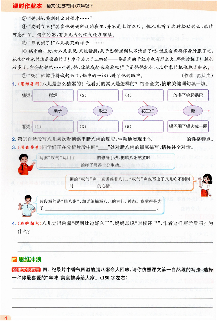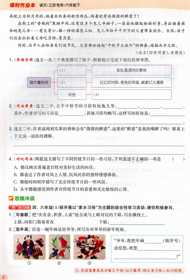 2026年春 语文课时作业本6下 配人教部编版 六年级下册 小学同步教辅