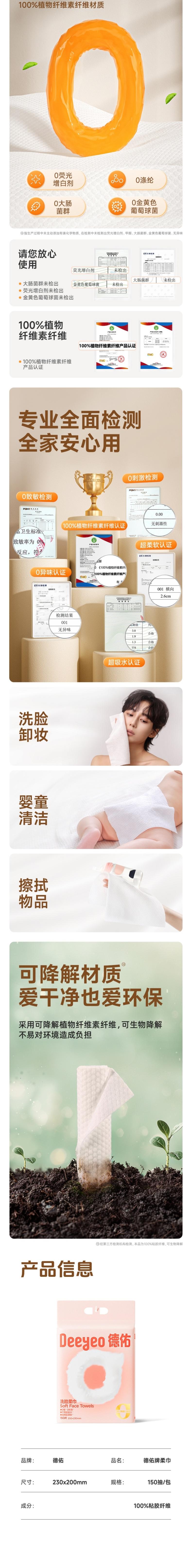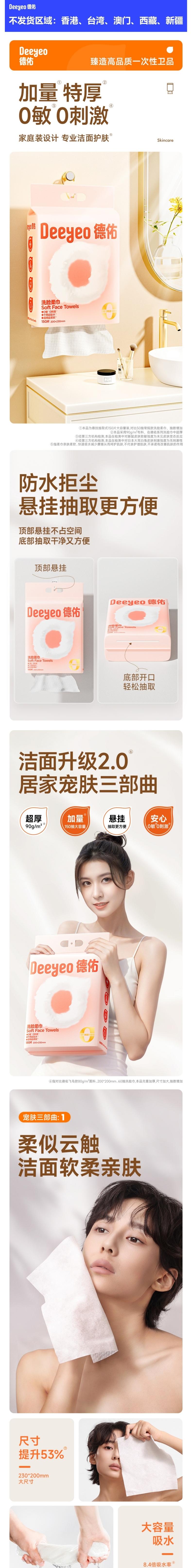 德佑Deeyeo 云朵悬挂式洗脸巾150片黄色1包 2001DYCT344