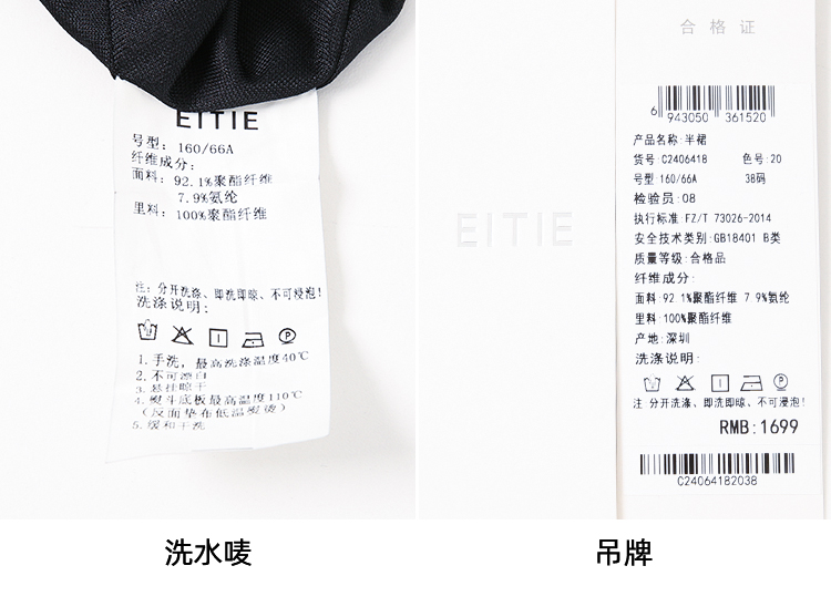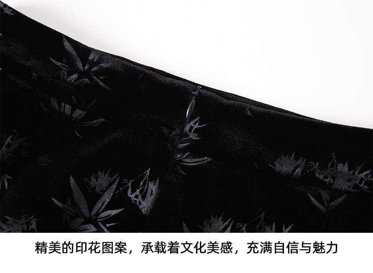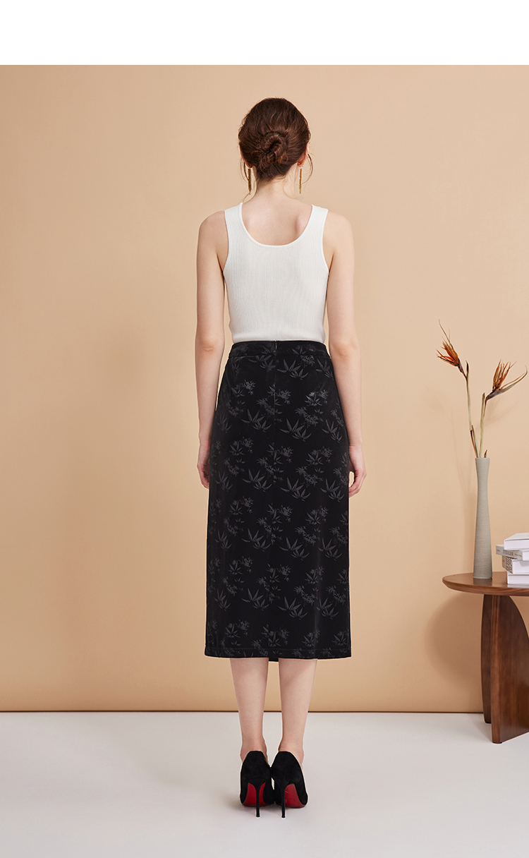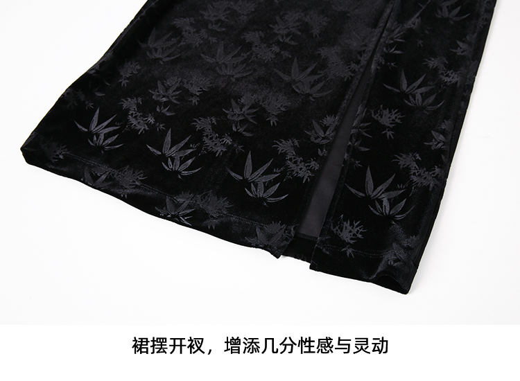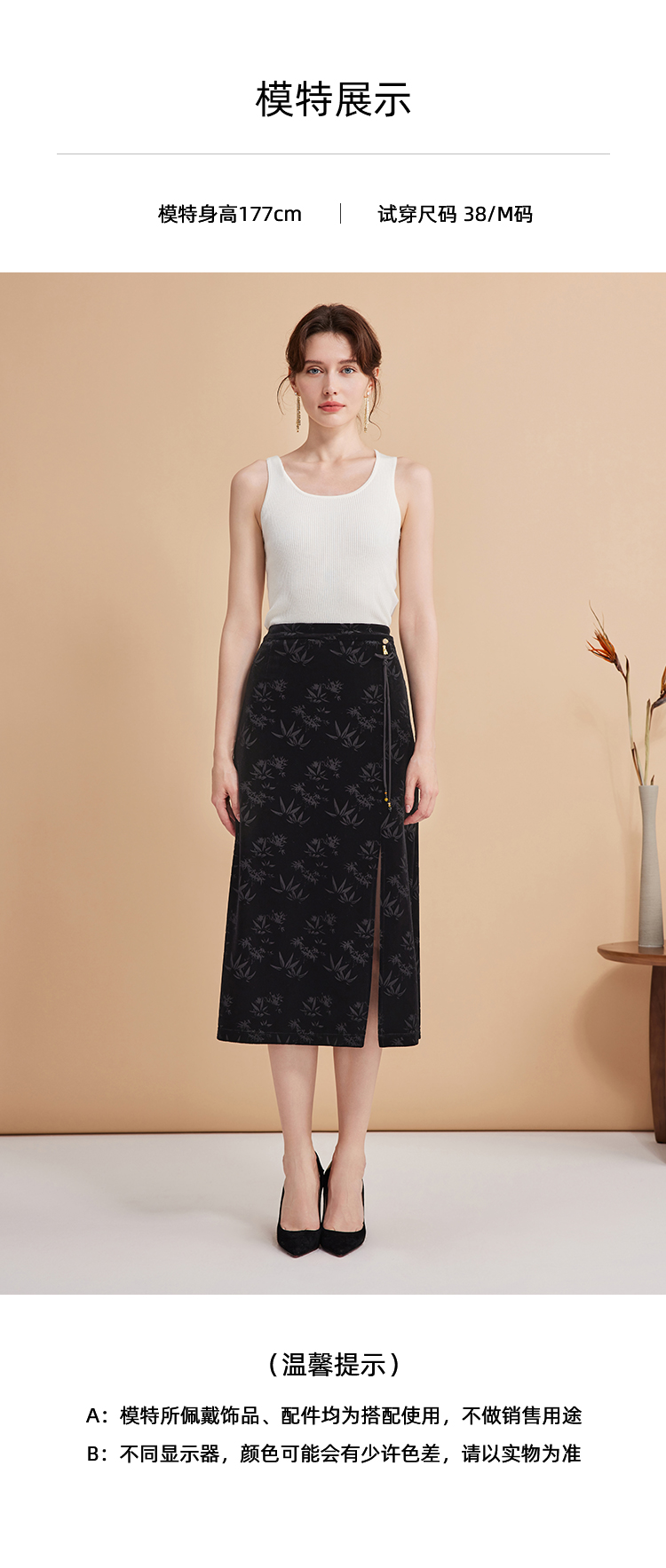 EITIE爱特爱气质优雅中式暗纹吊坠黑色丝绒开叉半身裙秋新款C2406418