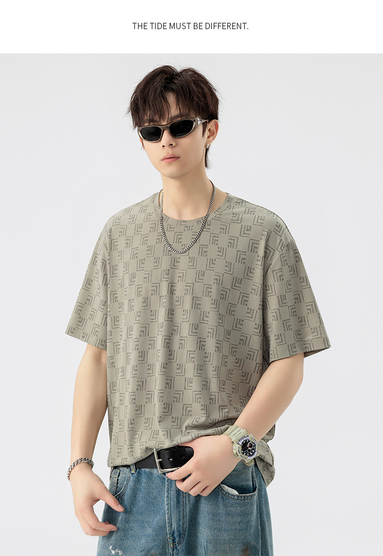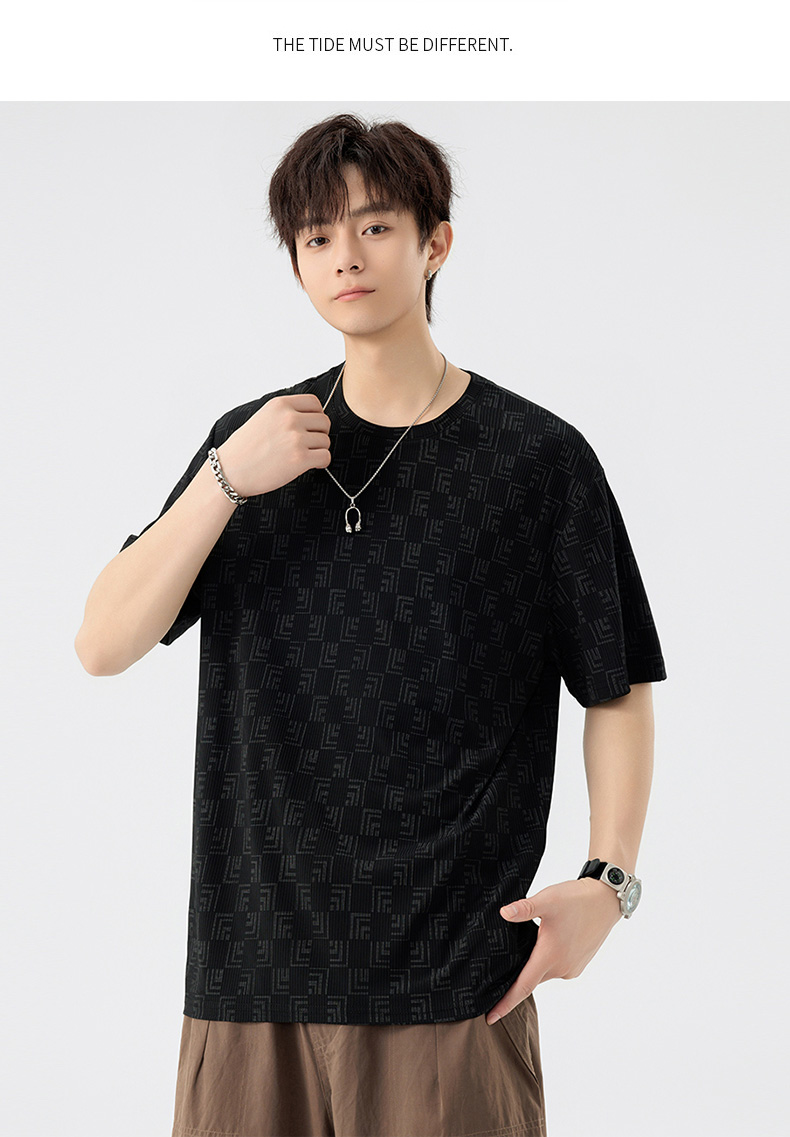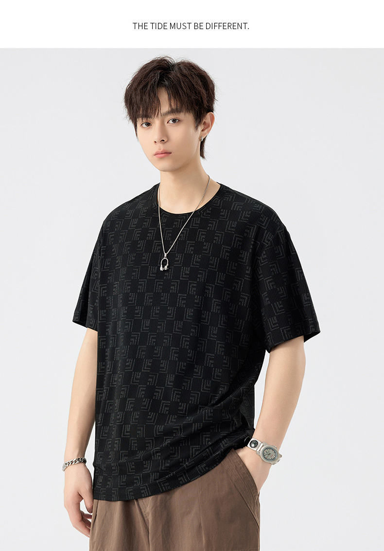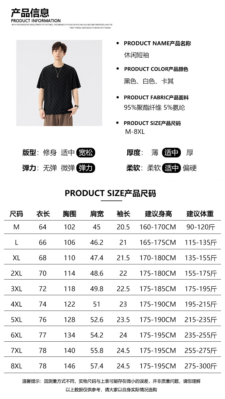 【DSL】大依优型大码圆领短袖T恤夏季加肥加大肥佬休闲宽松透气弹力男装上衣潮款