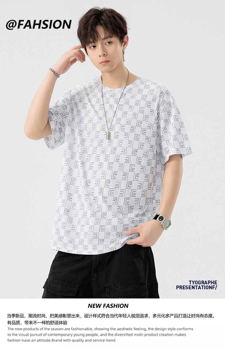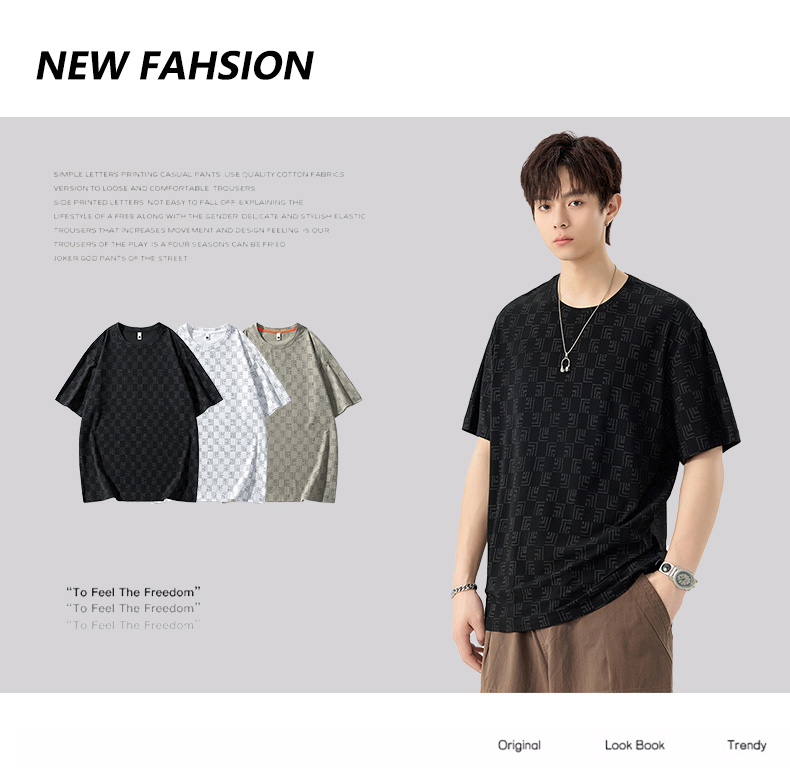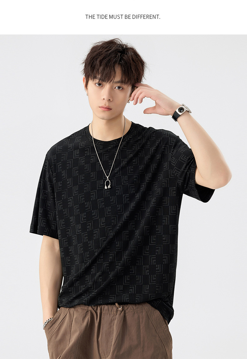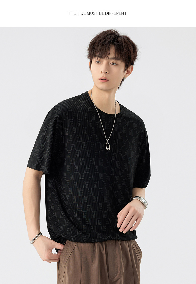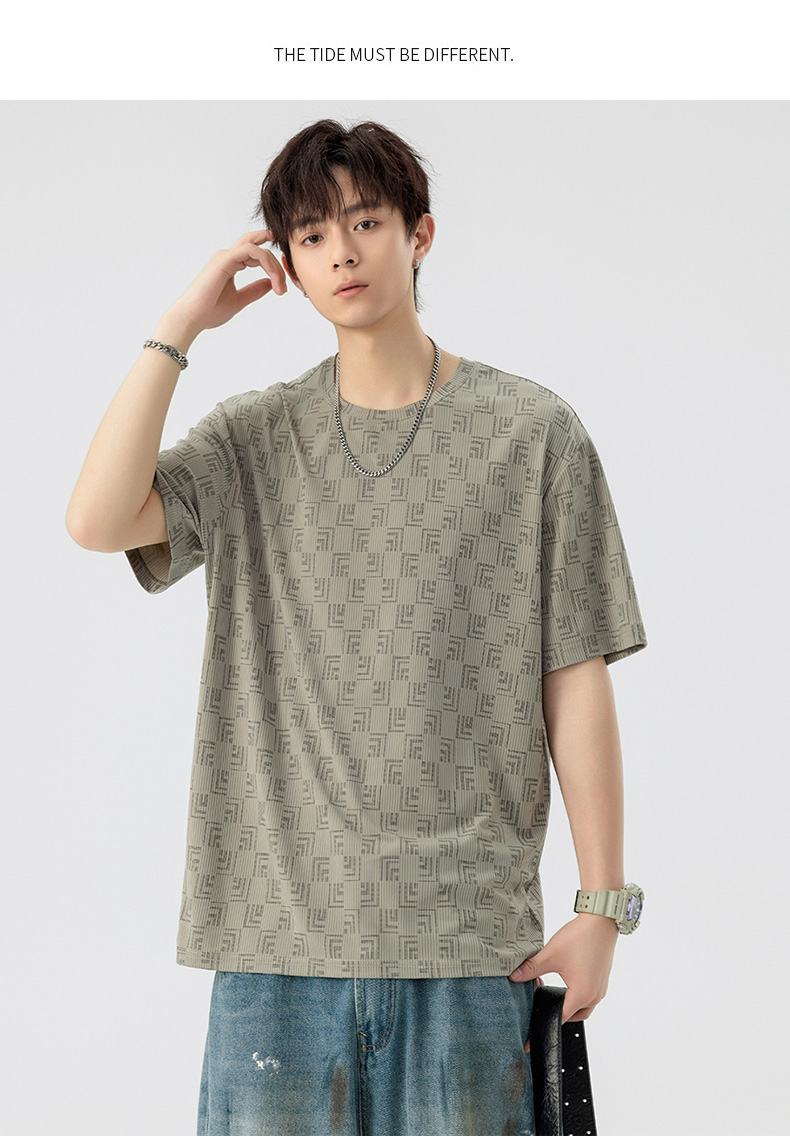 【DSL】大依优型大码圆领短袖T恤夏季加肥加大肥佬休闲宽松透气弹力男装上衣潮款