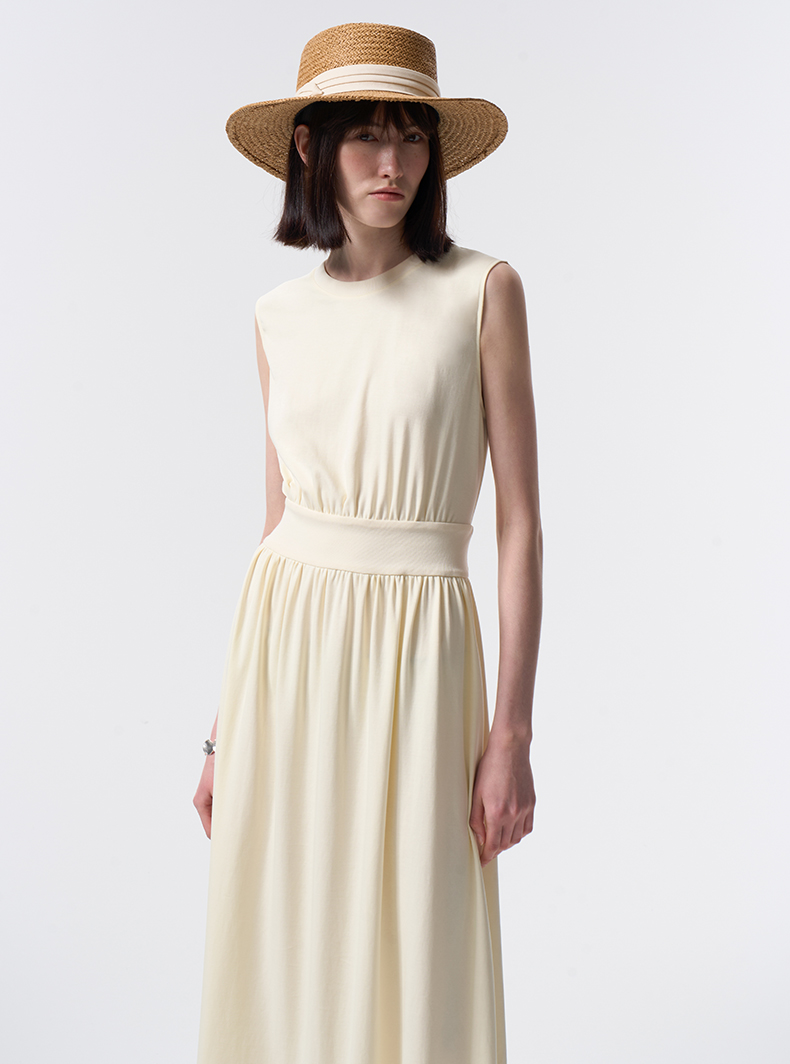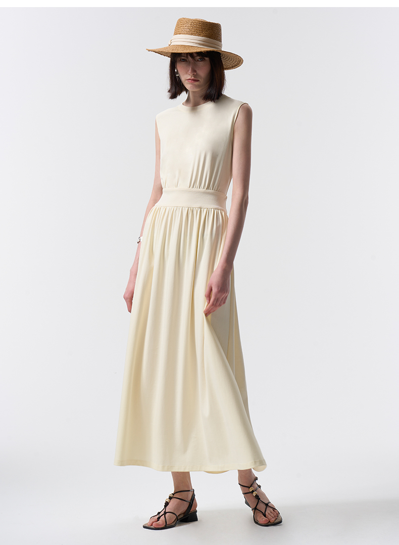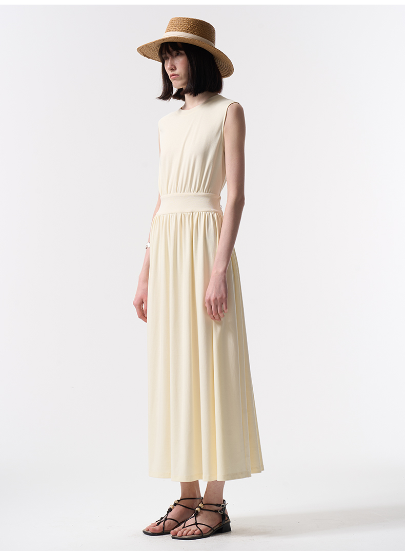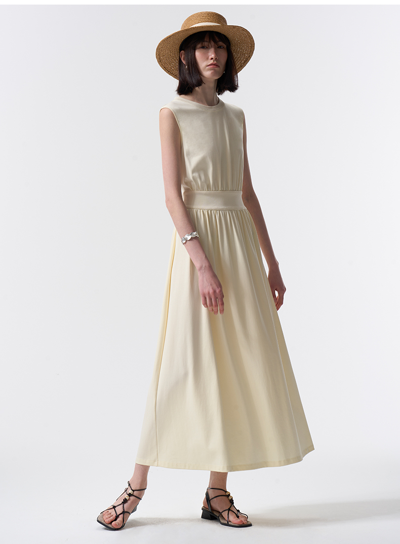 VIMAGE纬漫纪度假风棉质温柔收腰显瘦黄油色连衣裙2026夏季新款V2507209