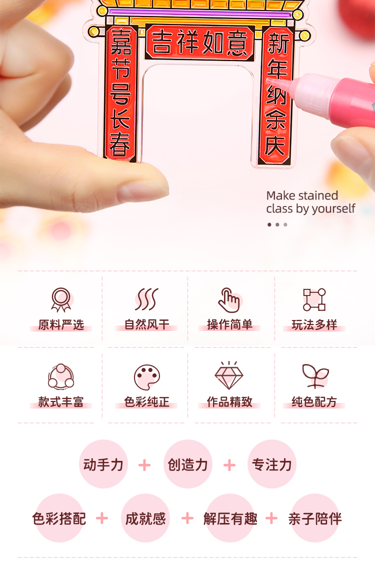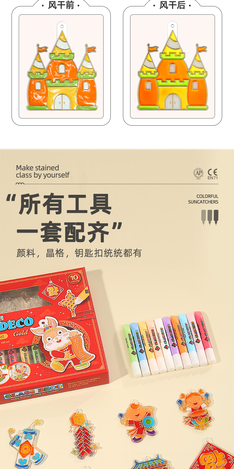 韩国 AMOS玻璃胶 10色*10.5ML + 12款春节挂件(金边)