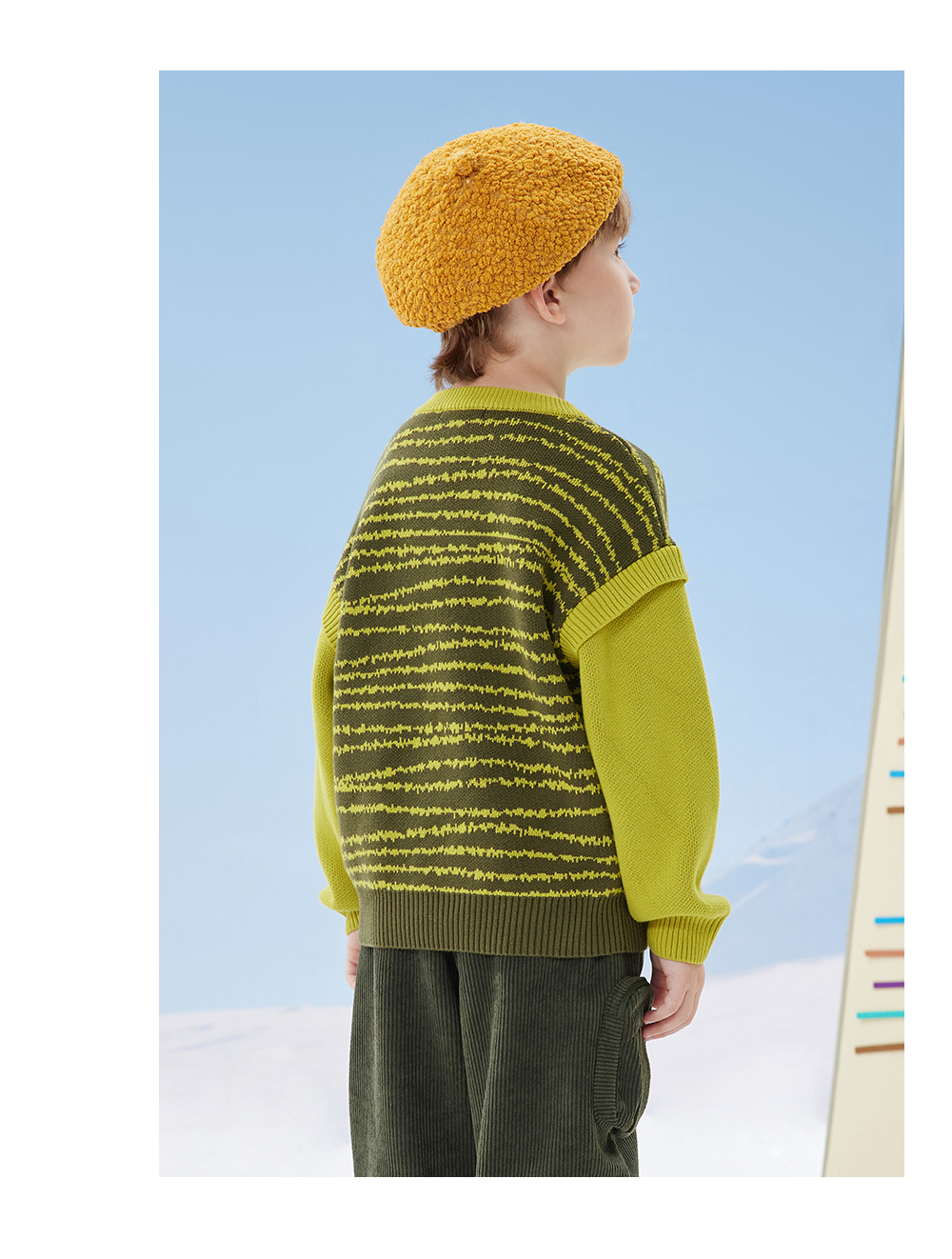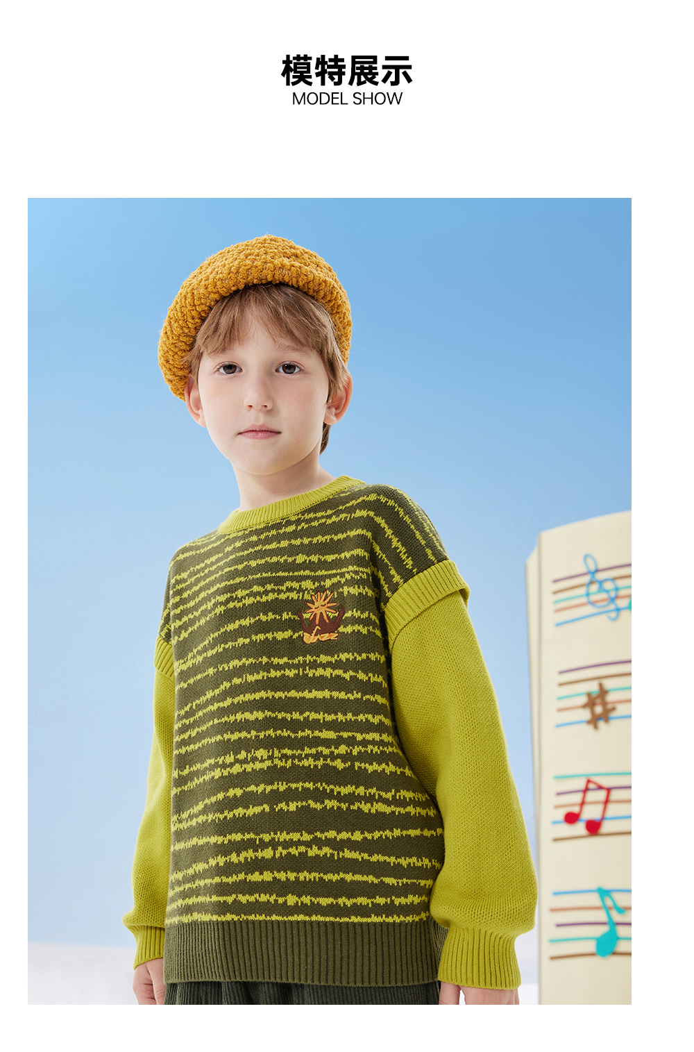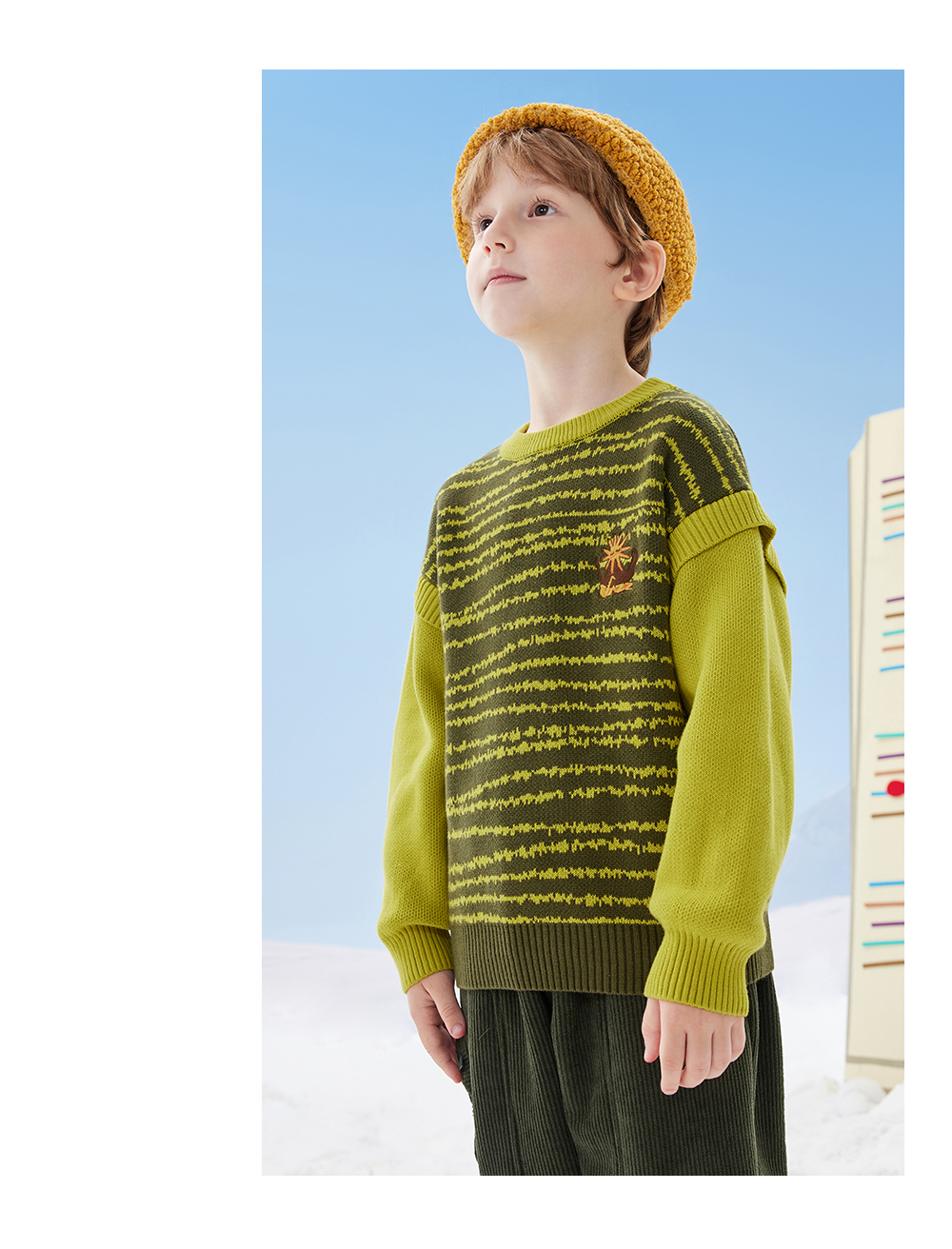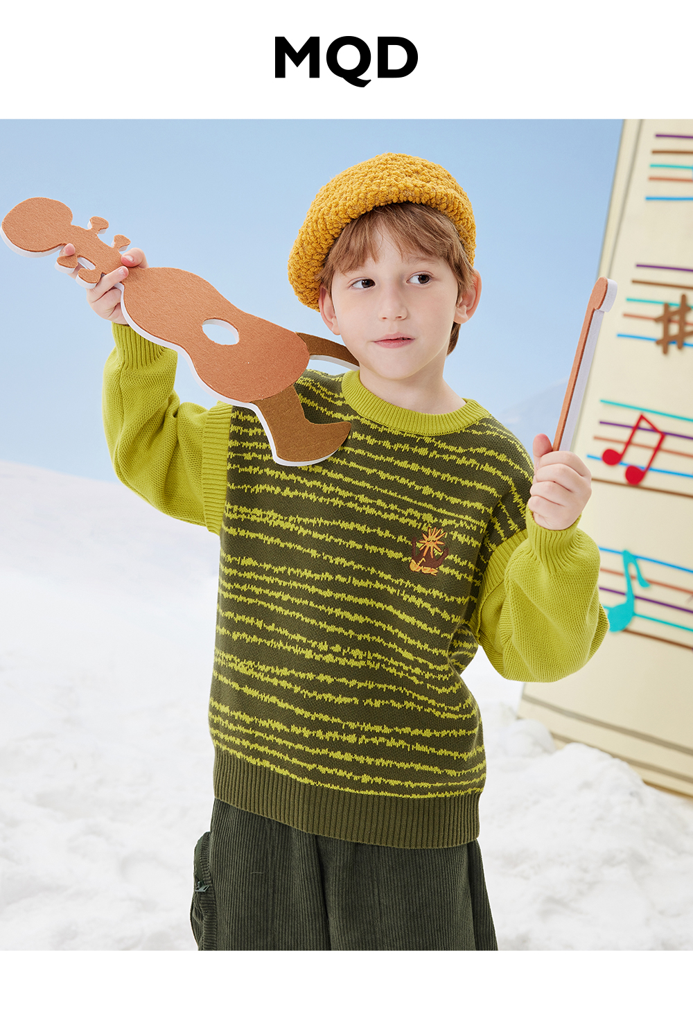 【秒2】【MQD】男童秋冬季清新撞色提花毛衣针织衫