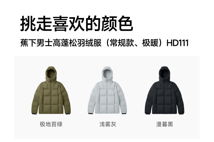 【蕉下精选】蕉下男士高蓬松羽绒服(常规款、极暖)HD11125