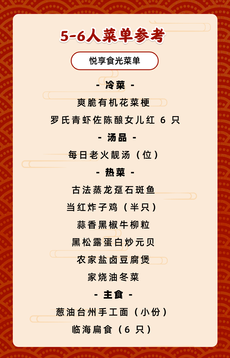 ★ 悦享食光 5-6 人餐用餐地点:酒店 2F 悦餐厅