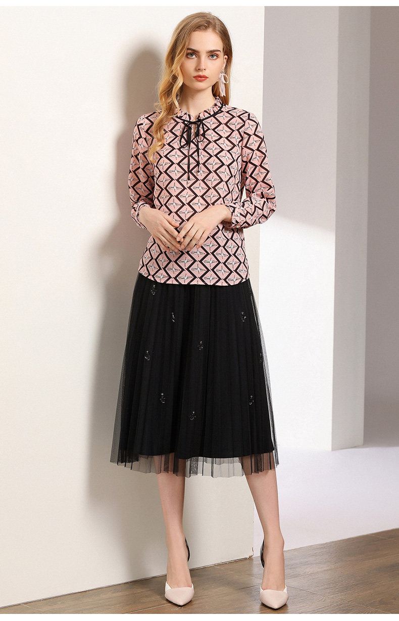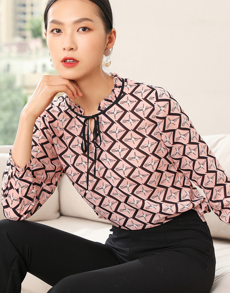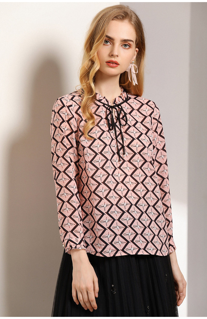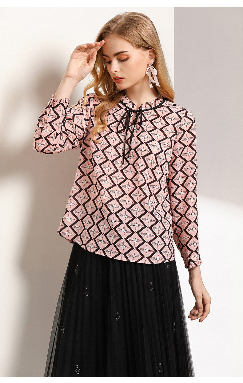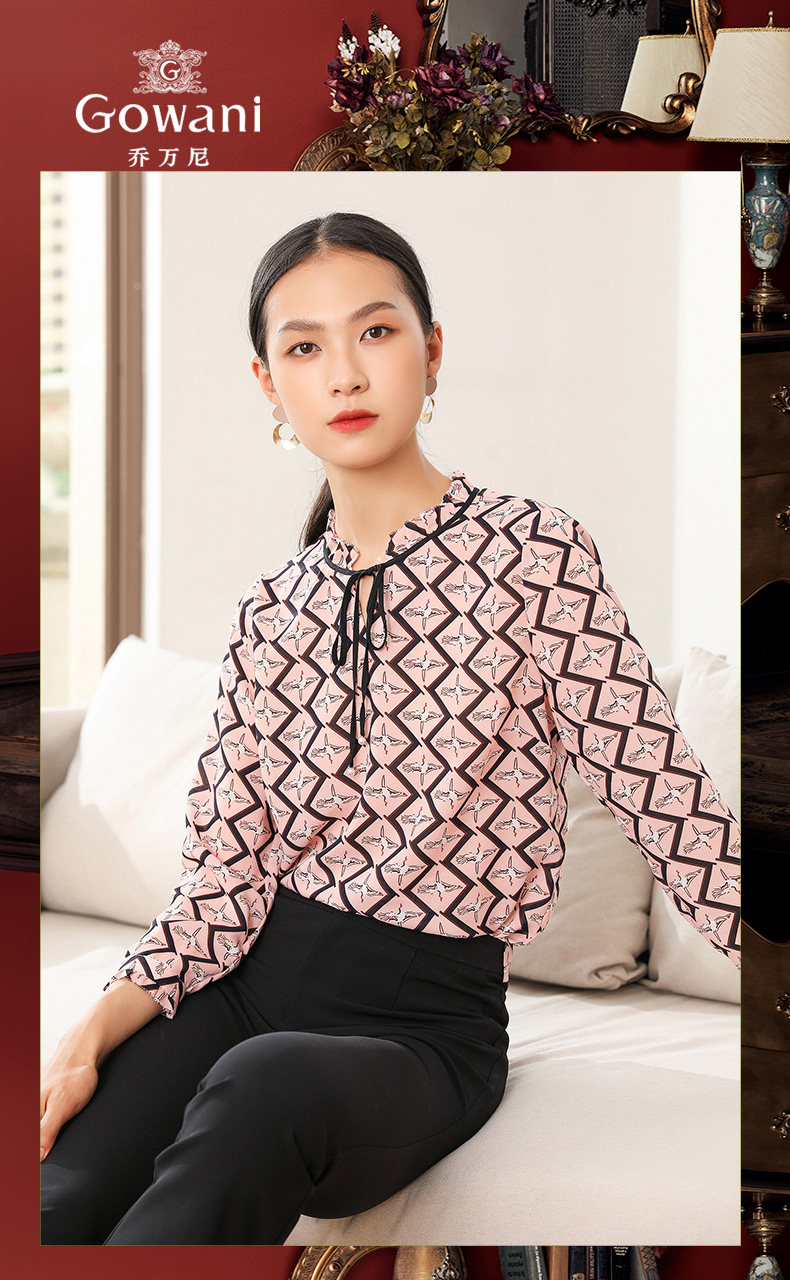乔万尼秋季上衣春洋气小衫宽松直筒气质印花长袖衬衫EN3C379
