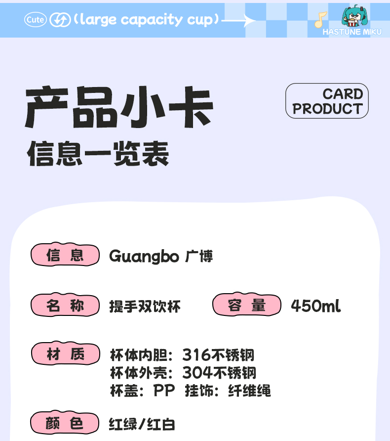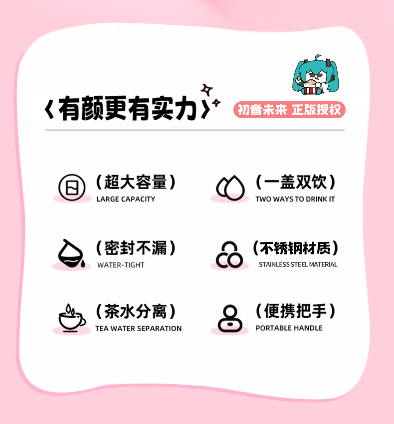 【广博】初音未来可爱风卡通风保温保温杯幼儿园小学生大容量水杯