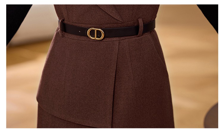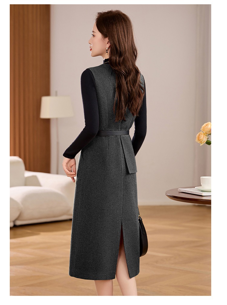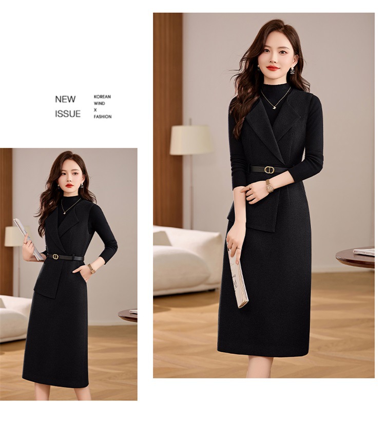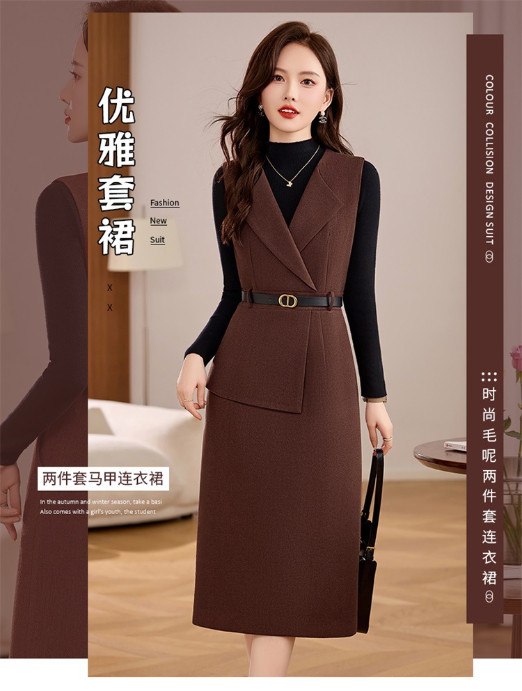 丁摩 毛呢背心两件套连衣裙女冬季气质感洋气显瘦长袖针织套装裙子5ZF-225