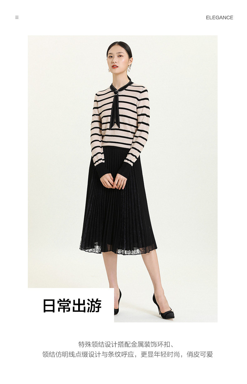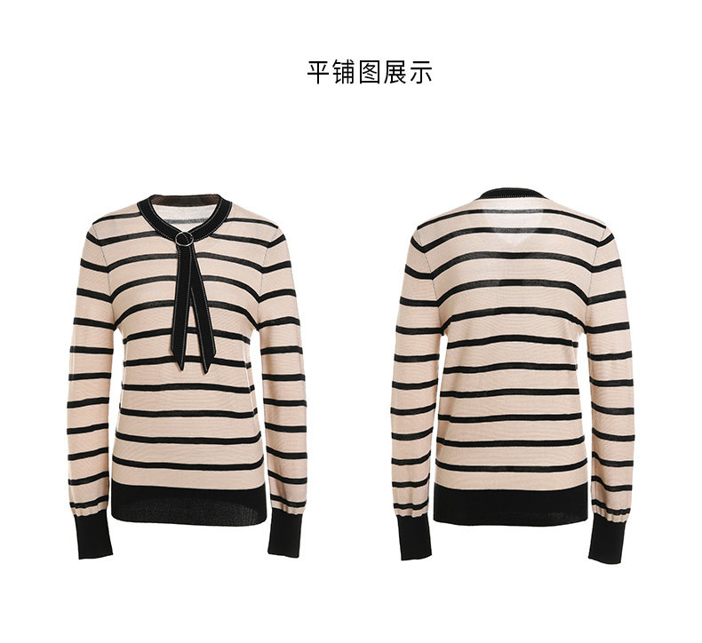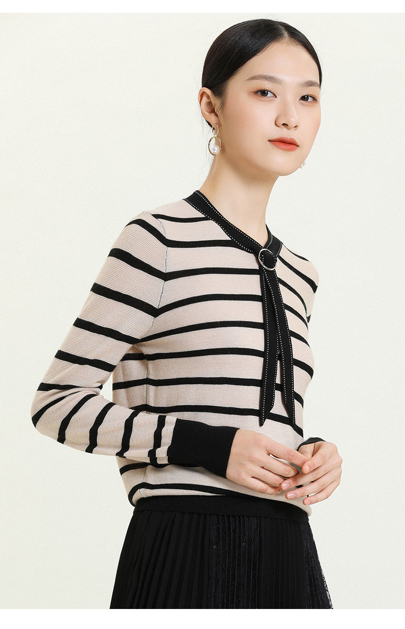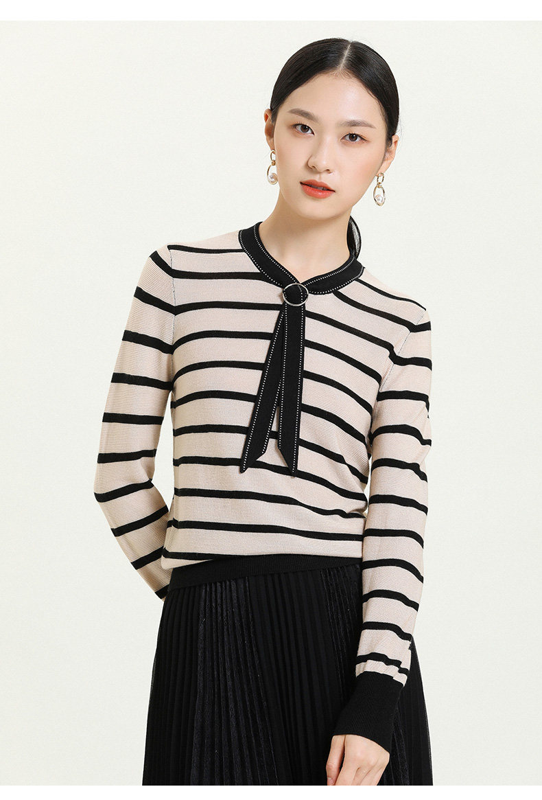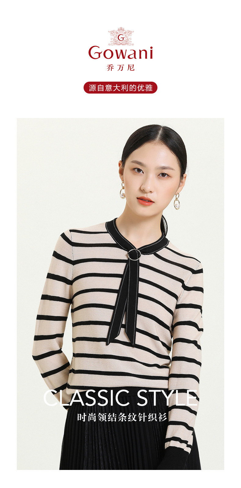 乔万尼新款针织上衣经典条纹领结设计俏皮舒适休闲风羊毛衫ES3M601