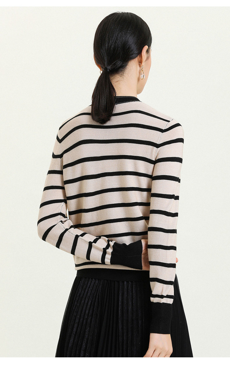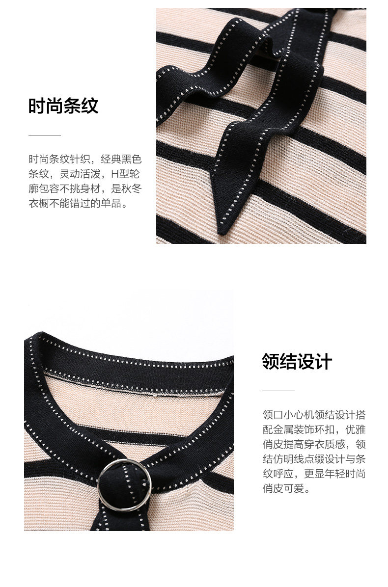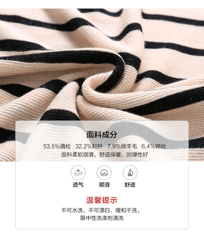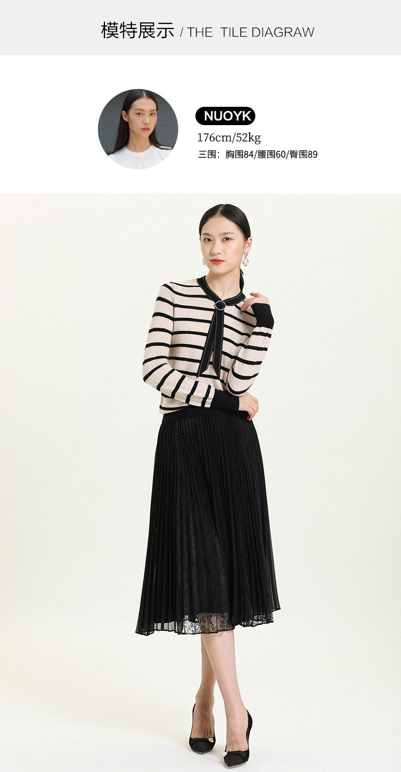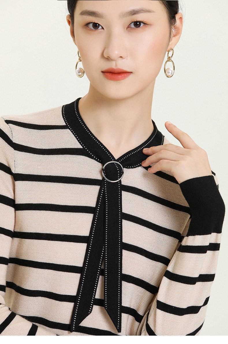 乔万尼新款针织上衣经典条纹领结设计俏皮舒适休闲风羊毛衫ES3M601