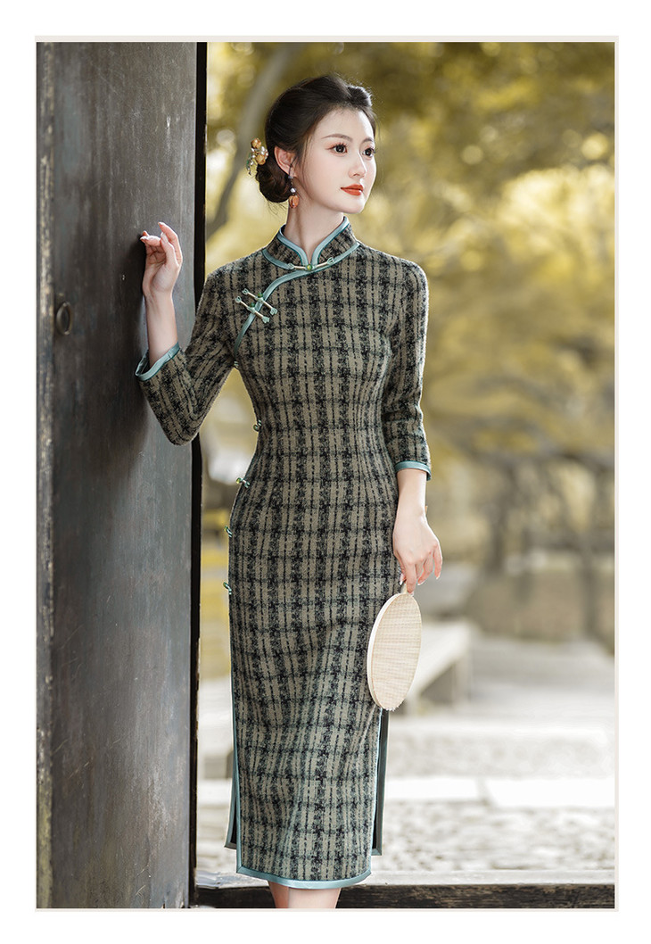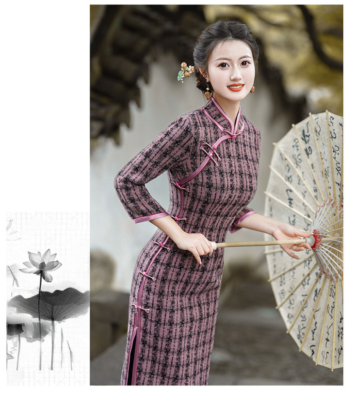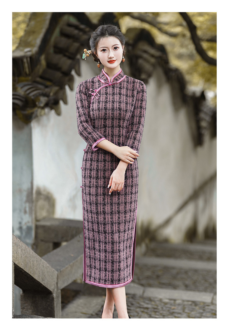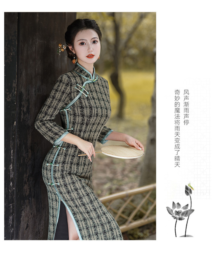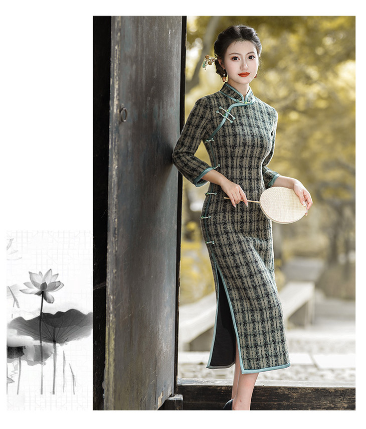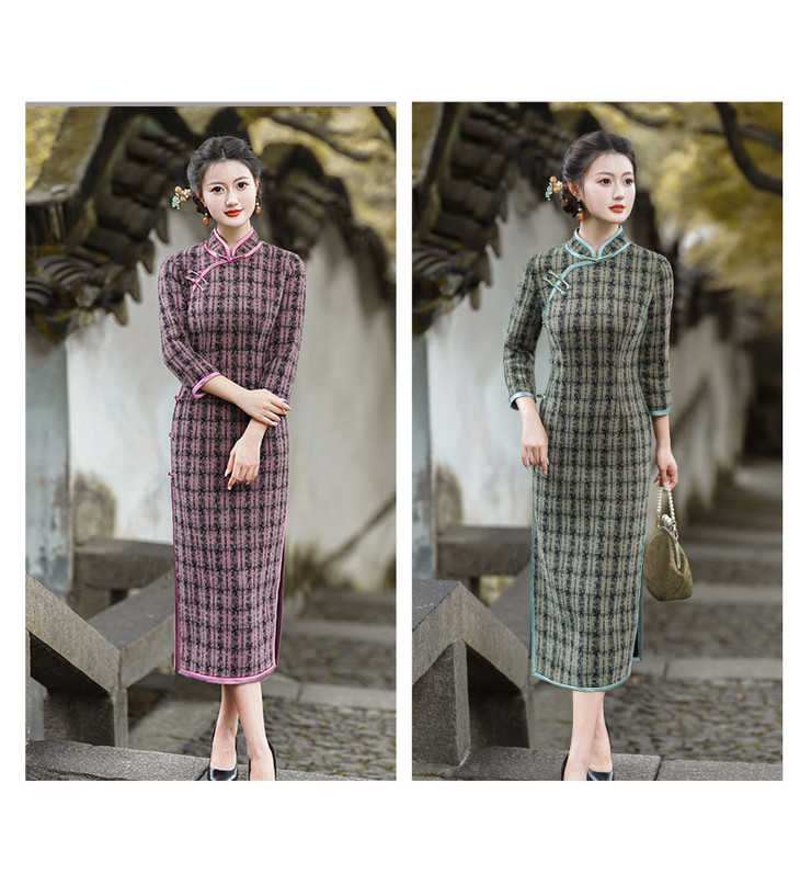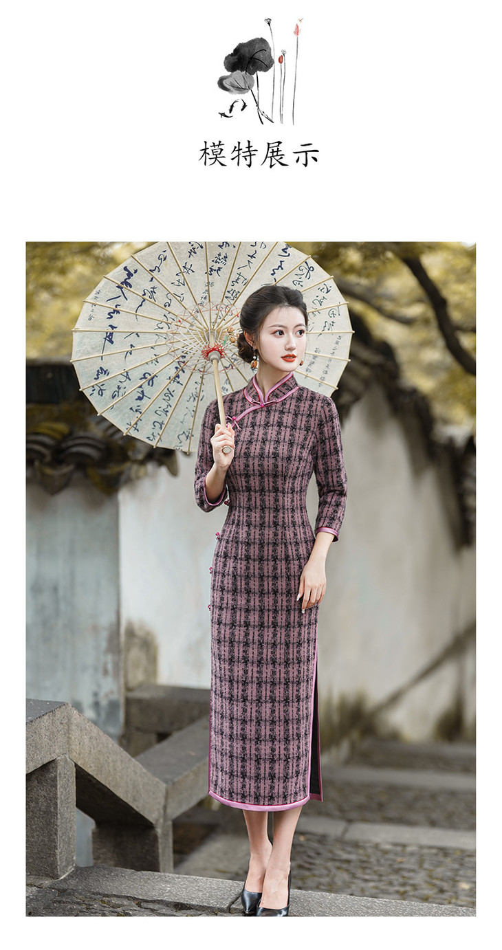 冬季新款,复古奢华优雅气质长袖传统款旗袍GSJ-3515