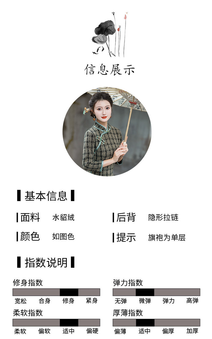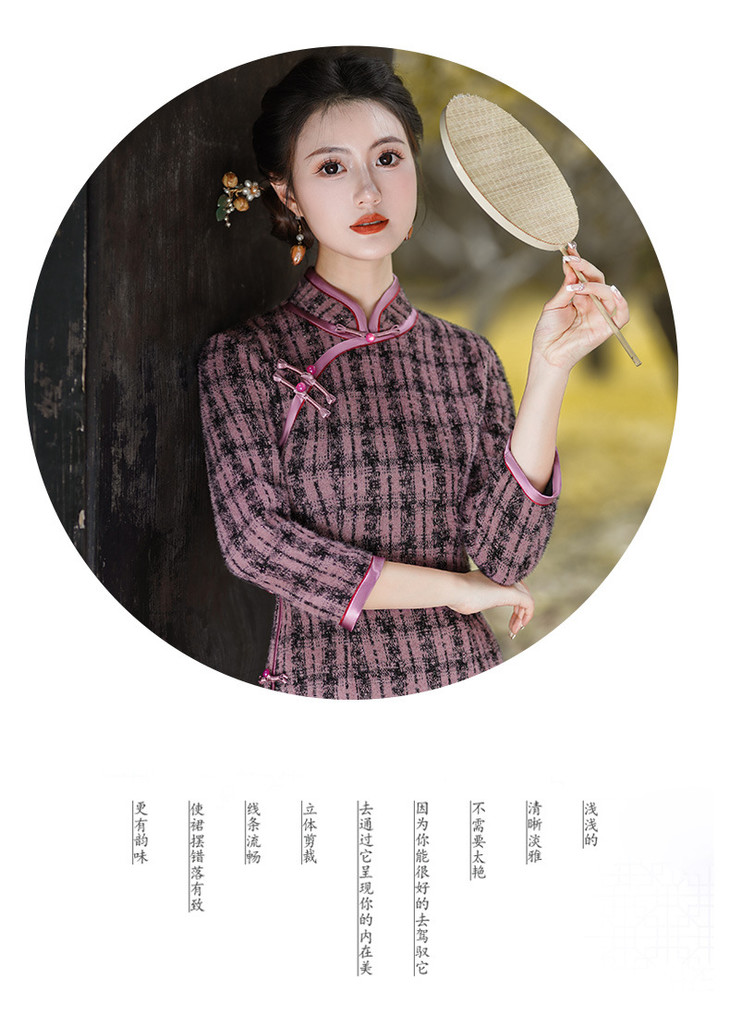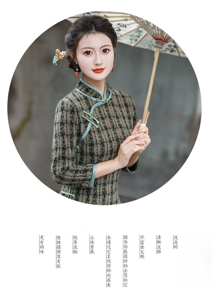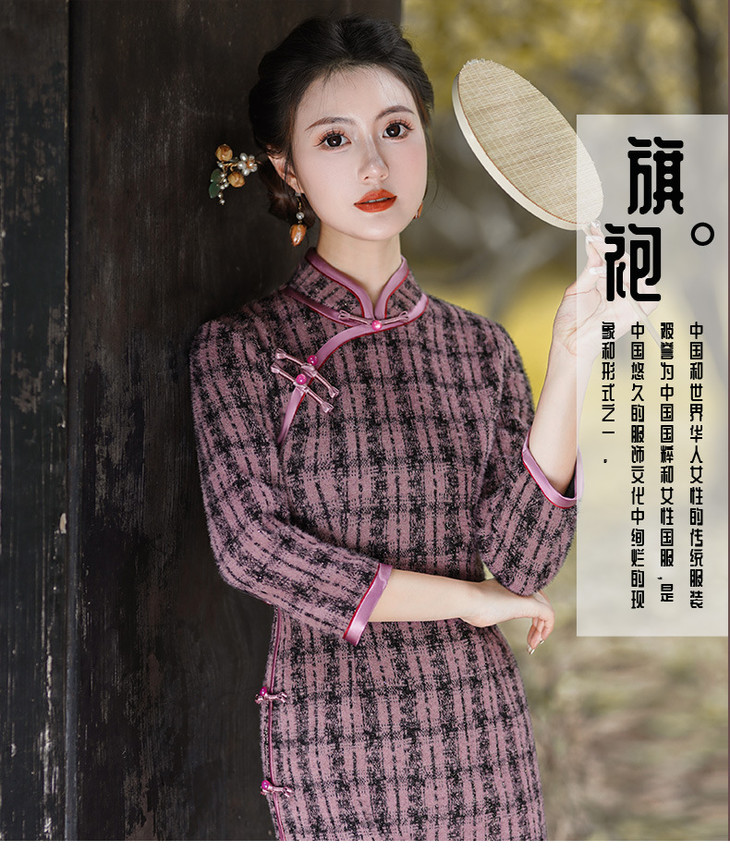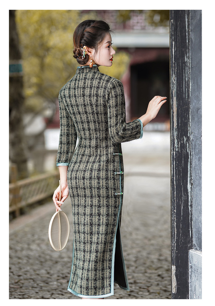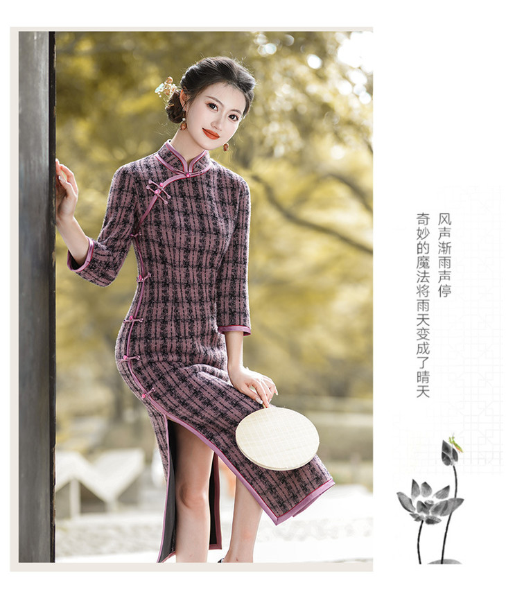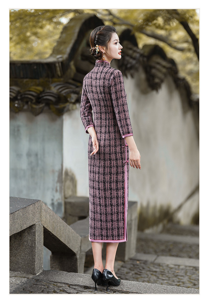 冬季新款,复古奢华优雅气质长袖传统款旗袍GSJ-3515