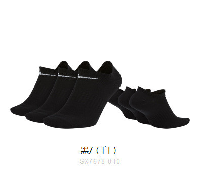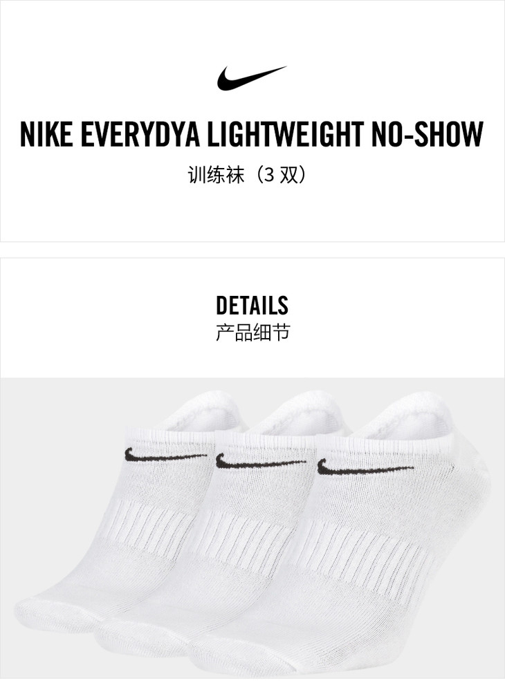 【139元2件】耐克NIKE EVERYDAY LIGHTWEIGHT NO-SHOW训练袜3双SX7678-010