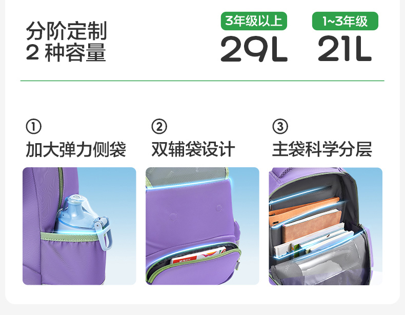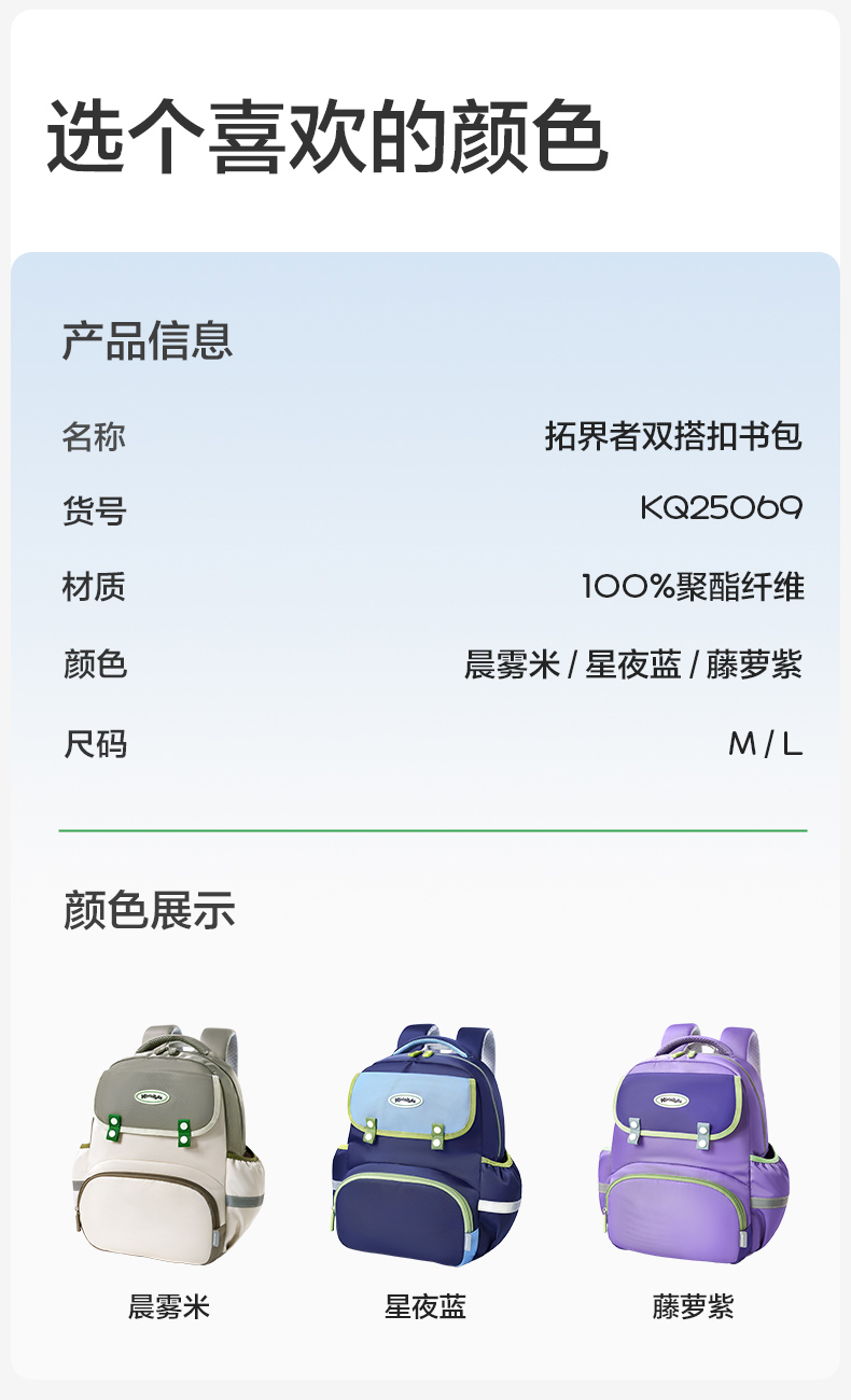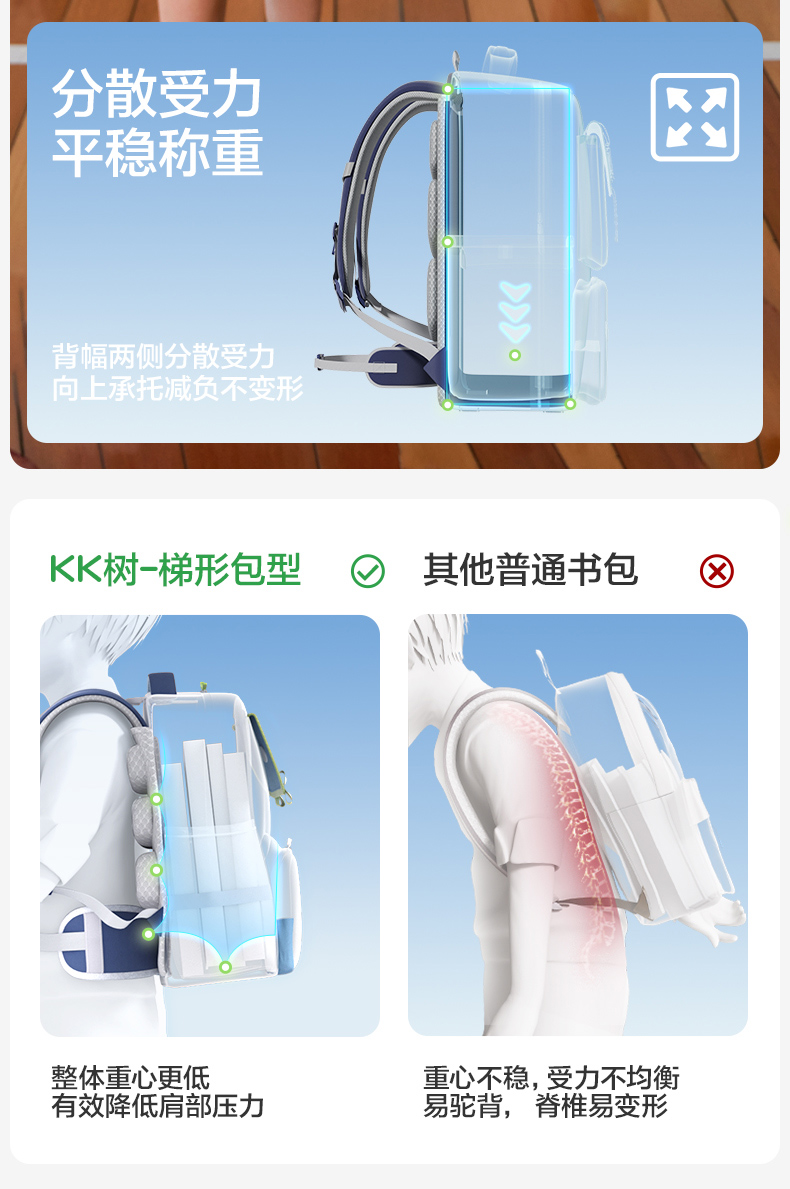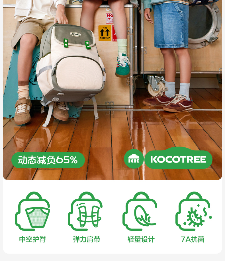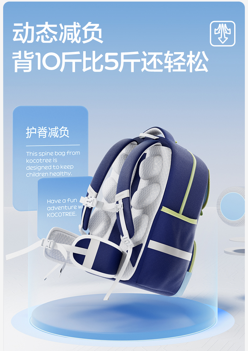 KK树儿童书包 小学生一到六年级轻便减负护脊双肩大容量背包拓界者双搭扣书包
