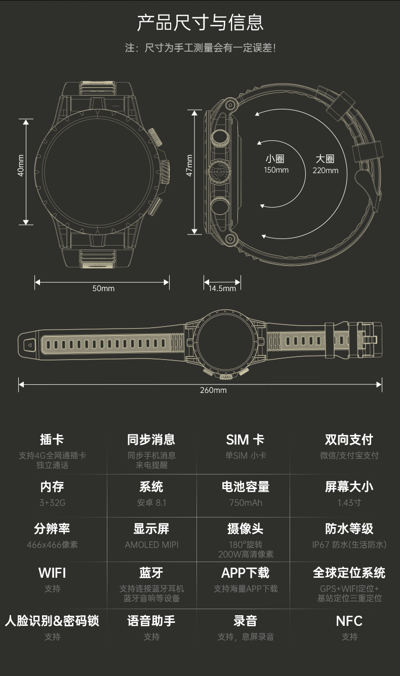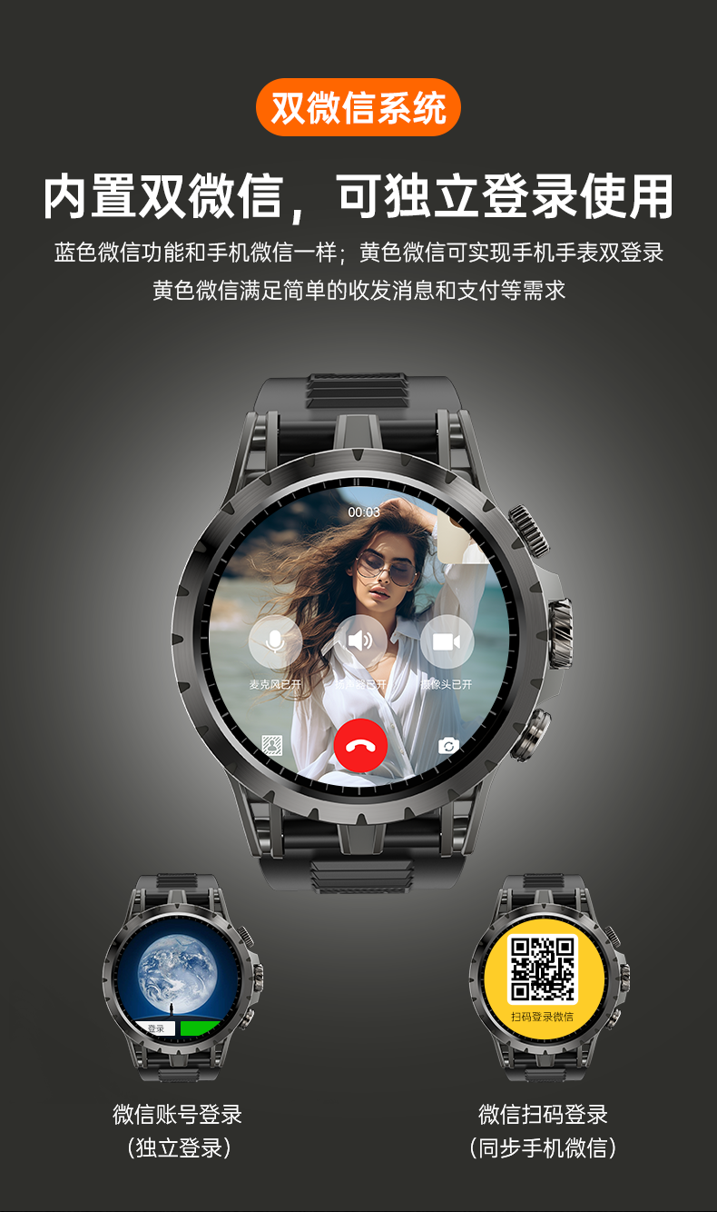 【支持多重定位 180°旋转高清摄像头 IP67生活防水】奇越QIYEAH/4G全网通插卡电话手表 Q36 ds(qy)