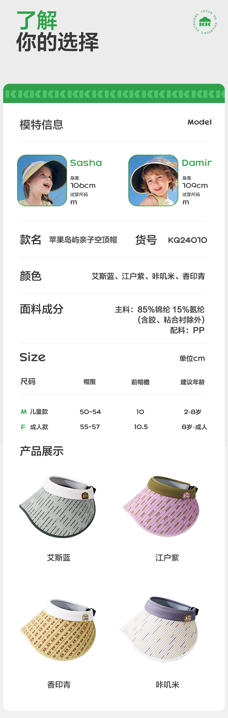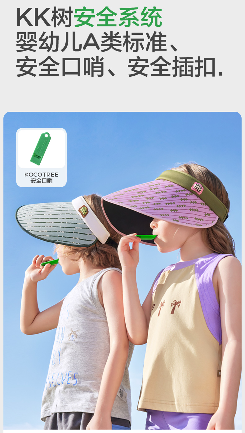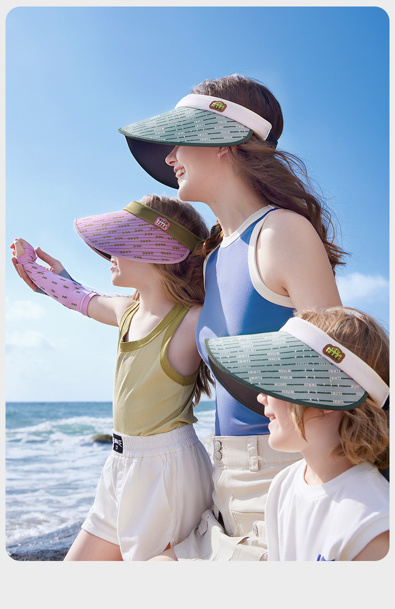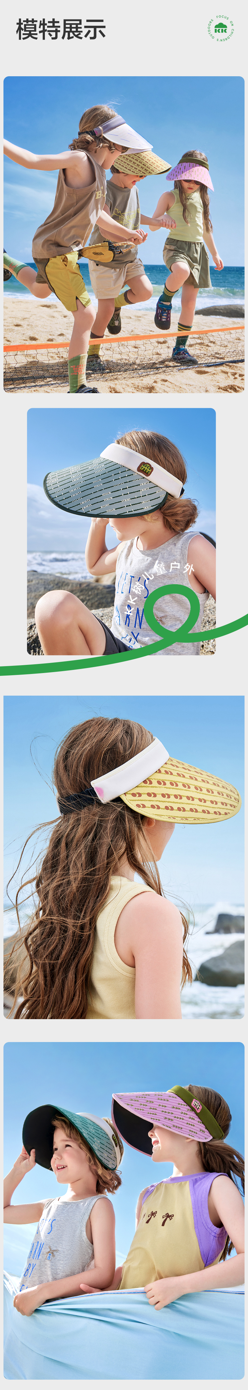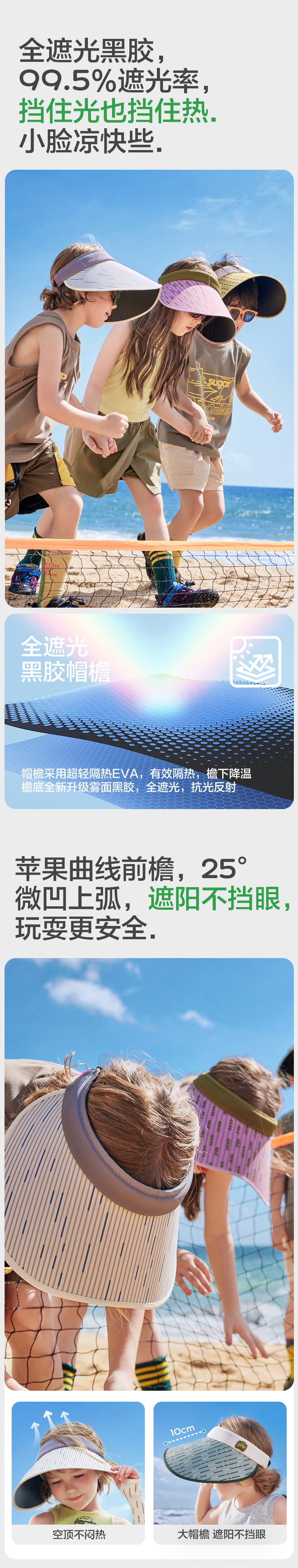 KK树儿童防晒帽防紫外线男童女孩空顶太阳帽大帽檐宝宝黑胶遮阳帽苹果岛屿亲子空顶帽
