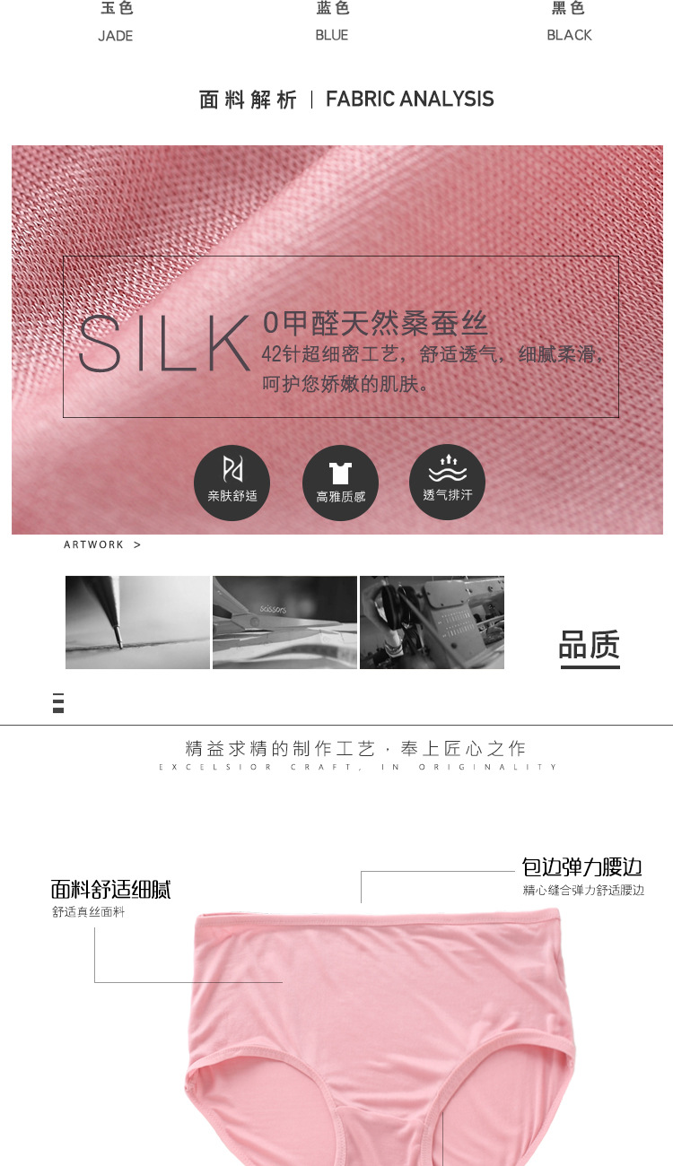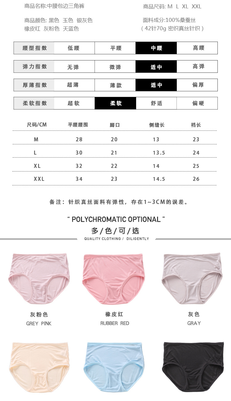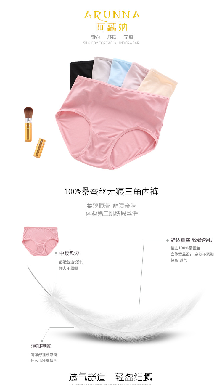 ARN-K028桑蚕丝中腰款女士三角裤全真丝细针织42针面料简约款女裤内裤