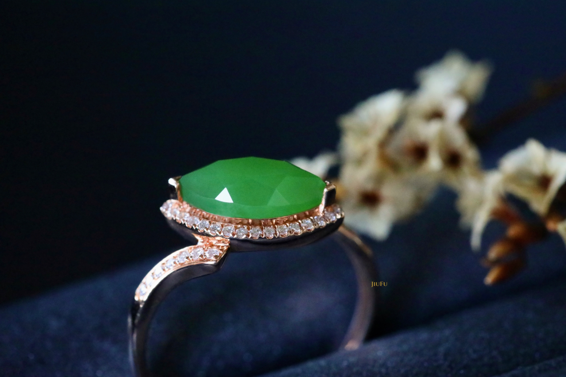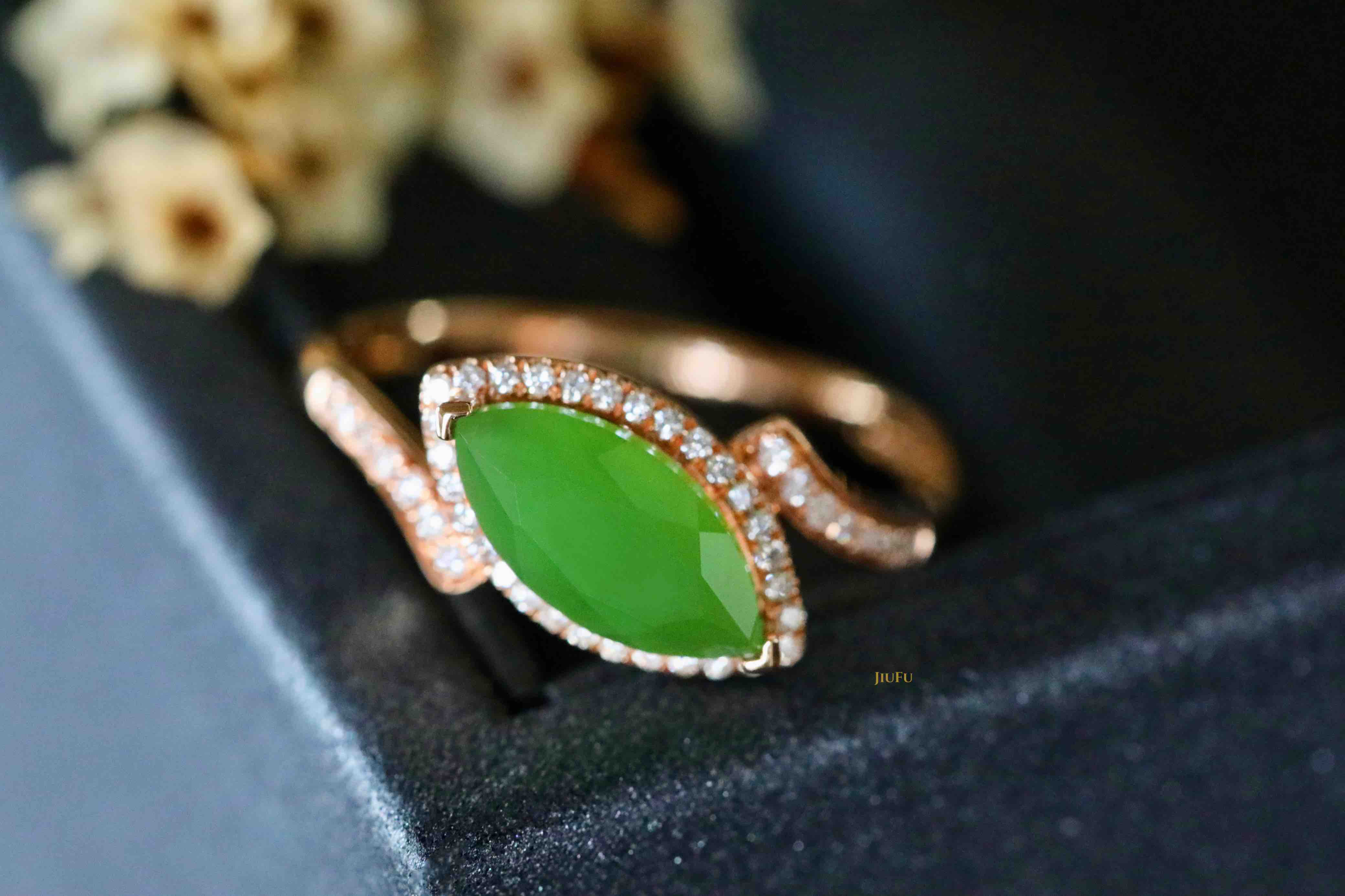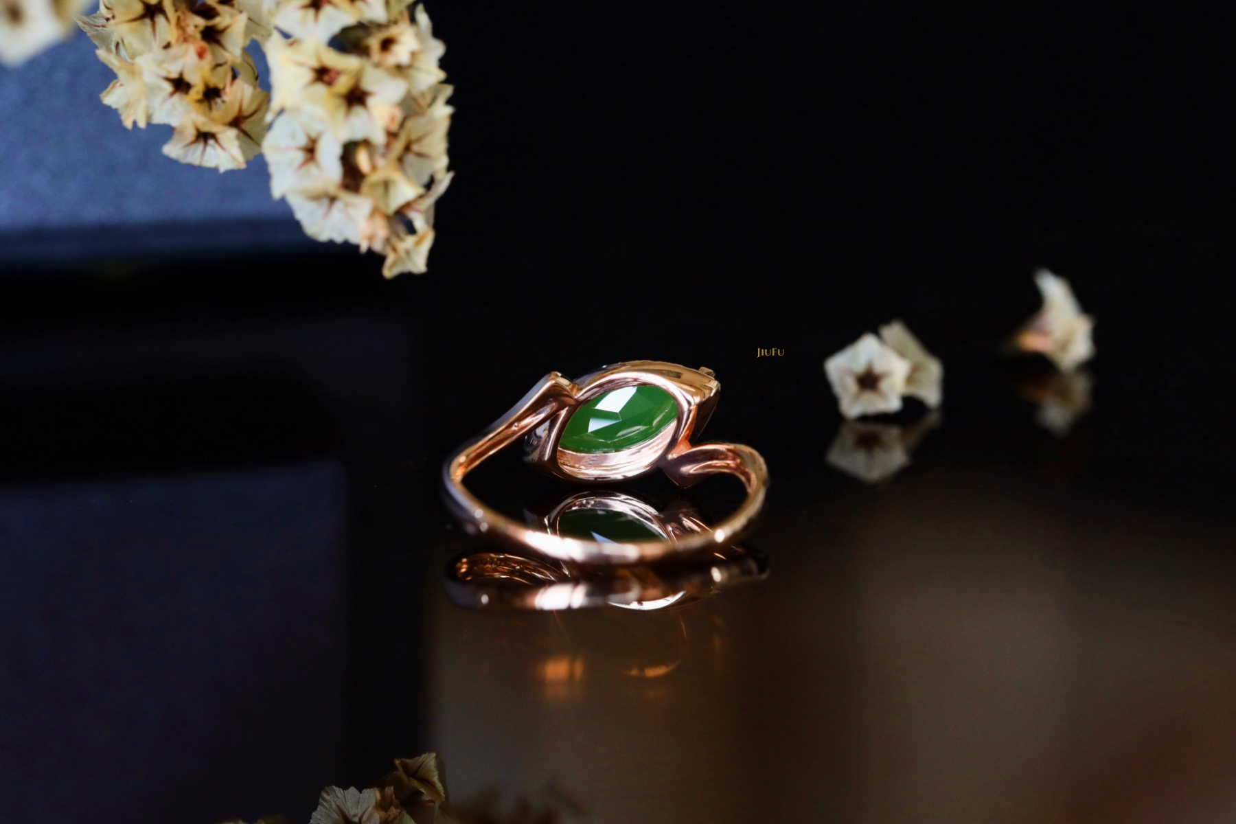 18K玫瑰金和田玉(碧玉)戒指
