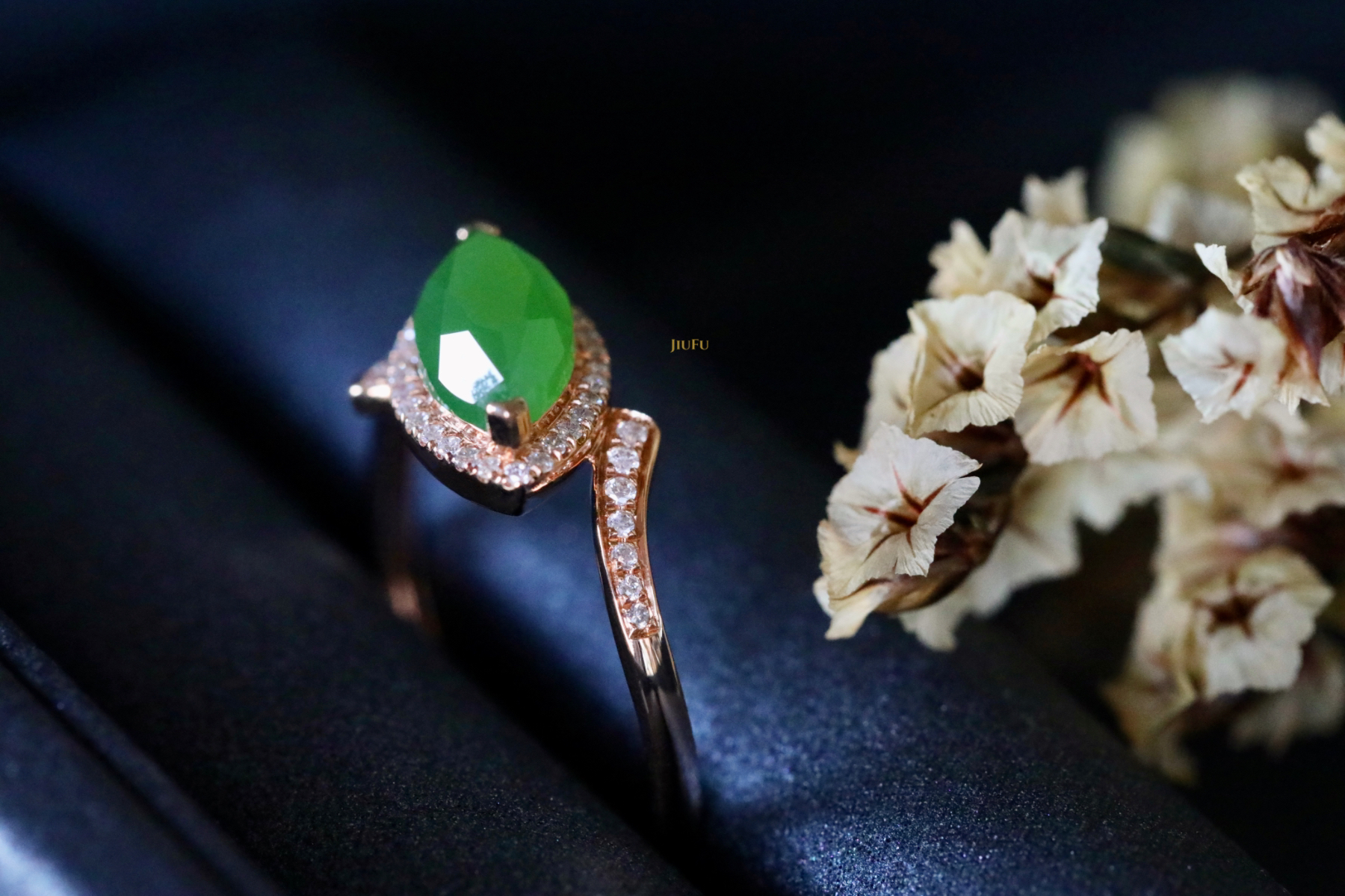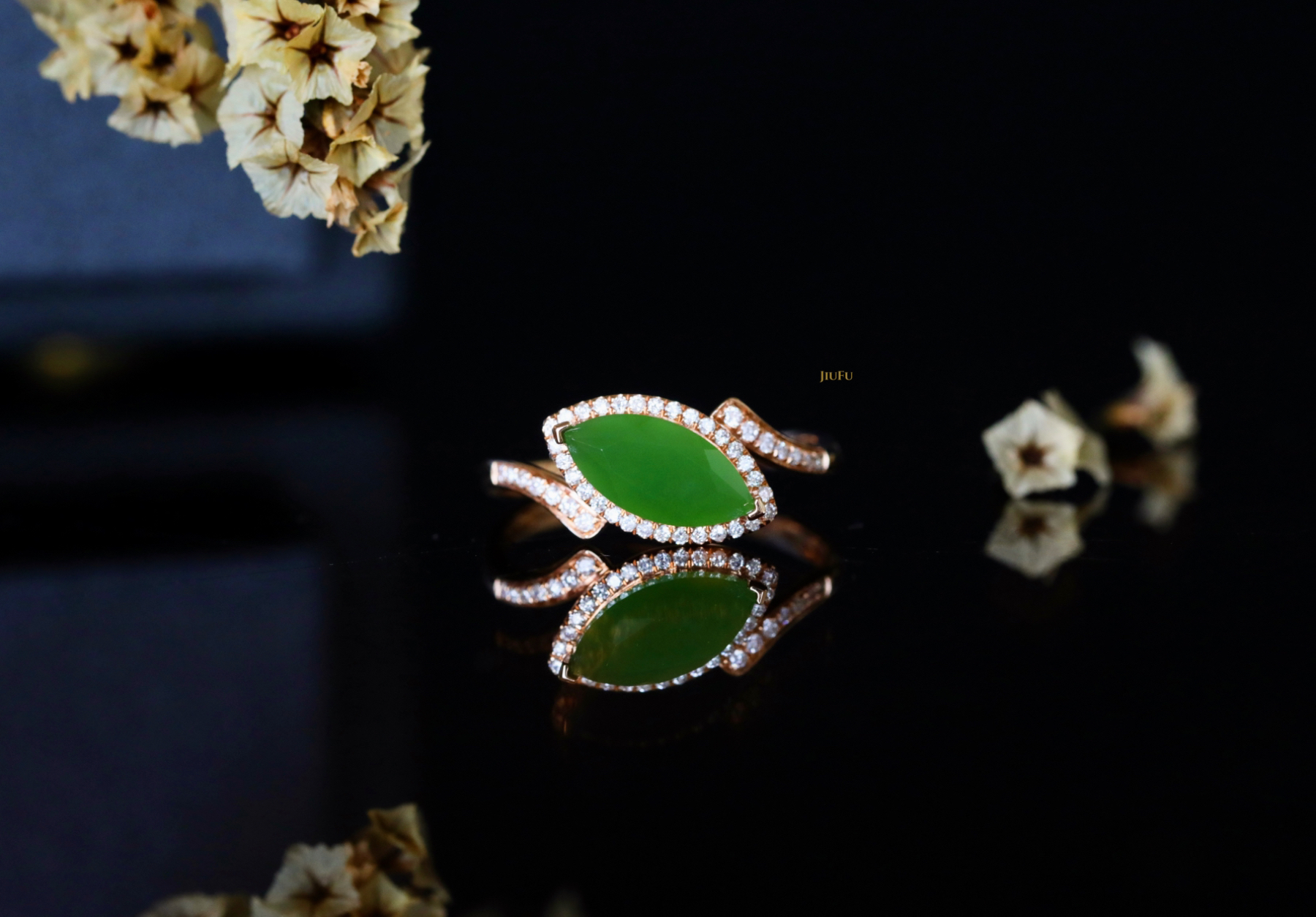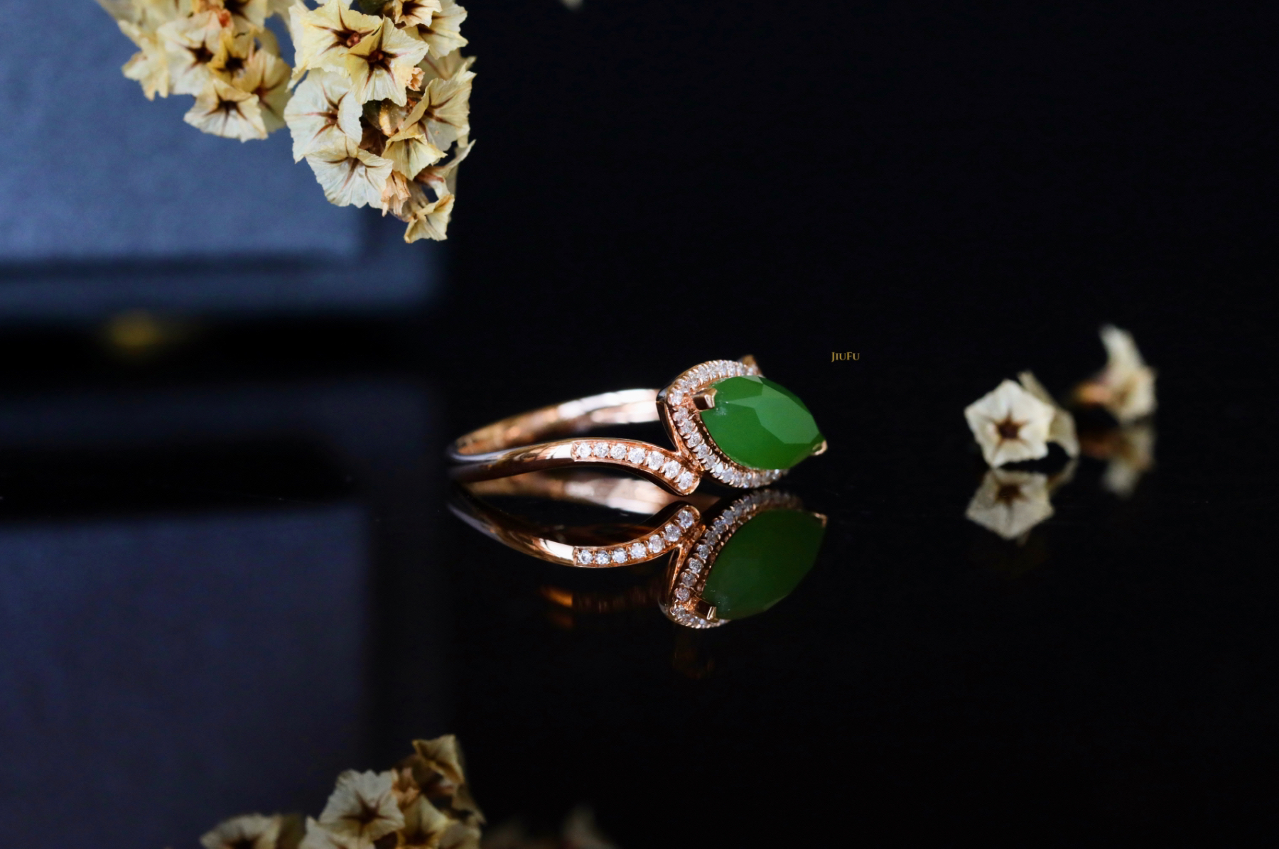18K玫瑰金和田玉(碧玉)戒指