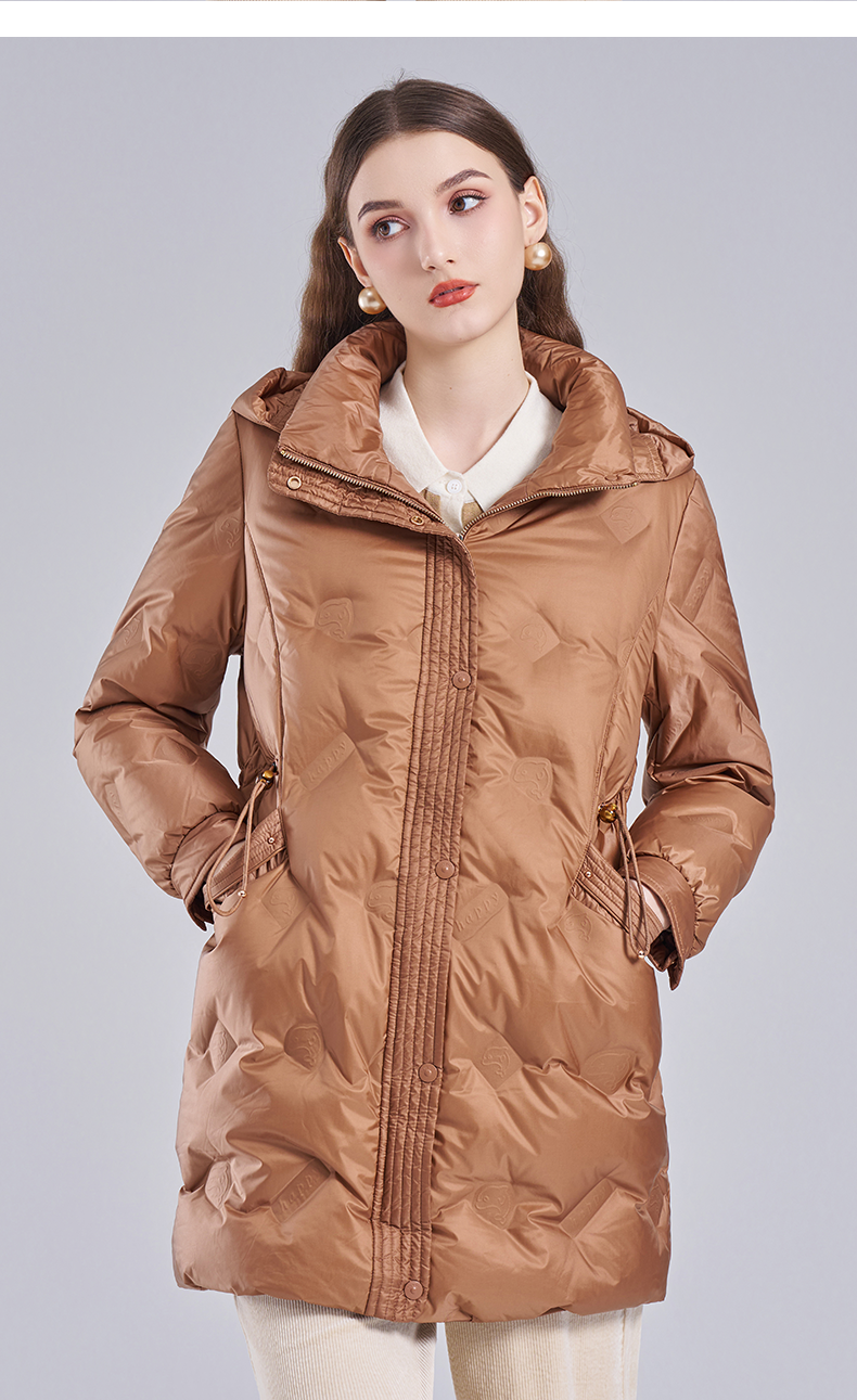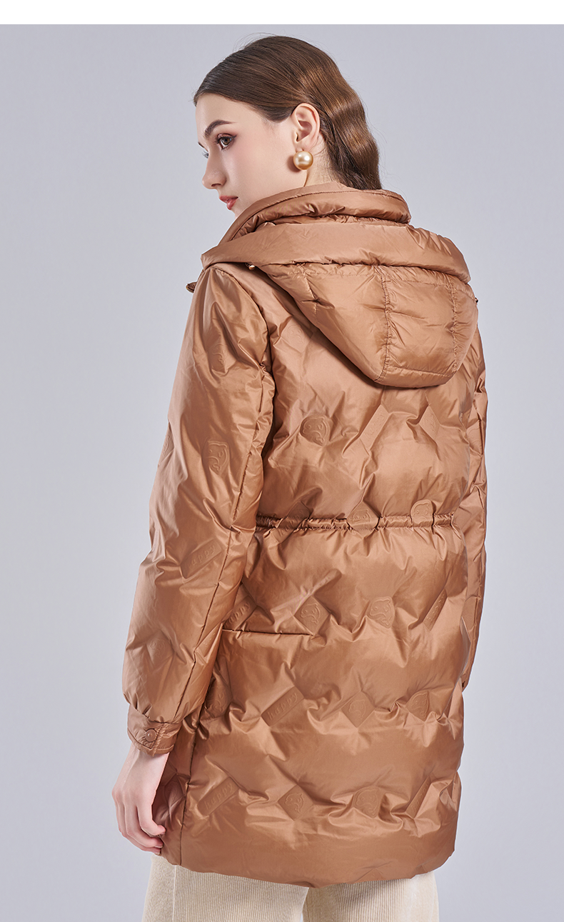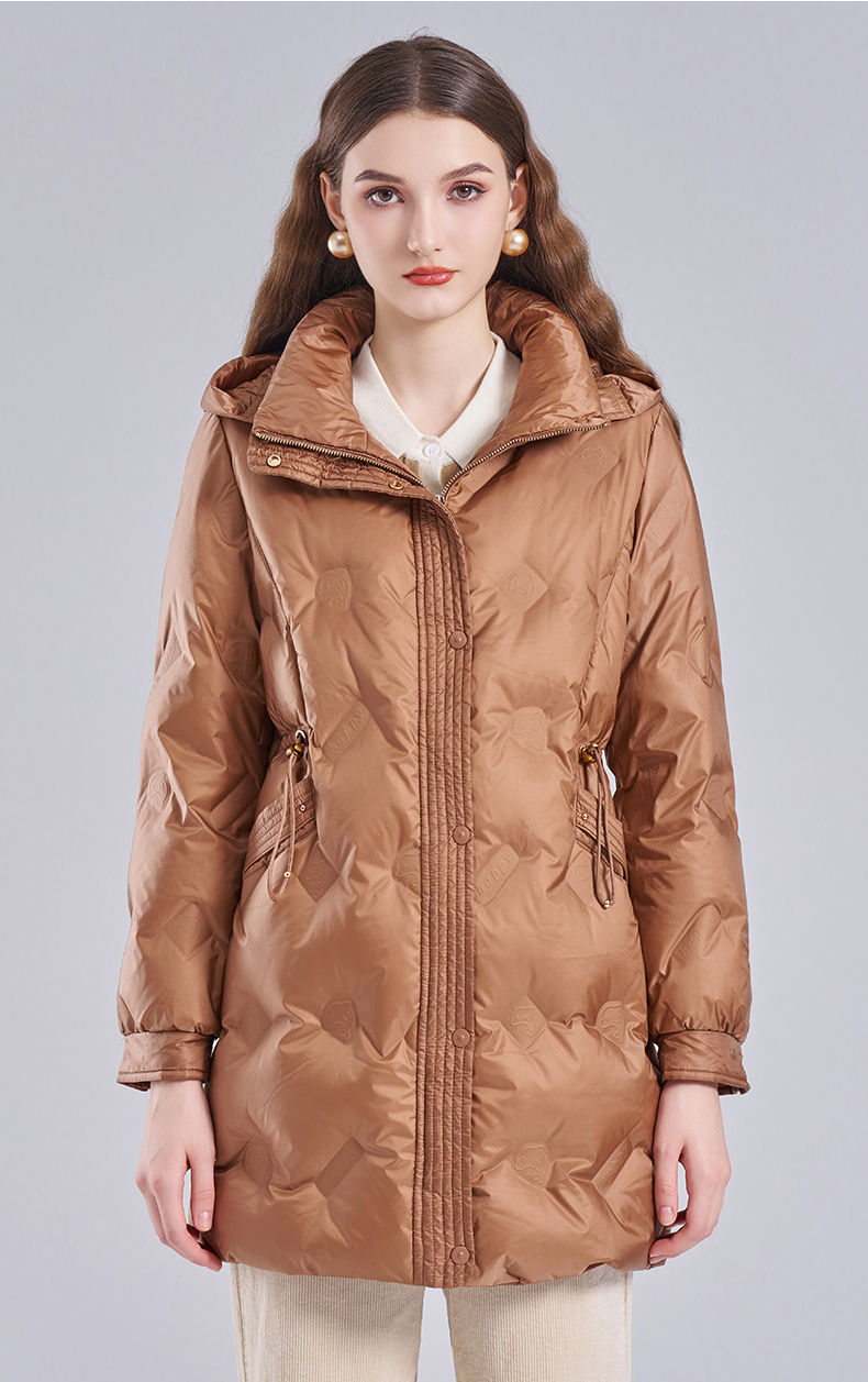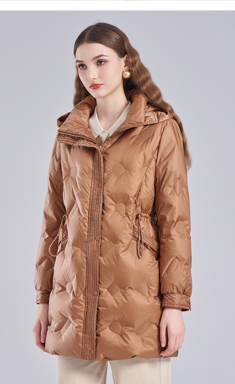 乔万尼新款压花收腰设计休闲连帽保暖高蓬羽绒服ET4T980