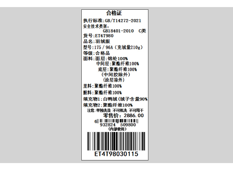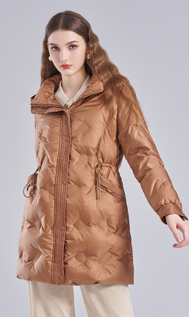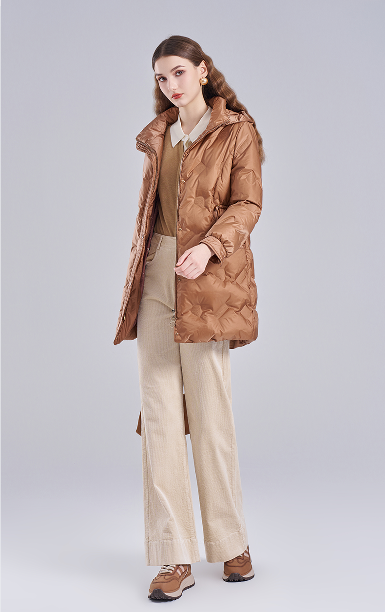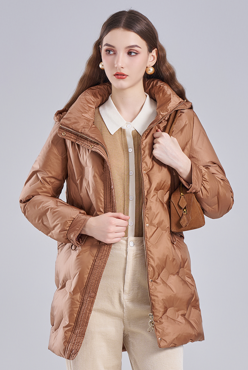乔万尼新款压花收腰设计休闲连帽保暖高蓬羽绒服ET4T980