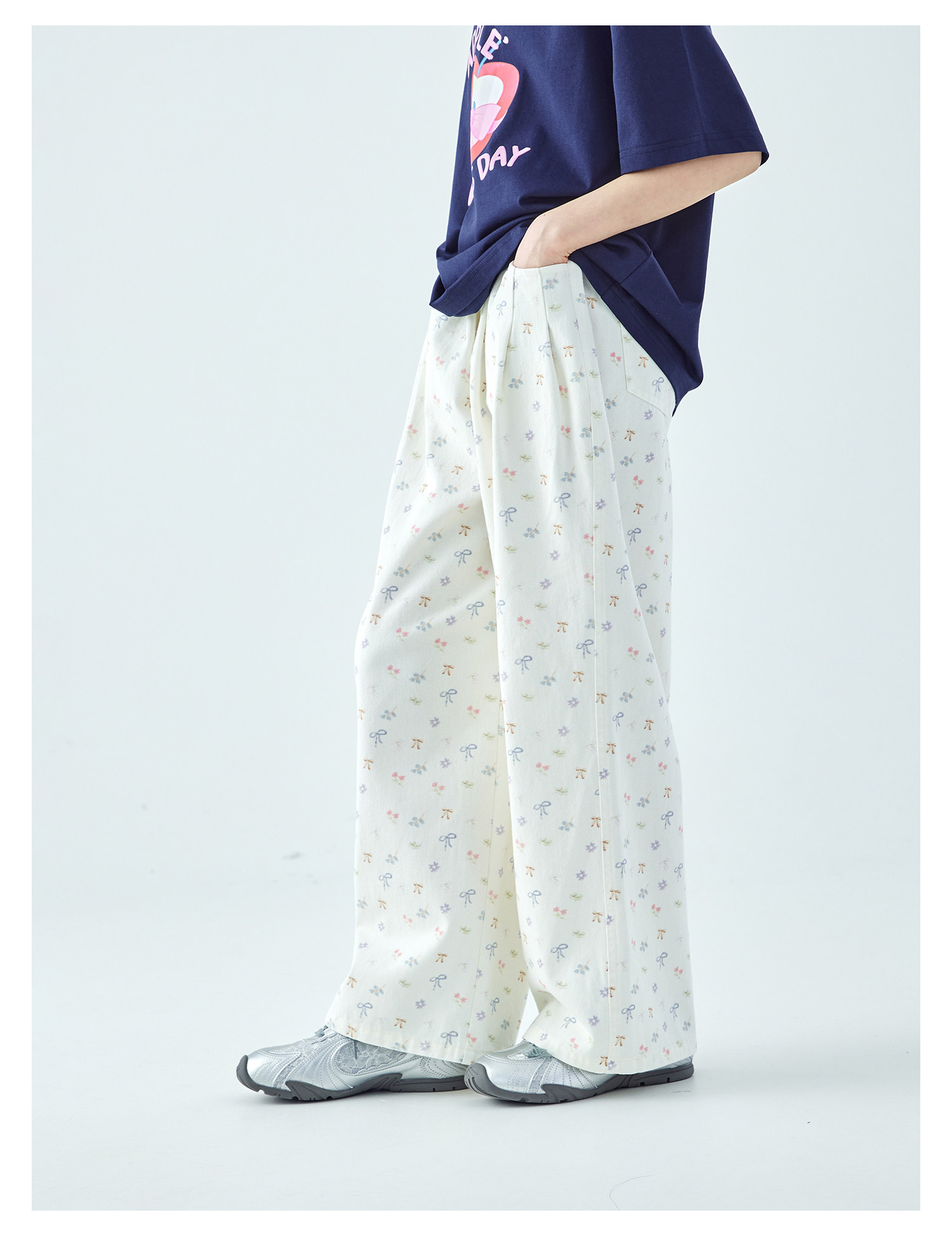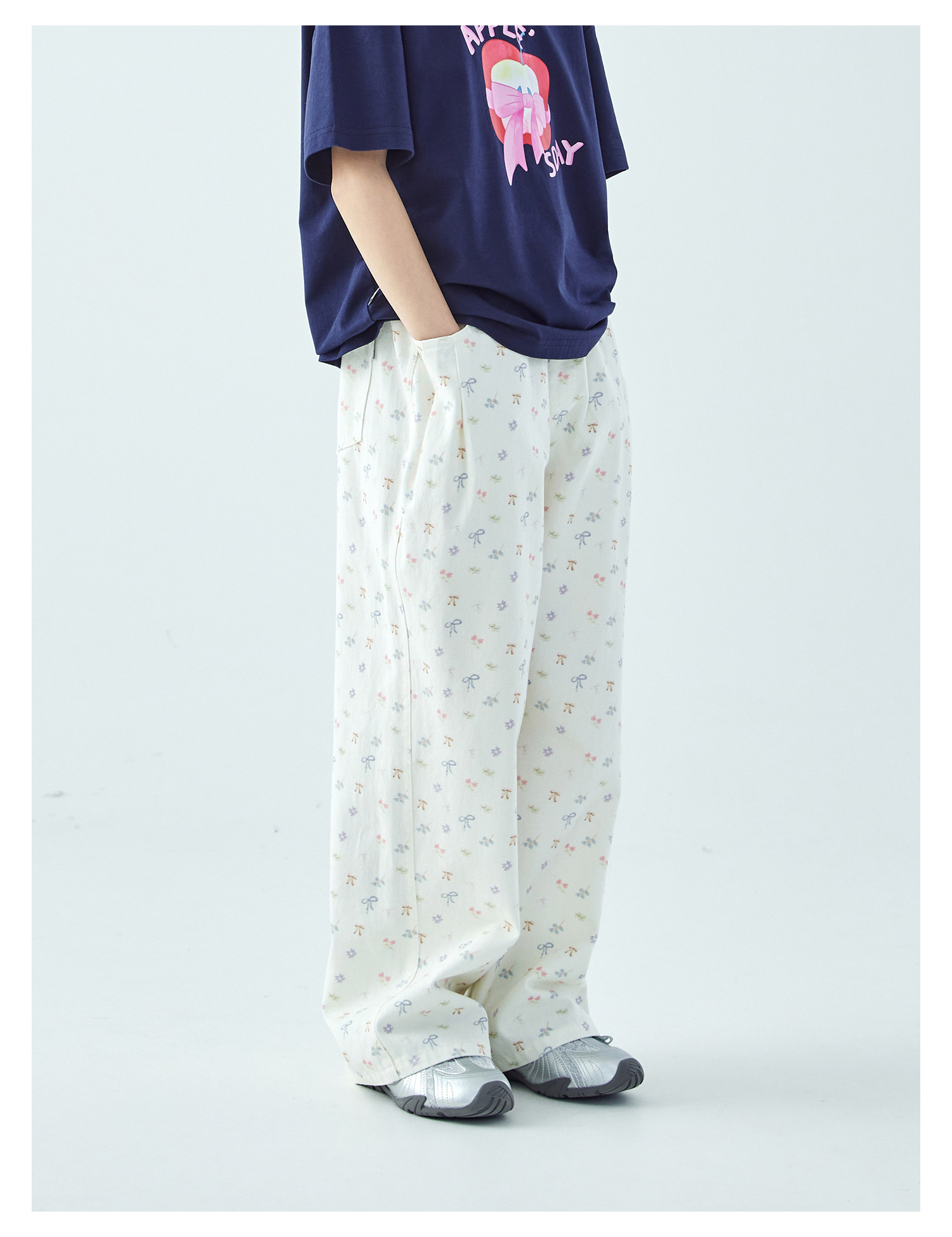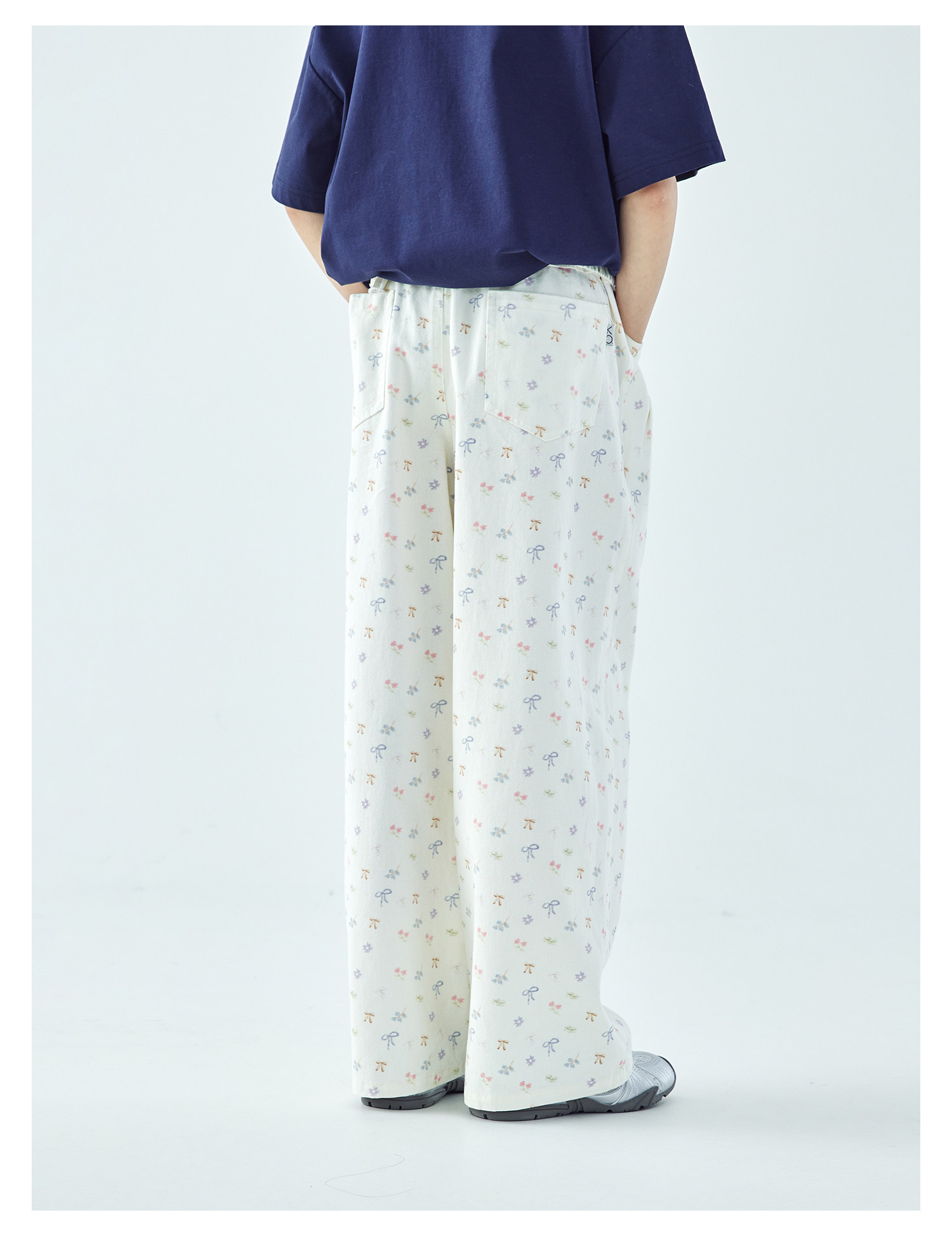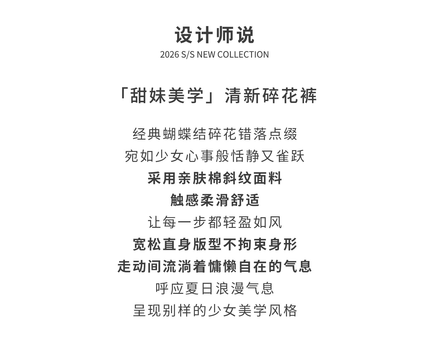 棵初2026年夏季新款亲子中大女童经典蝴蝶结碎花裤亲肤宽松休闲裤