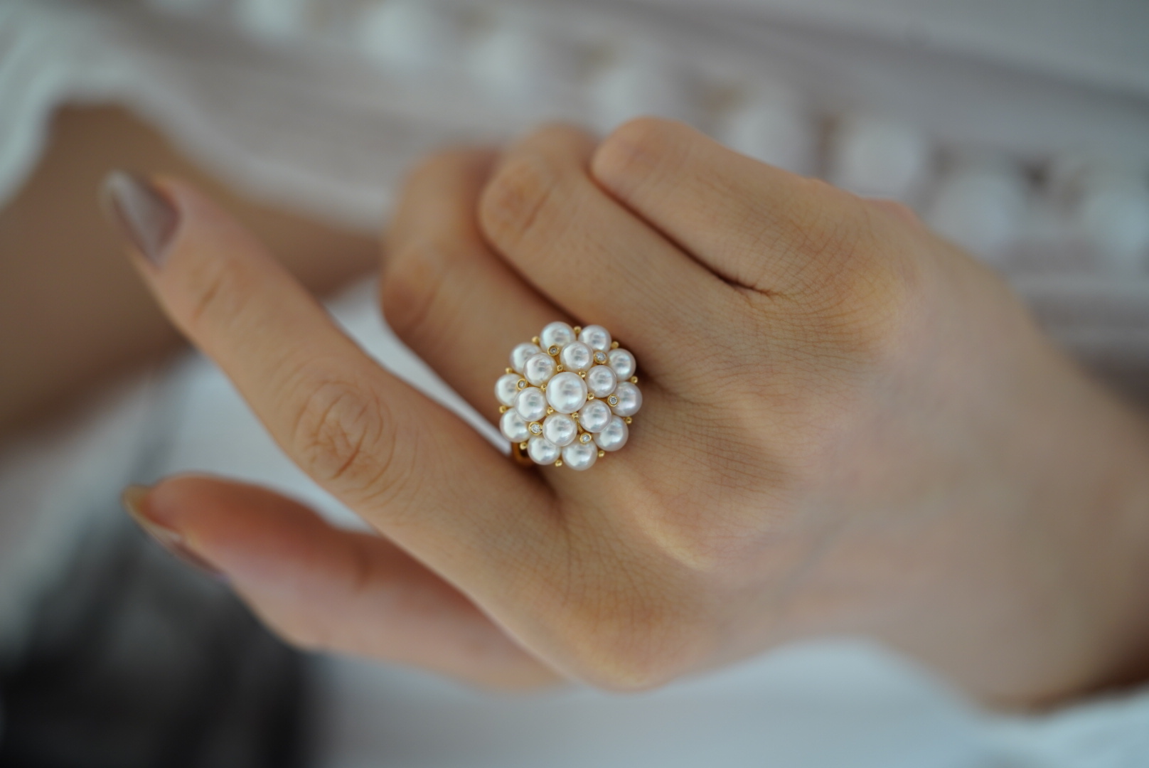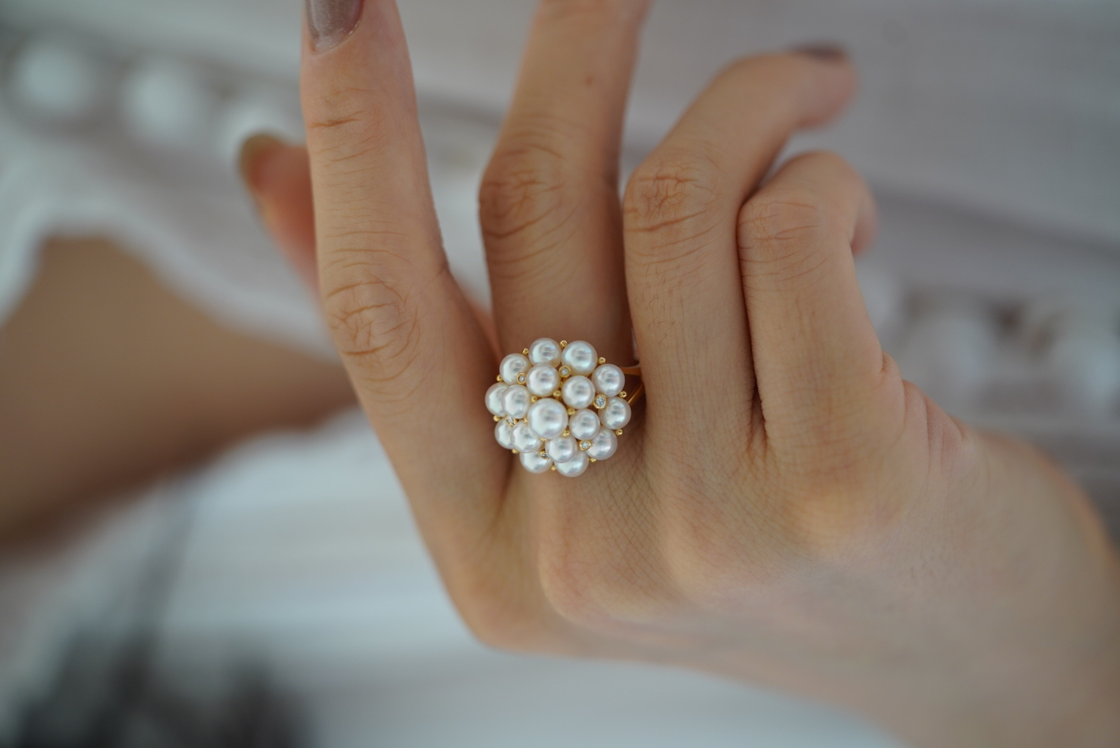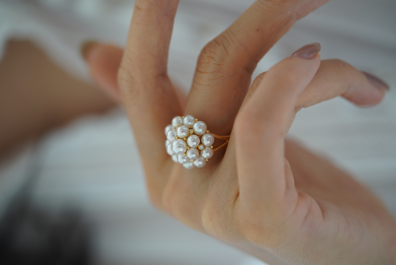 Akoya多珠戒指天花板彩凛珠&白月光 配18K钻石绣球款9399🉐️