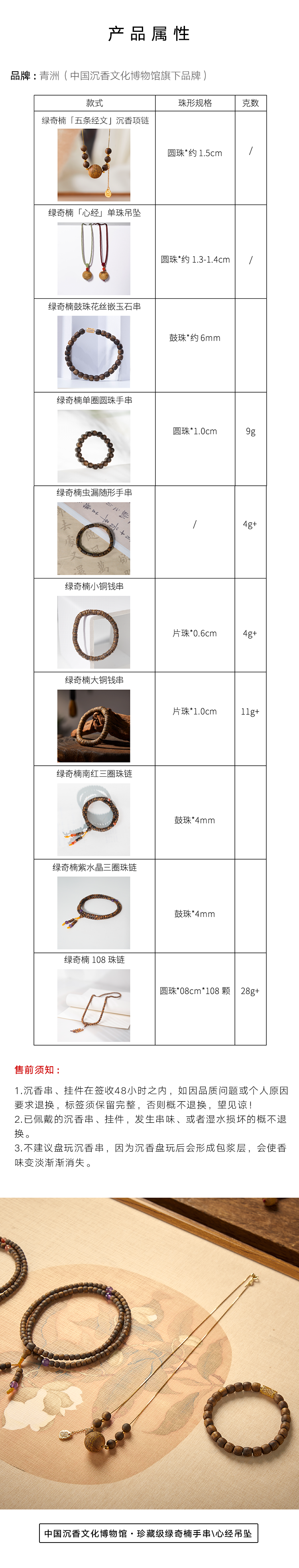 2025年新岁来临在即,掌柜联合中国沉香文化博物馆旗下品牌——“青洲”,为大家定制了一系列守新岁绿奇楠沉香串和吊坠。