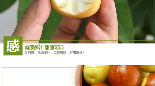 【产品介绍】大荔冬枣,甘甜清脆,古语云:日食三枣,容颜不老。含有天门冬氨酸、苏氨酸等19种人体必要的氨基酸,大量的维生素C等。冬枣有补血益气强体功效,一家老少都合适吃用。耐运输,冰冻后食用,口感更佳。