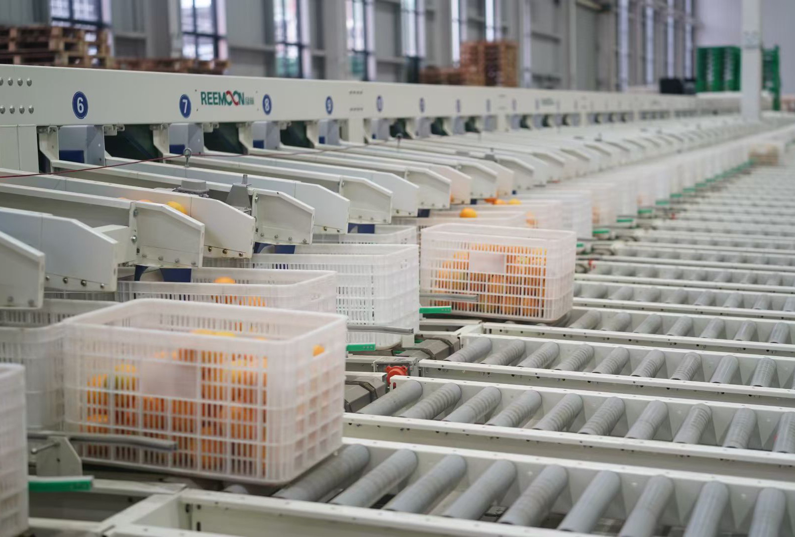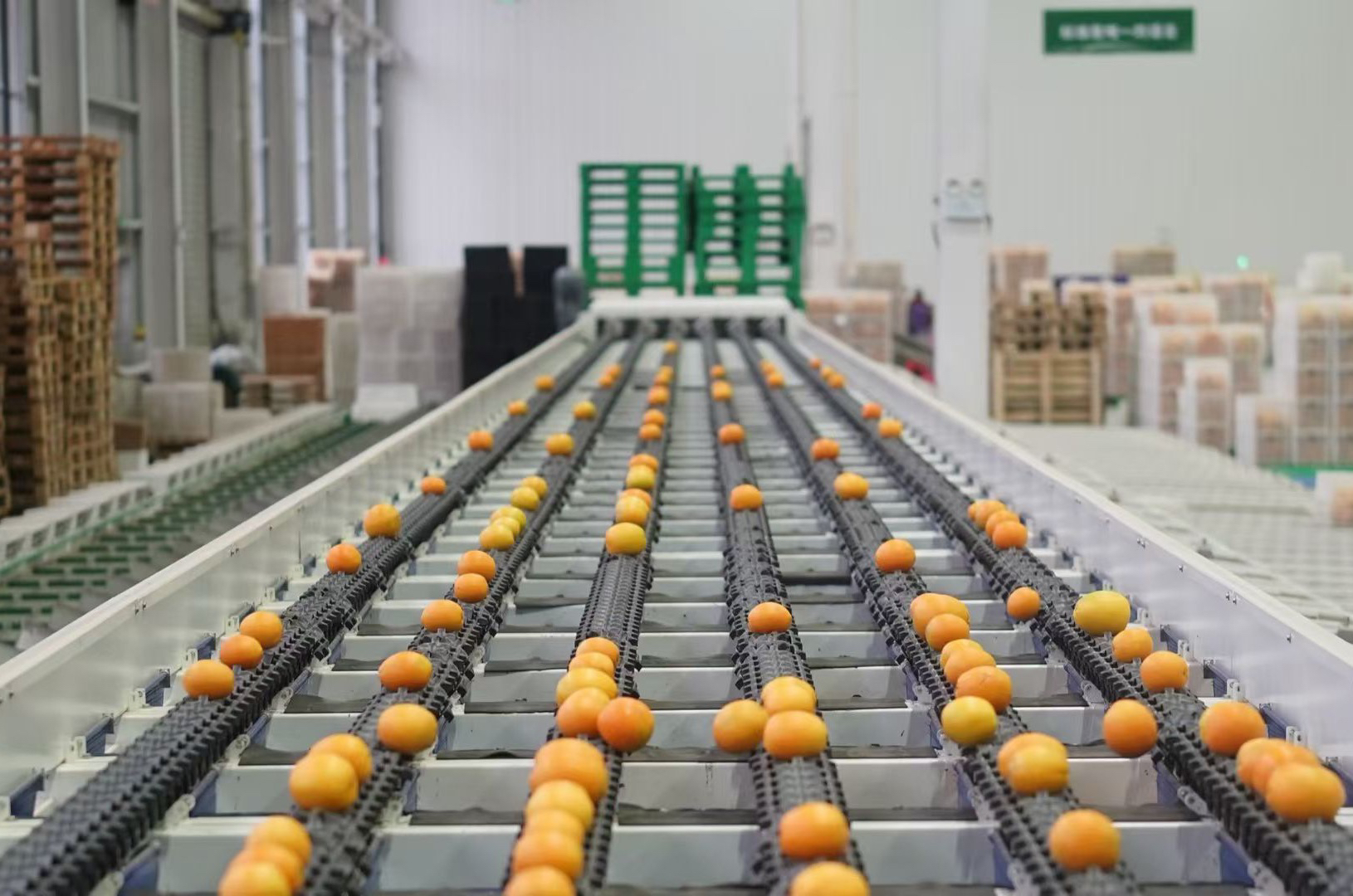 1000多万的设备、100多位工人、1秒钟可以分选11个脐橙、日处理量400吨……
