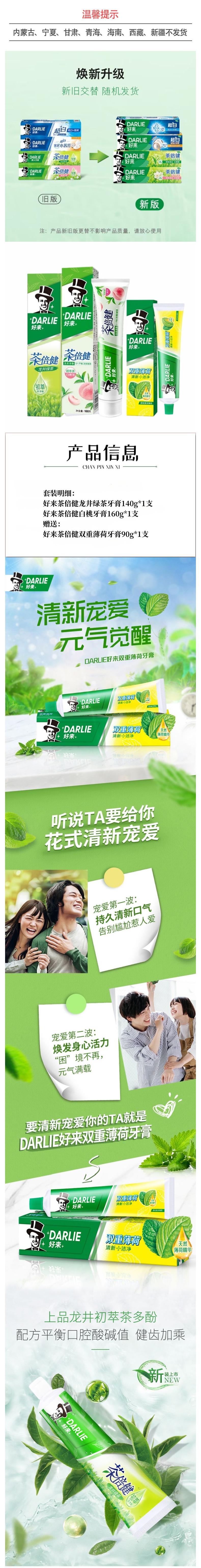 好来 茶倍健牙膏(龙井绿茶140g+白桃160g)+赠薄荷牙膏90g*1支 Hl6615