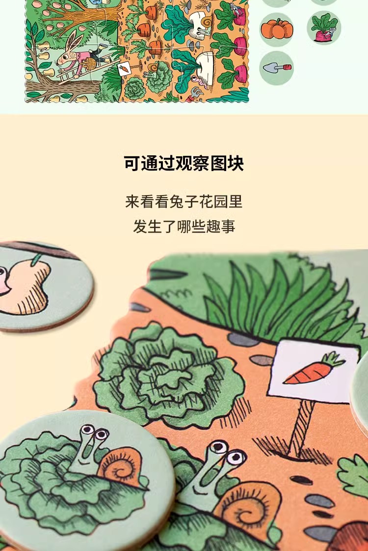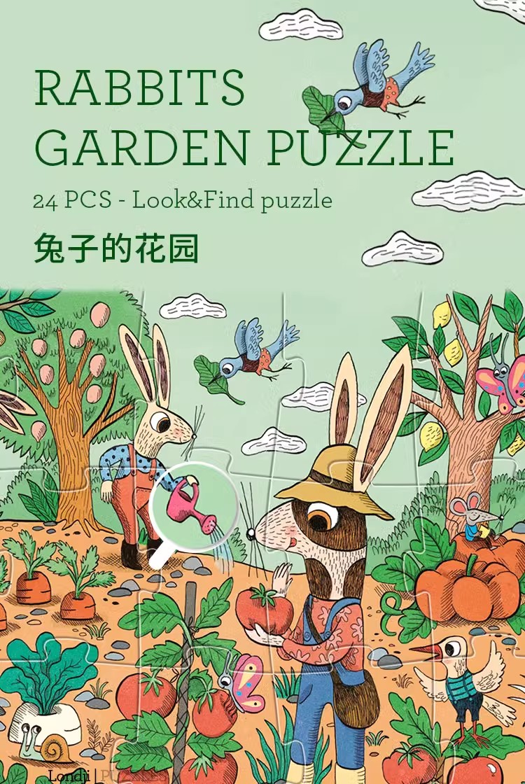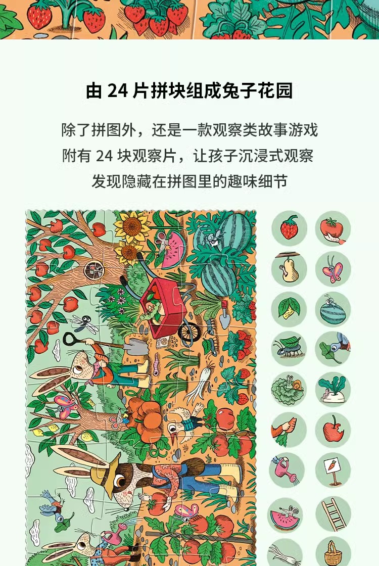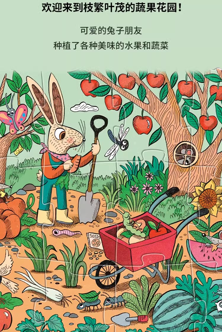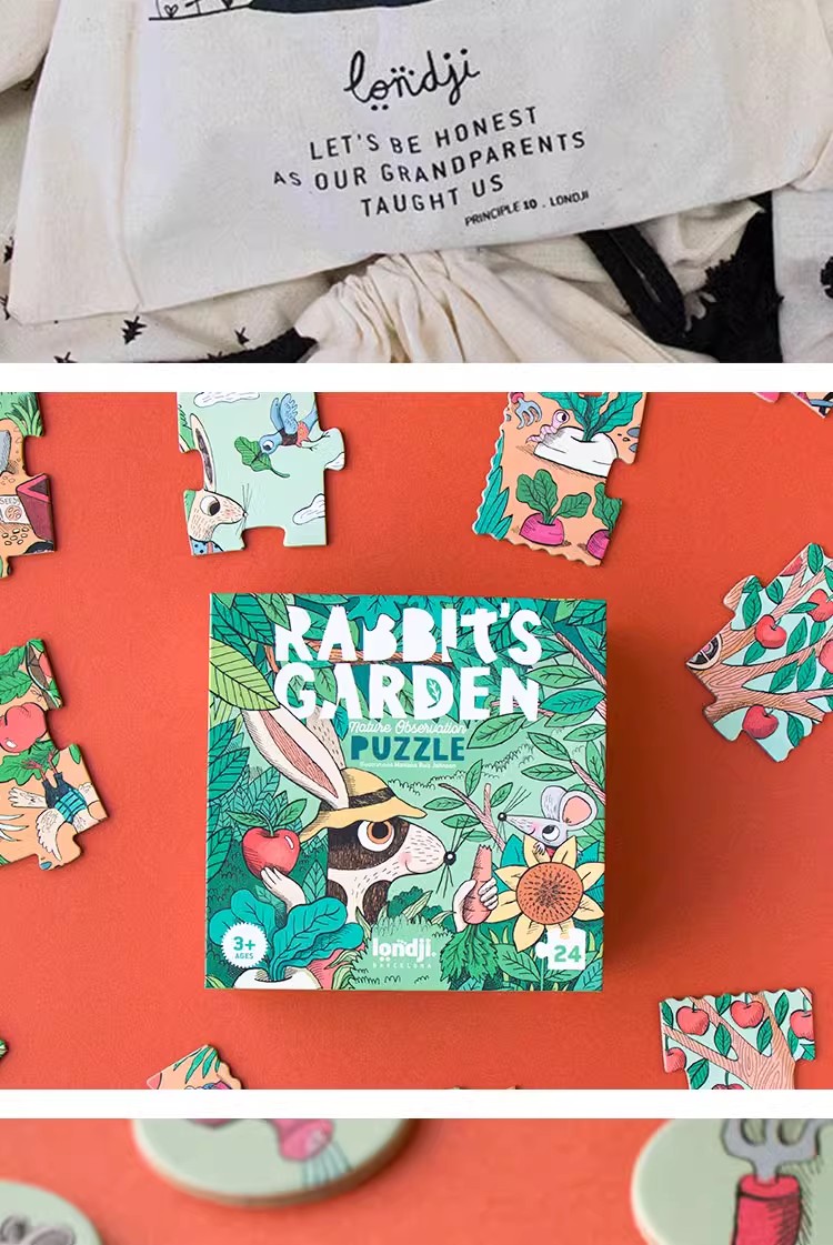 londji进口儿童拼图二阶昆虫水果认知游戏拼图《兔子的花园》故事益智玩具3岁+