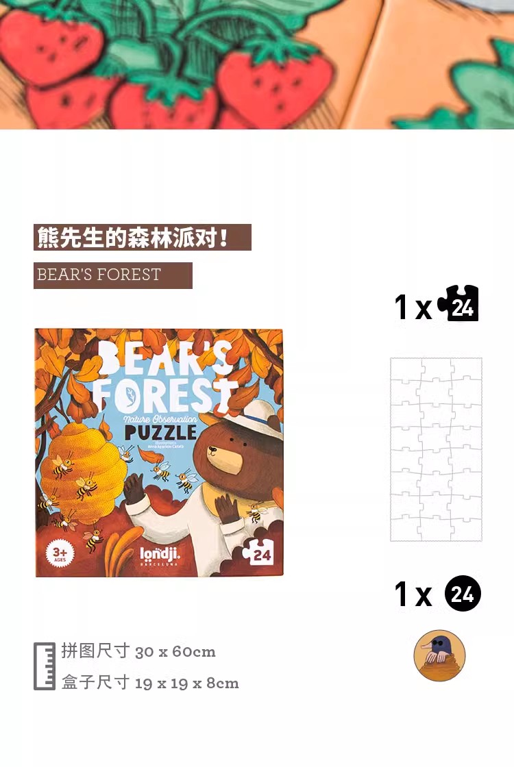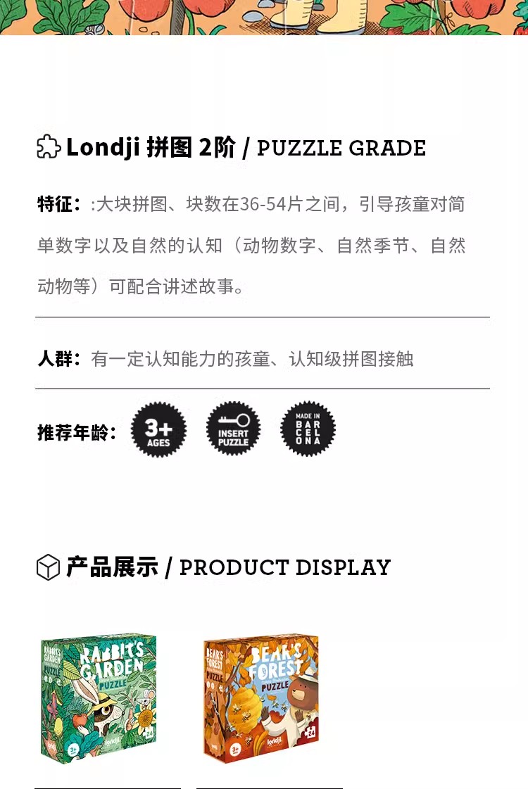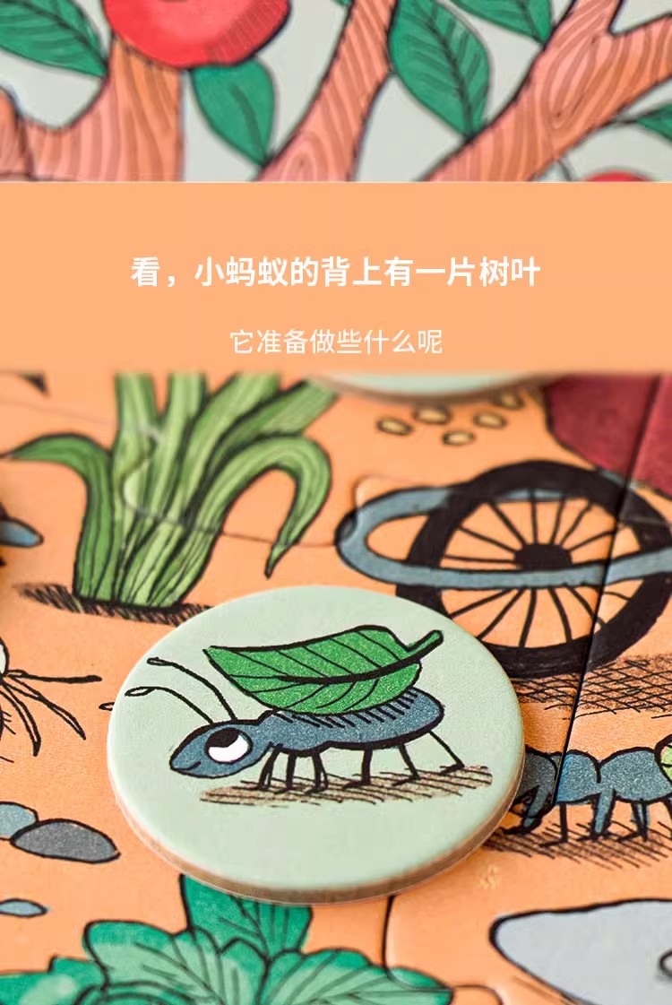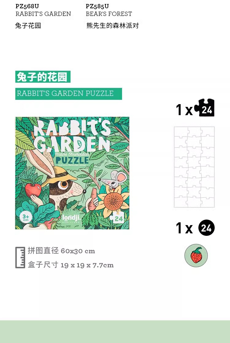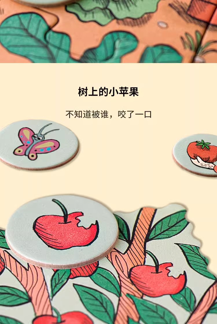 londji进口儿童拼图二阶昆虫水果认知游戏拼图《兔子的花园》故事益智玩具3岁+