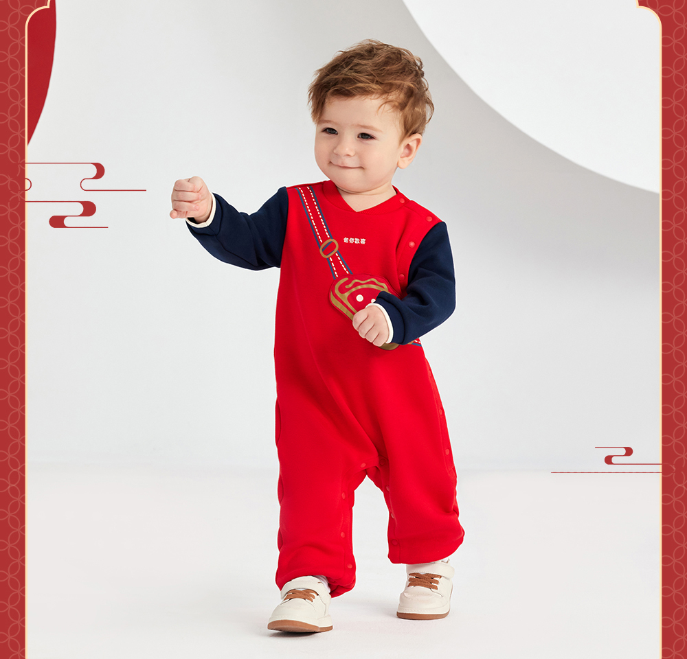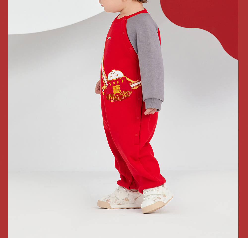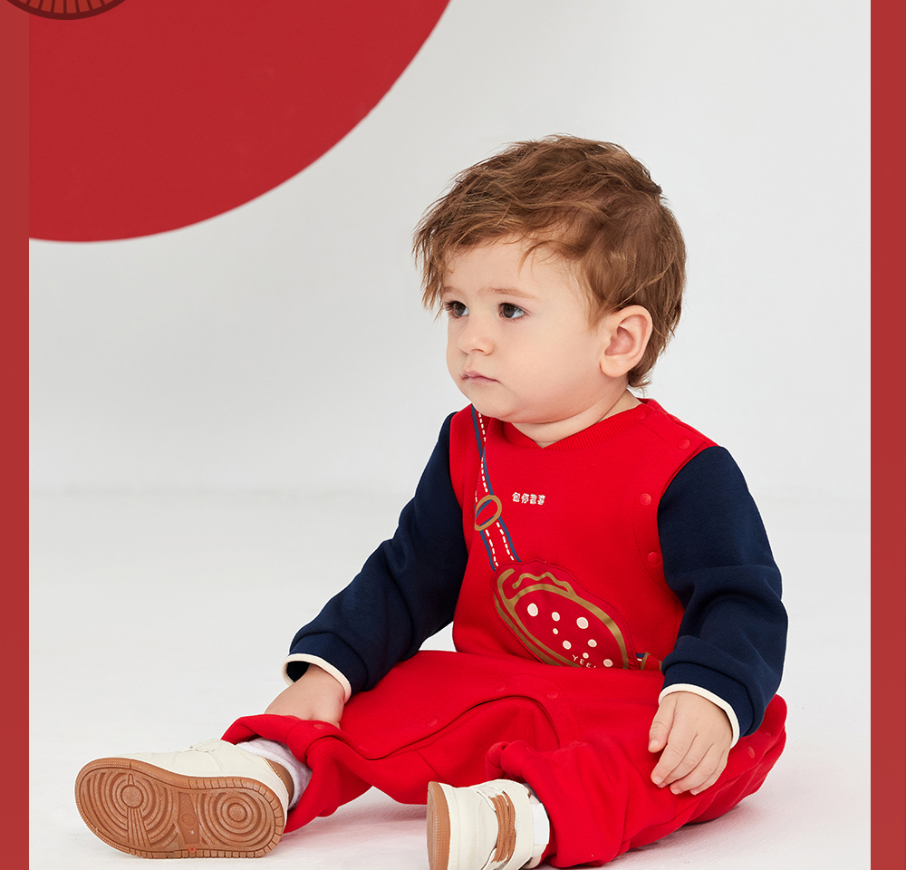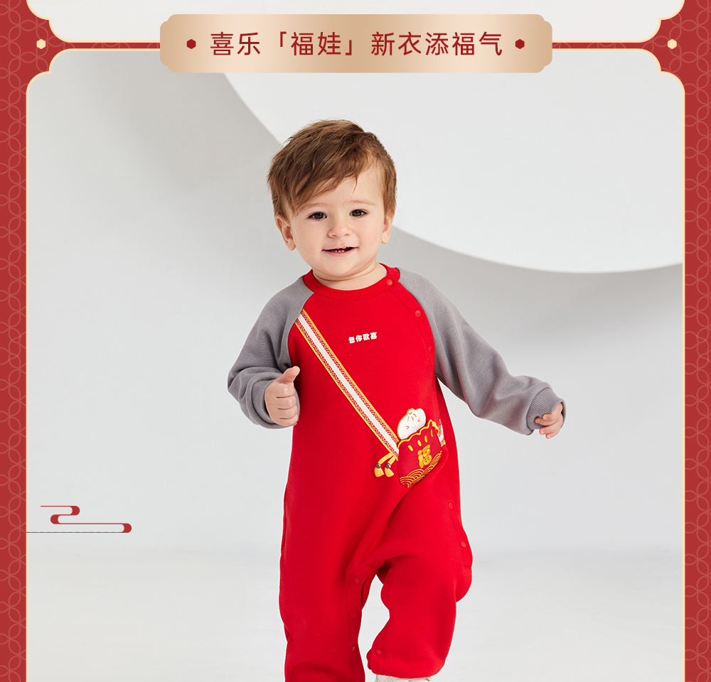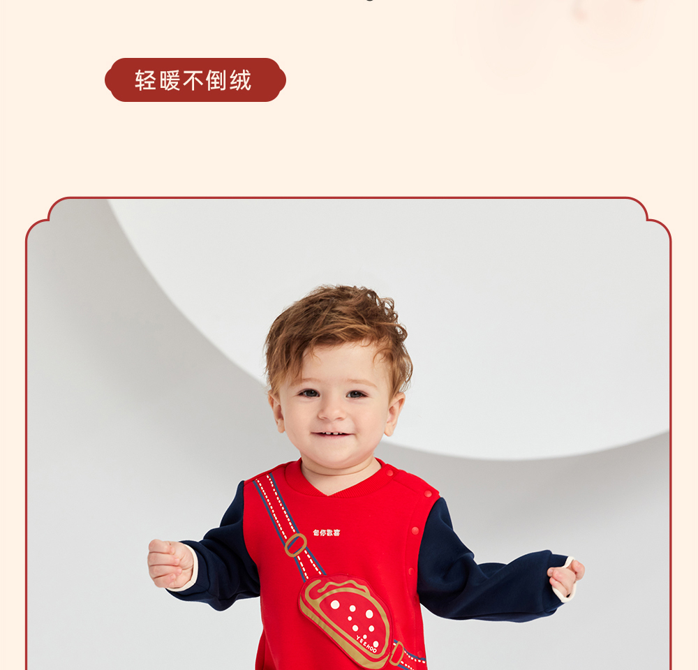 英氏婴儿衣服男女宝宝秋季暖感加绒连体衣喜庆哈衣