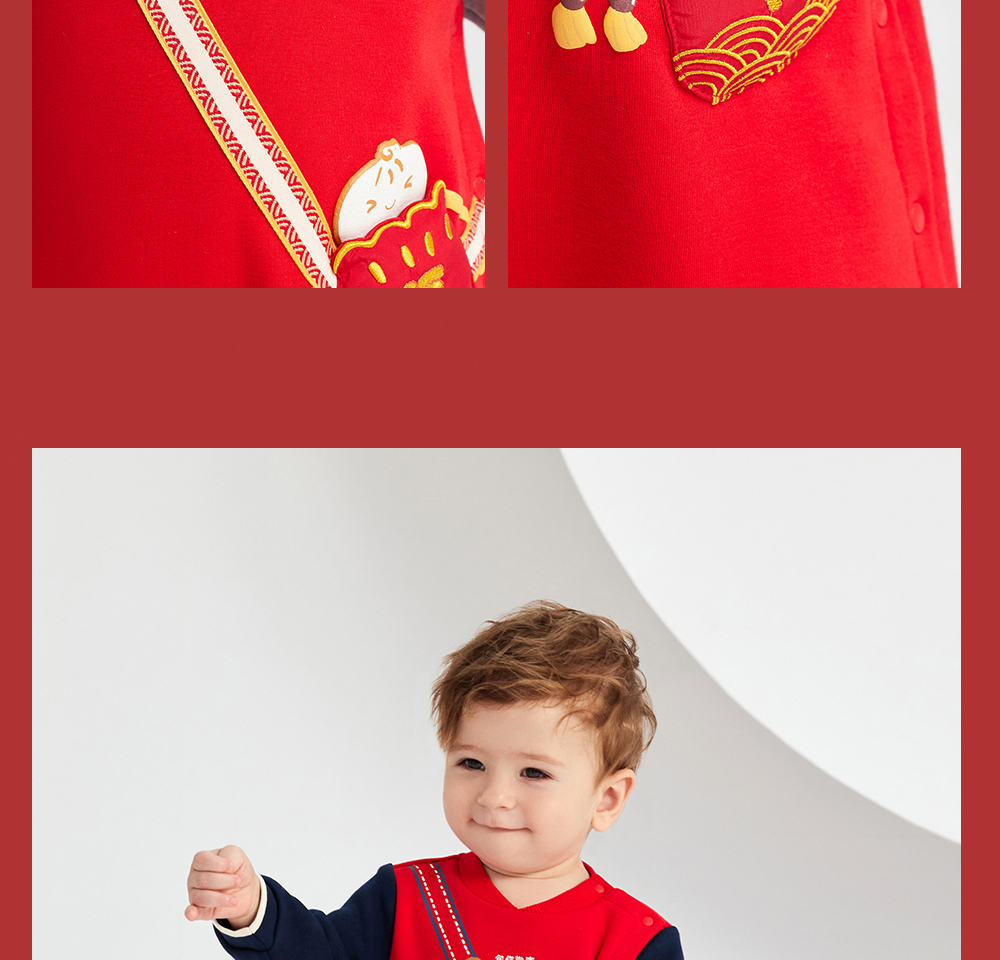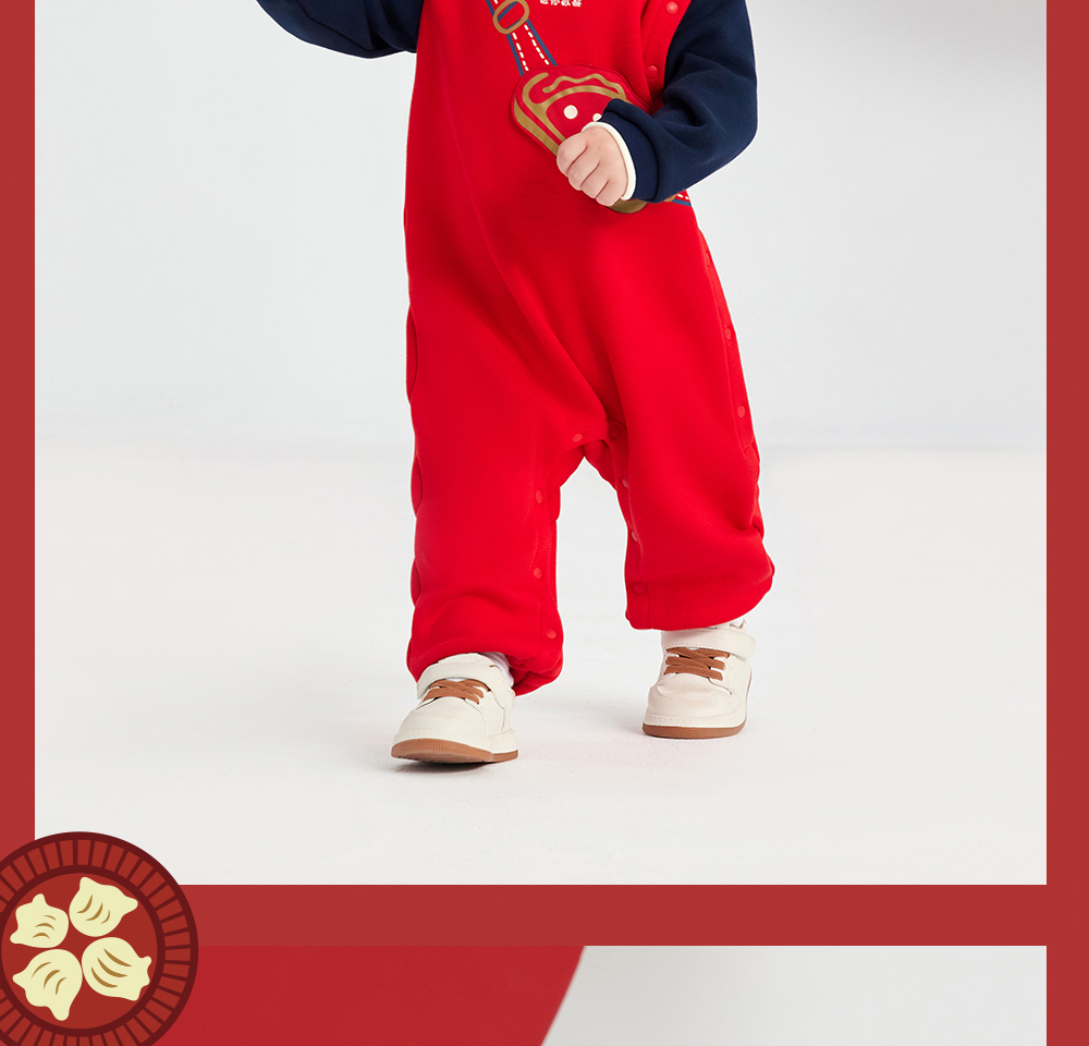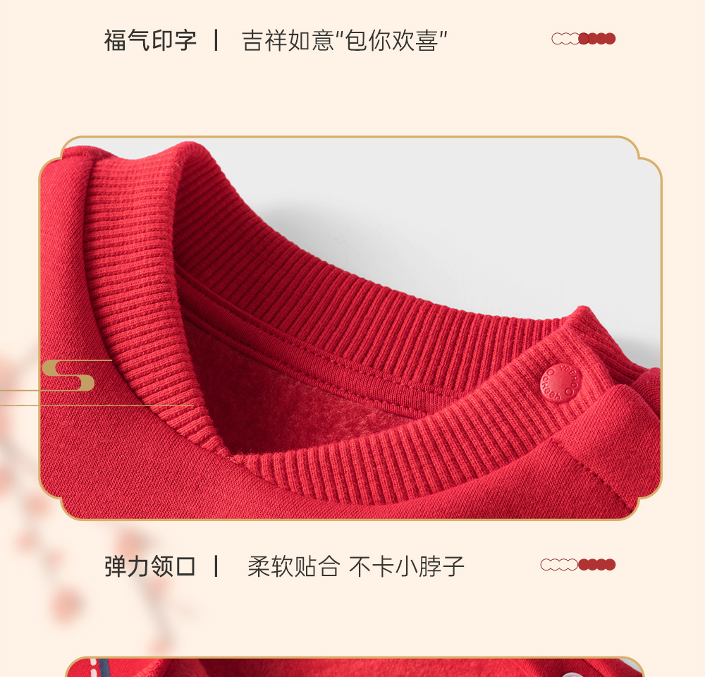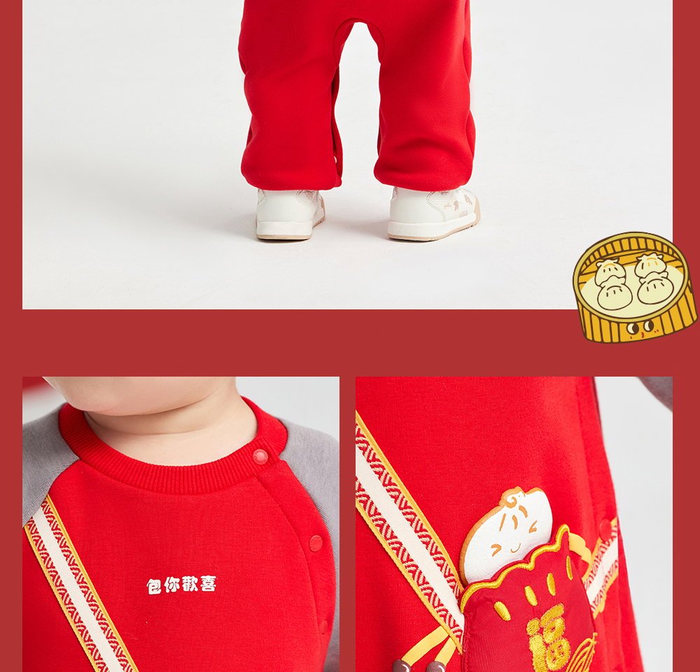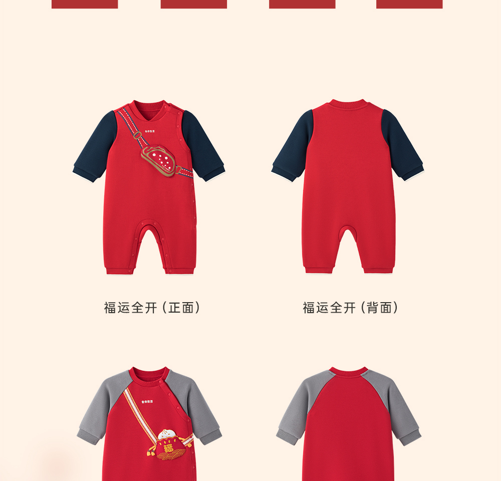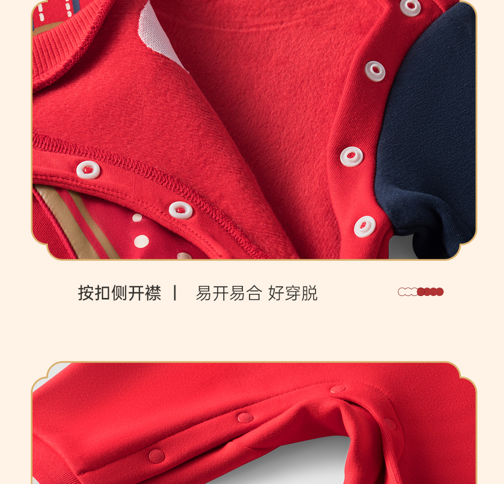 英氏婴儿衣服男女宝宝秋季暖感加绒连体衣喜庆哈衣