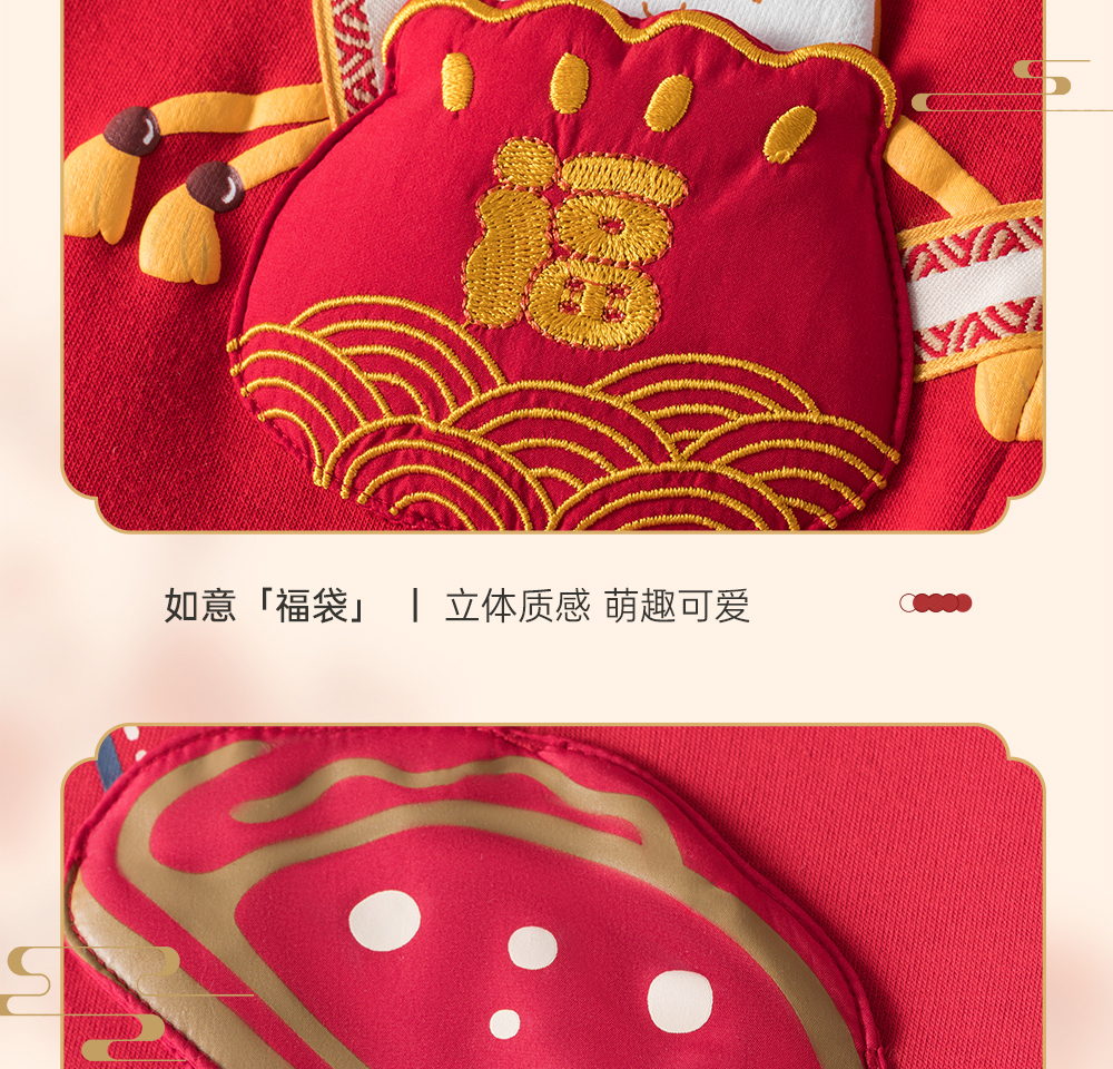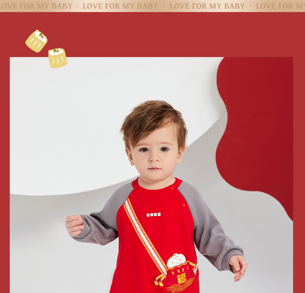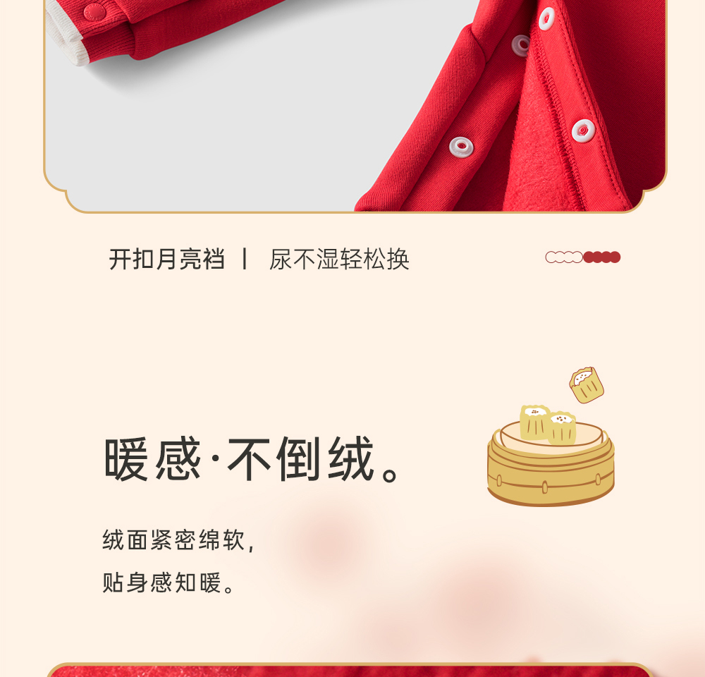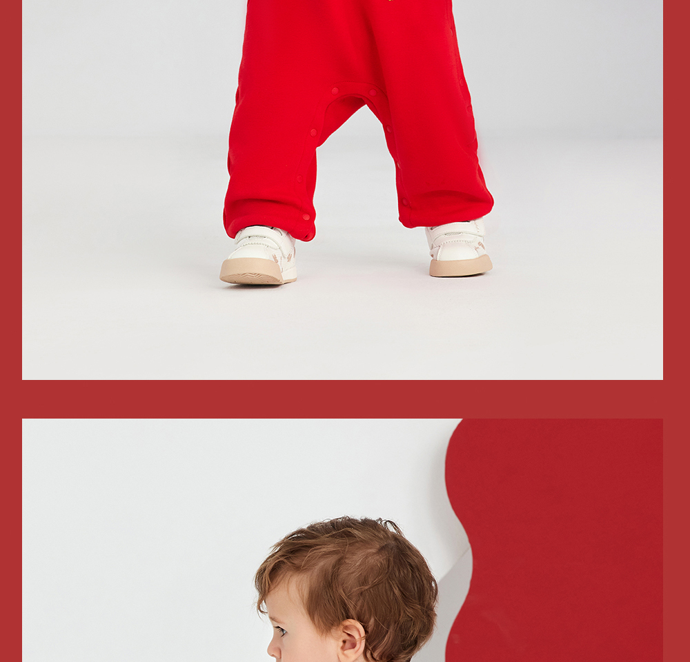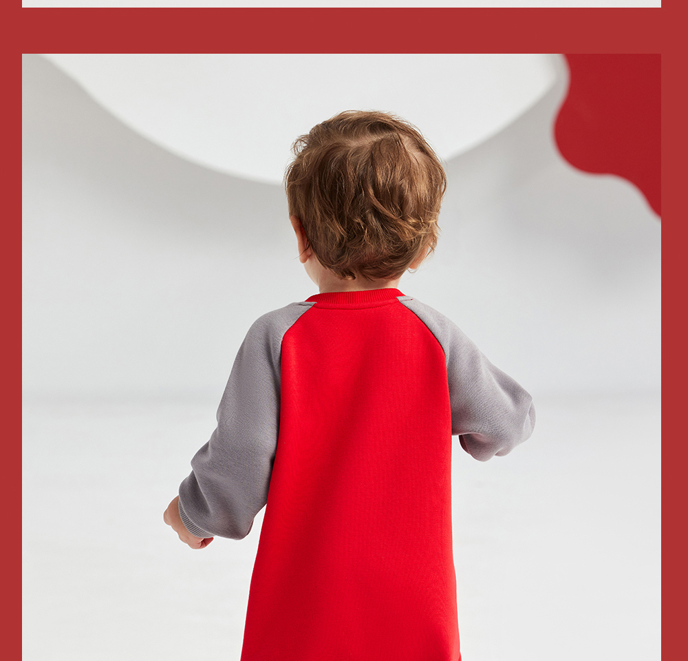 英氏婴儿衣服男女宝宝秋季暖感加绒连体衣喜庆哈衣